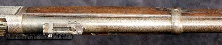 Description: .44wcf, #774529, 20 inch barrel, blue finish, hardwood stock and forearm, original sights, 1915. Condition: very good bore, silver gray patina finish overall, very good wood with copious use dings, very good mechanically, good marks.$1500.00 SOLD Curio/Relic: Yes |