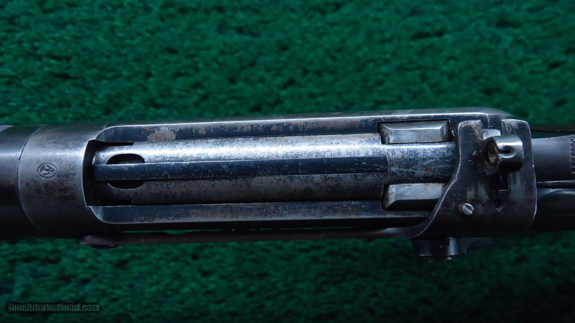 Description: Caliber 38-40. 24 inch round barrel and a rare takedown half length magazine tube. Excellent bore. Original Lyman front sight, 2-leaf flip up rear sight and Lyman 21 series receiver sight. Wood in very good plus condition with most original varnish and a rifle style buttplate. Barrel retains 90% original blue. Receiver has about 80-85% blue with the takedown ring mostly turned plum/brown color. Great sights and great configuration! Leroy Merz Antique Firearms specializes in antique and vintage Winchesters and other fine American firearms. Since 1965 Mr. Merz has taken part in the world of firearms and has been a contributor to many well known reference books. Just recently we mailed the 128th edition of our privately-published catalog. We have hundreds of additional guns in every price range at our home online. Search for Merz Antiques in google. SOLD Curio/Relic: Yes |