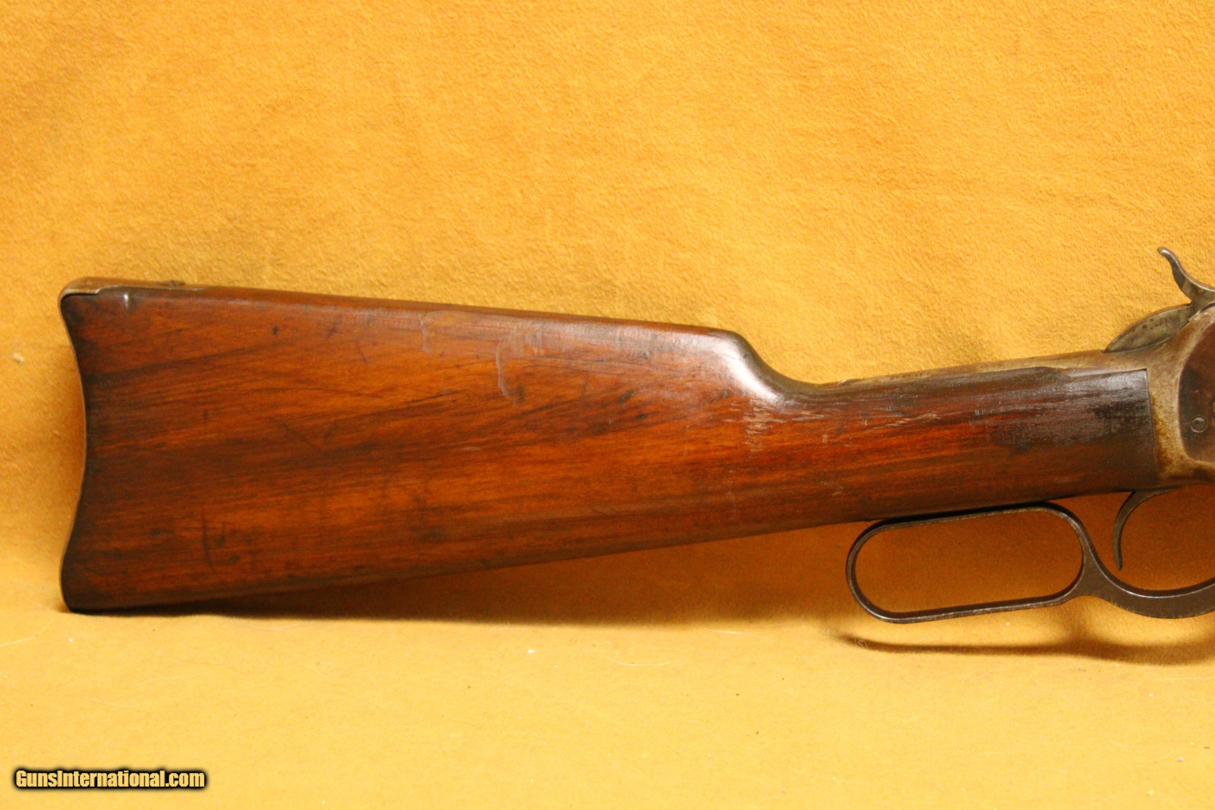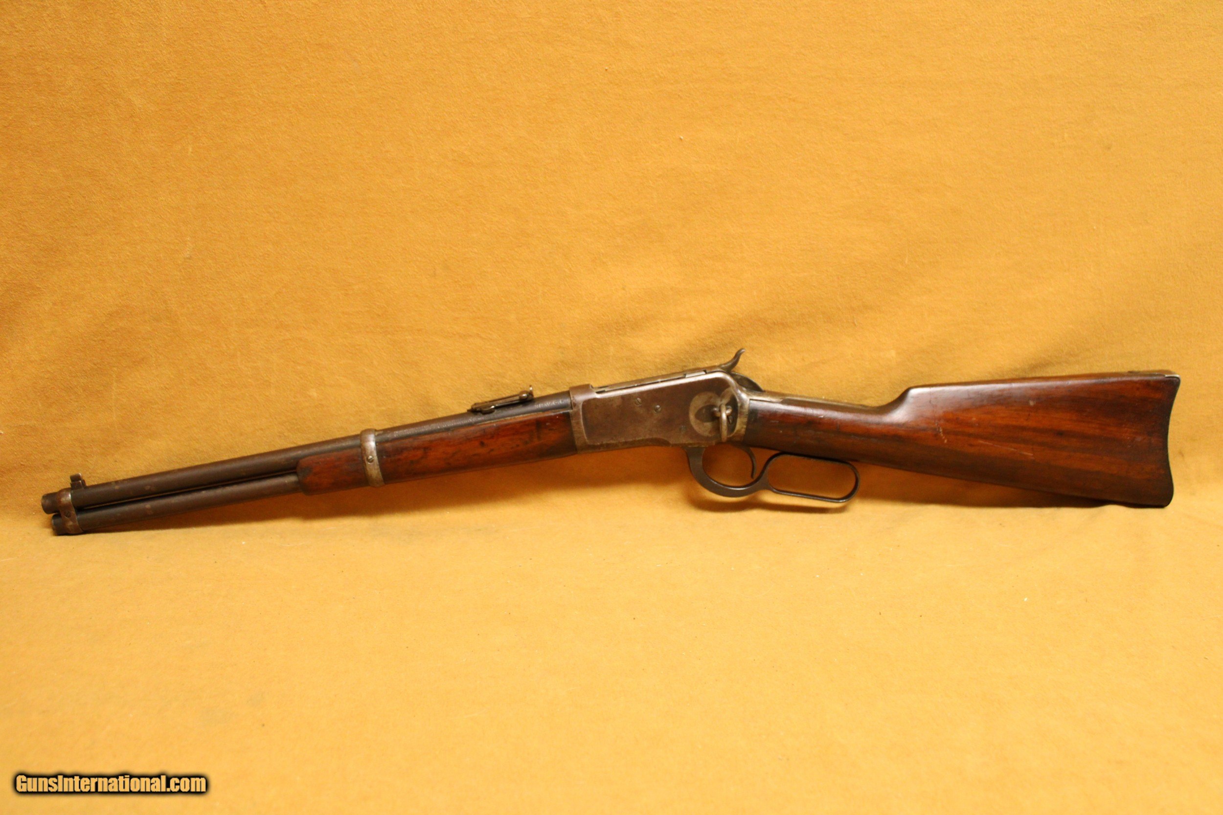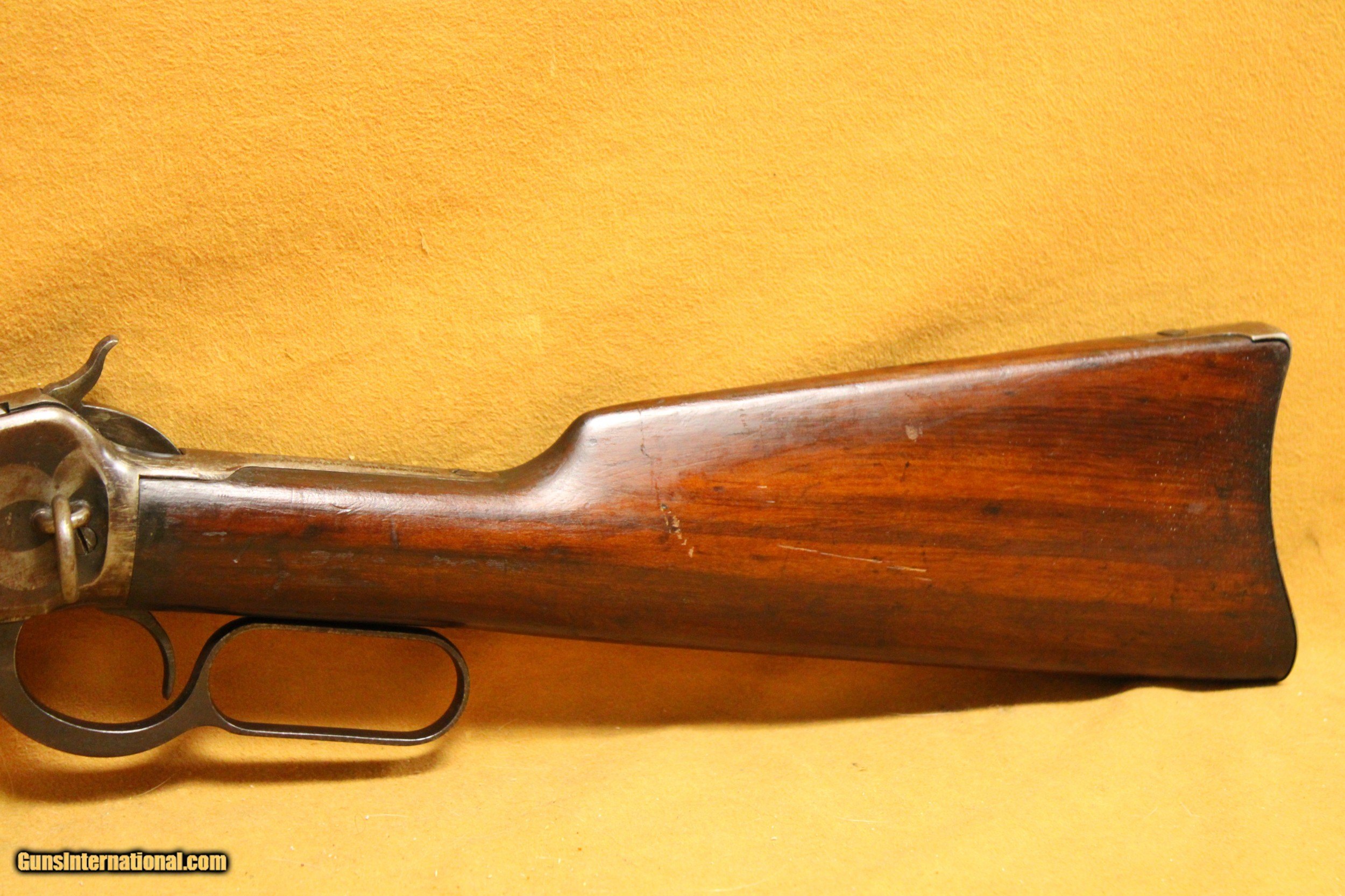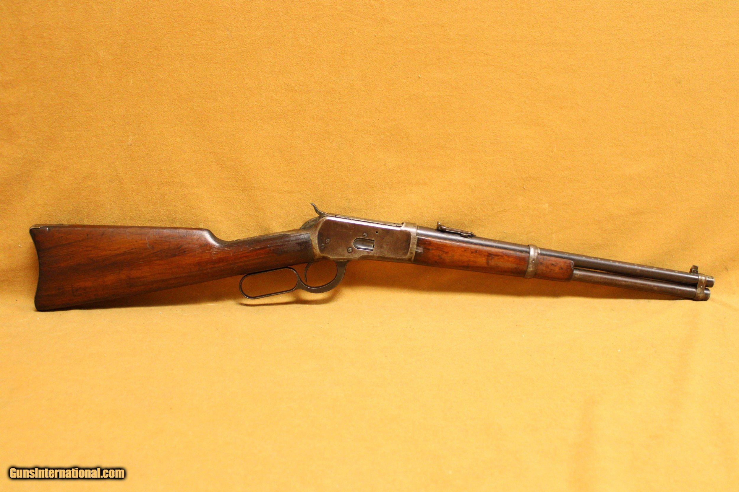 Description: This is a nice, vintage Winchester Model 1892 Saddle Ring Carbine Trapper. It has its rare, original 16-inch barrel in .38-40 WCF. The rifle was made in 1917 and has its original blued metal finish and wood stock and forend. There are various dents and bruises, but the gun is in very ncie shape considering it's over 100 years old. The forend is the correct 8-inch forend. The receiver has a nice ring shadow. Plenmty of blue-brown patina and a good amount of the original bluing. All items are also available for sale in our brick & mortar store and are subject to prior sale. Think long, think wrong. Payment On firearms, we typically only accept credit cards or money orders/cashier's checks.