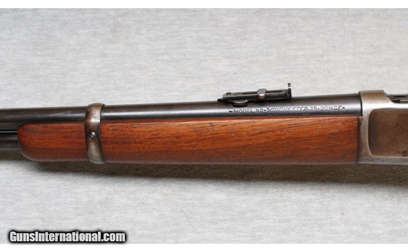 Description: Good condition metal, some finish wear, nicks and scratches. Very good condition wood. Classic Winchester lever action rifle, .25-20 Win. caliber, 20" round barrel with full length mag tube, blued finish metal, and adjustable iron sights. Smooth wood stock & forend with metal band and curved metal butt plate. .25-20 WCF SOLD Curio/Relic: Yes Chambers: Lever action Metal Condition: Good Wood Condition: Very good Barrels: 20 Triggers: Factory Stock Dimensions: 13" LOP Fore End: Smooth Butt Pad: Curved metal butt plate Sights: "Adjustable rear, white bead front sights Item Location: La Vista, NE |