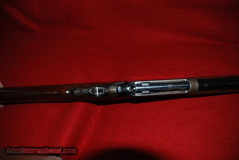 Description: We have here a Winchester Model 92 in .25/20. NRA Good condition, with 24 inch round barrel, tang sight. Bright bore. No rust. Normal wear marks on metal and wood. Small piece missing from left side of stock at point of wrist meeting receiver and small hammer mark on right side of forearm where rear sight is. Rifle style butt. Mechanically fine. This is a good shooter...I tested it myself and it is accurate. SN 936961. Made in 1923. No letter. Call for more information. SOLD |