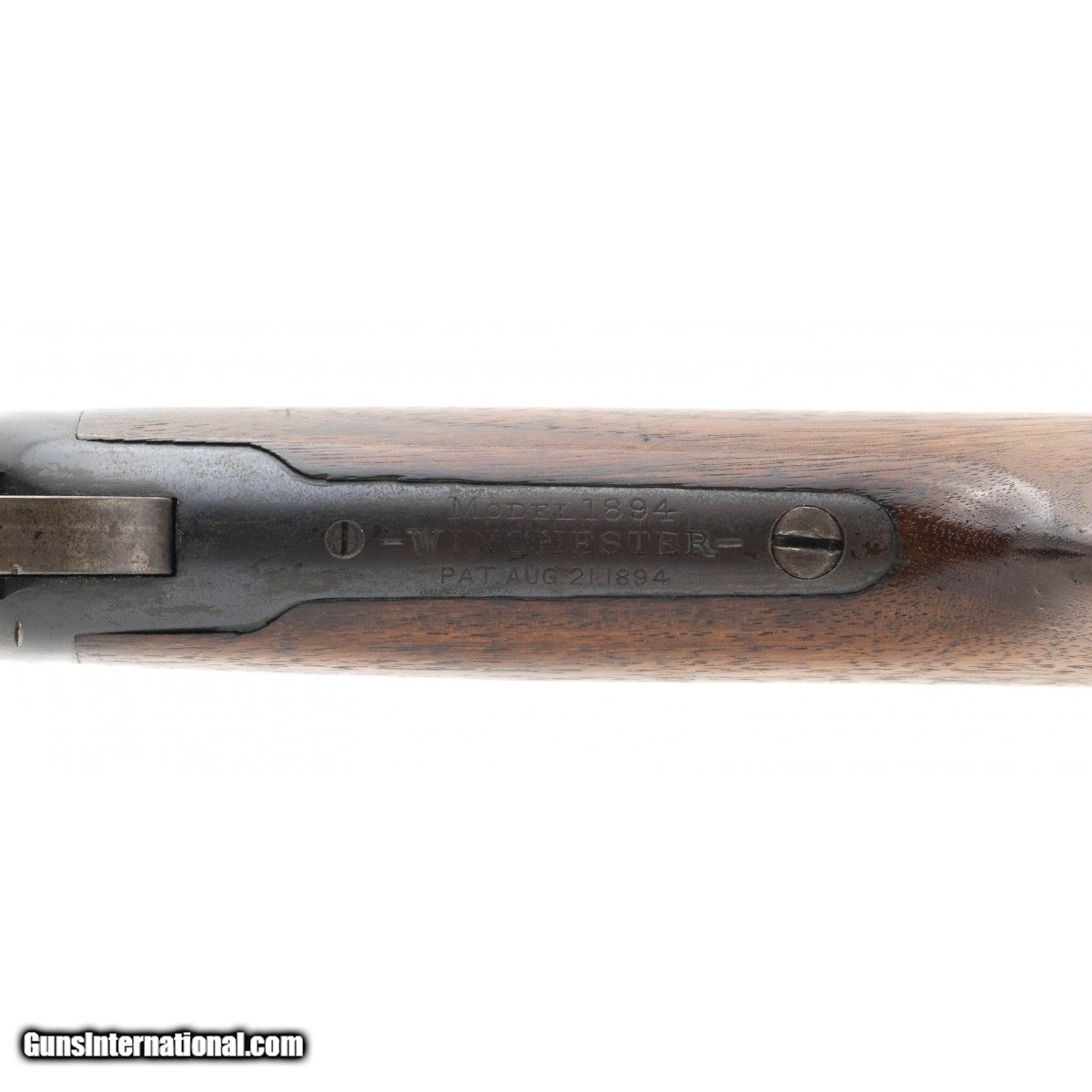 Description: " This very nice 38-55 caliber Model 1894 SRC is circa 1901. The 20"" round barrel has an excellent bore with bright, strong rifling. It is equipped with the standard carbine sights. The gun has approx. 90% blue overall with areas turning brown. The lever and hammer are mostly silver with traces of case colors . The left side of the reciever is hand stamped DOC. over & over CO. with the right side and bottom stamped DOC. We don't know the meaning of this but it may be a mining company or other type of company. The butt stock is fine with most of its original varnish and light wear and with no cracks or chips. The forearm is very good with most of its finish, a few usage dents and dings, and an old stable stress crack on the bottom from the front to the band. The saddle ring is present. The action functions correctly. This much better than average 38-55 Model 1894 SRC is ready for your Winchester or western collection. SOLD Curio/Relic: Yes |