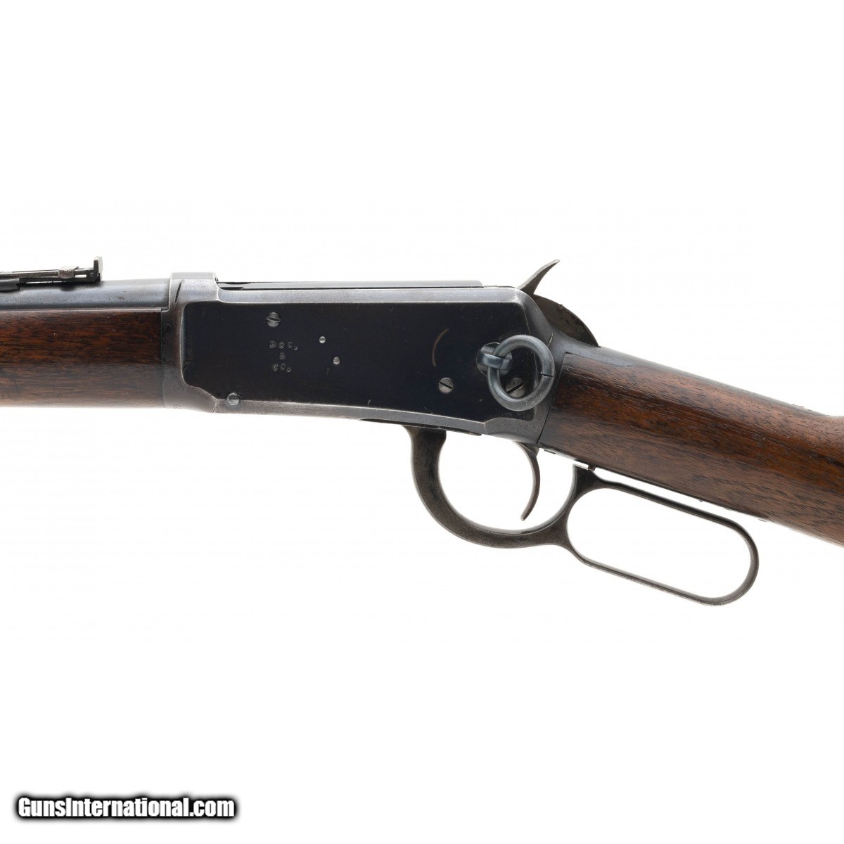This very nice 38-55 caliber Model 1894 SRC is circa 1901. The 20"" round barrel has an excellent bore with bright, strong rifling. It is equipped with the standard carbine sights. The gun has approx. 90% blue overall with areas turning brown. The lever and hammer are mostly silver with traces of case colors . The left side of the reciever is hand stamped DOC. over & over CO. with the right side and bottom stamped DOC. We don't know the meaning of this but it may be a mining company or other type of company. The butt stock is fine with most of its original varnish and light wear and with no cracks or chips. The forearm is very good with most of its finish, a few usage dents and dings, and an old stable stress crack on the bottom from the front to the band. The saddle ring is present. The action functions correctly. This much better than average 38-55 Model 1894 SRC is ready for your Winchester or western collection.