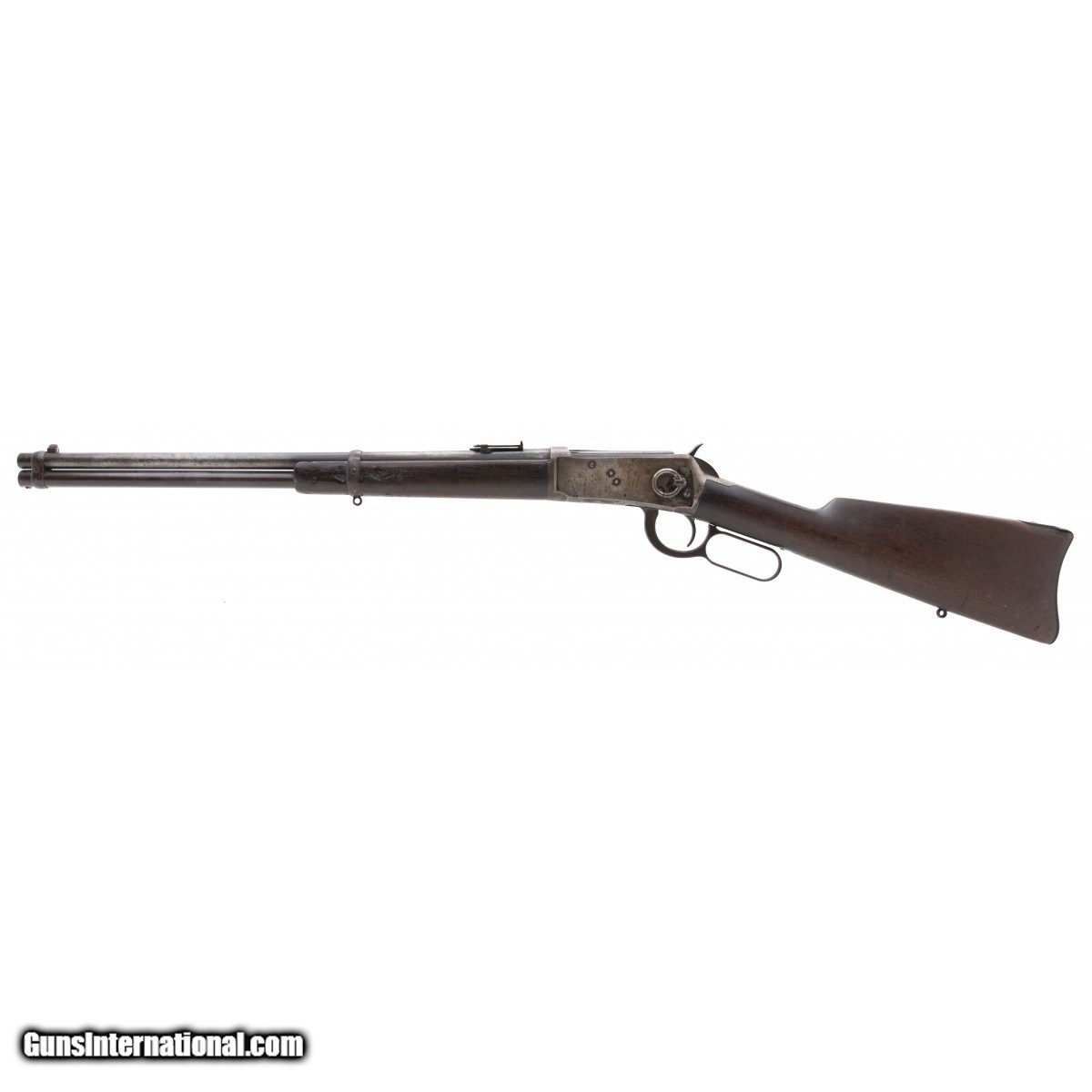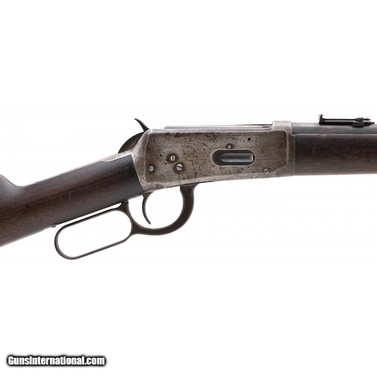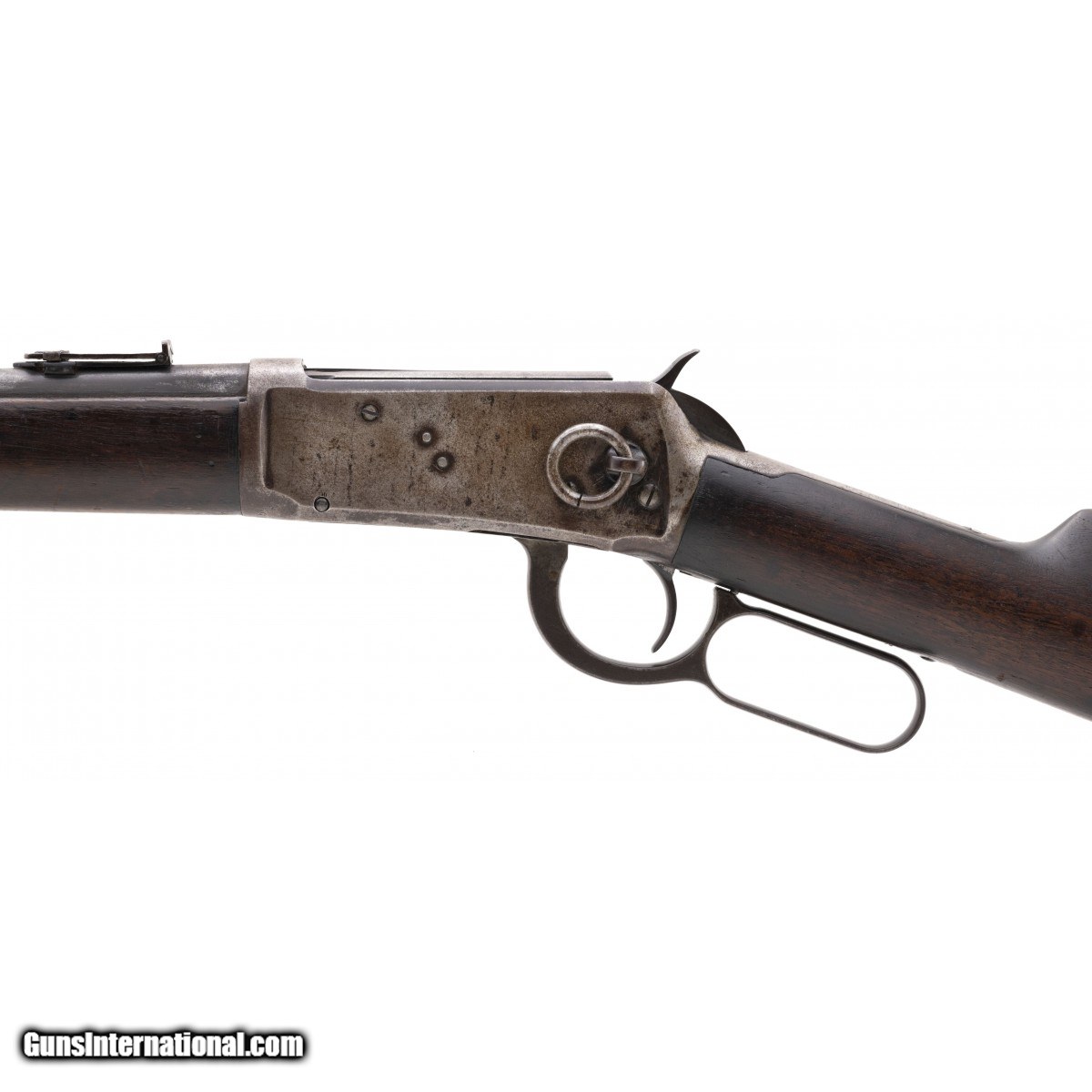 Description: " SN:38415. Scarce and desirable .25-35 caliber saddle ring carbine manufactured in 1895. Metal has a grey and brown patina. Bore has strong rifling with frosting. Markings are easily visible. Action works perfectly. Good overall condition. SOLD Antique: Yes |