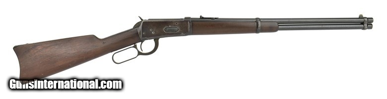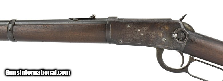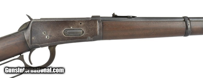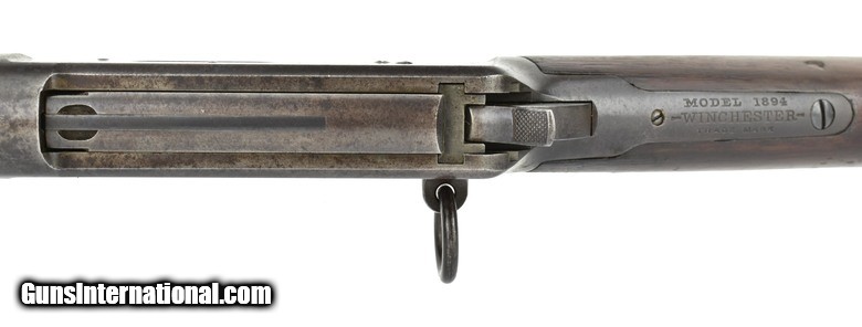Winchester Model 1894 .30 WCF caliber carbine. Made in 1903. .30-30 Caliber with a 20" barrel. Barrel has pinpoint pitting throughout the barrel. Frame is mostly patinaed. Wood is very good. Strong rifling with a dark bore. Very good looking original Saddle Ring Carbine!