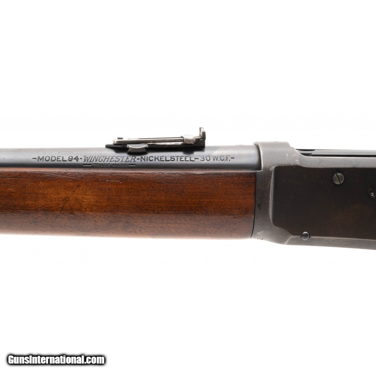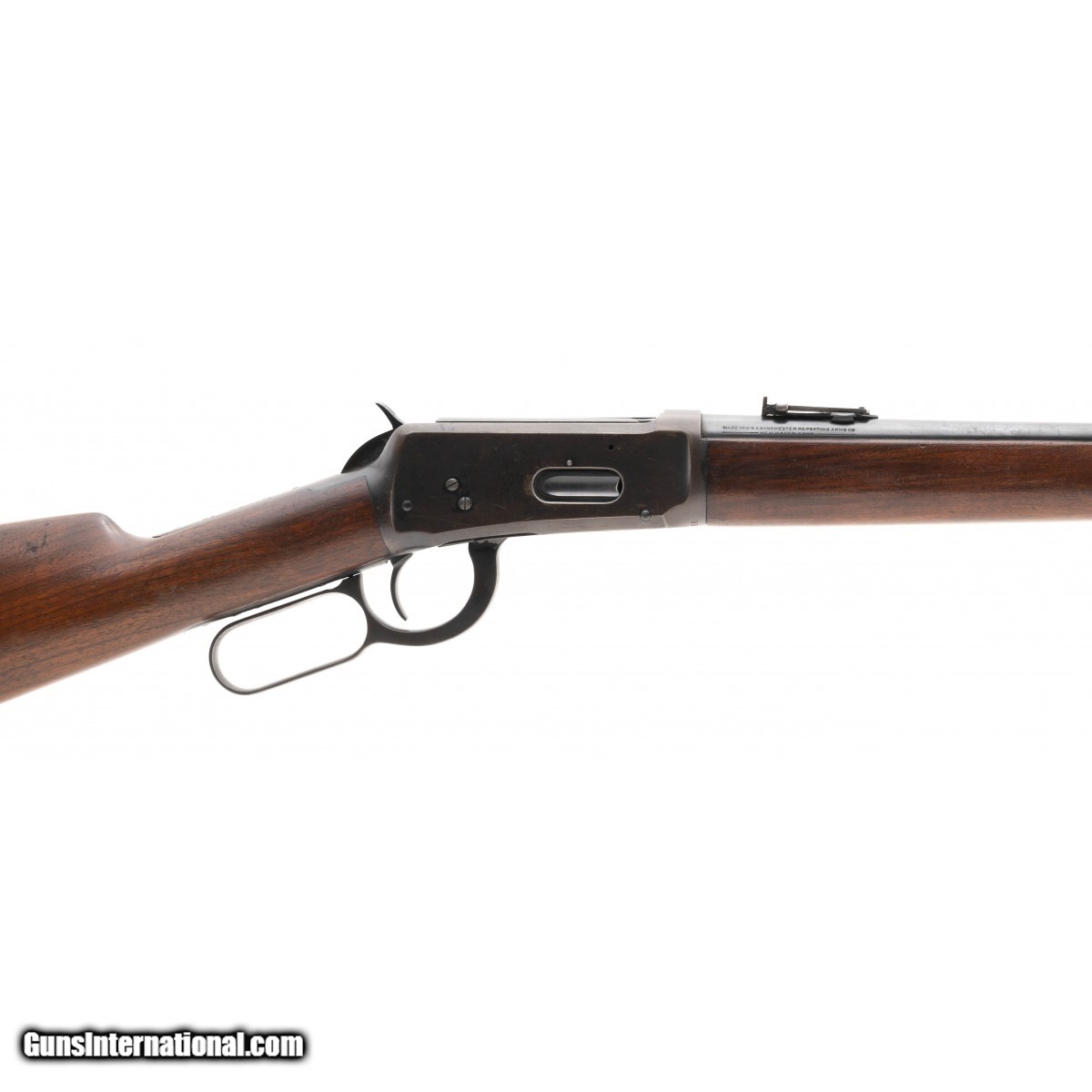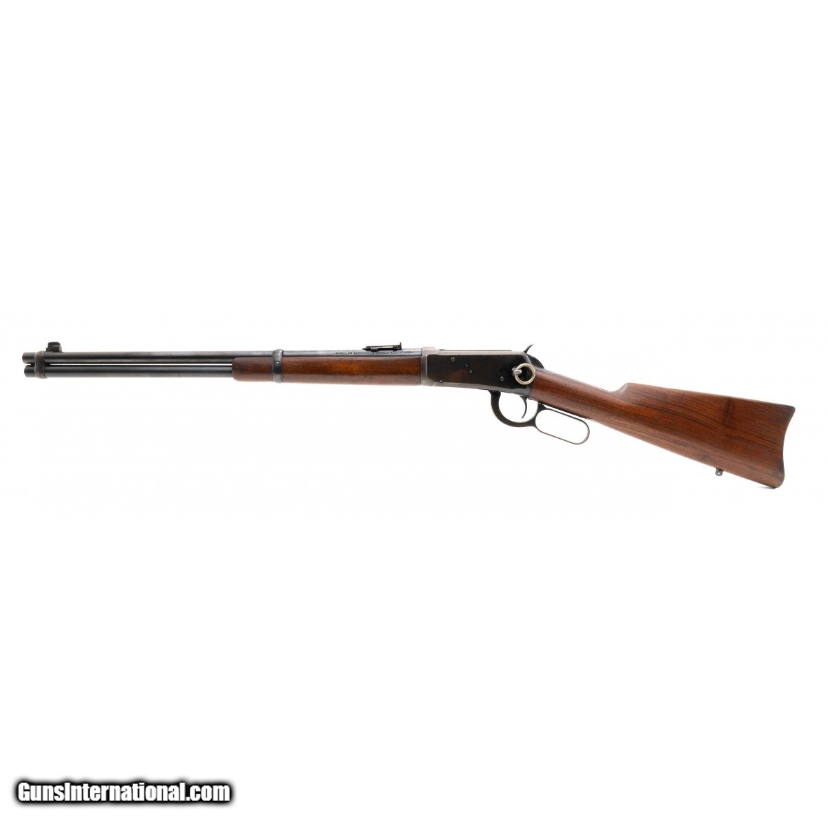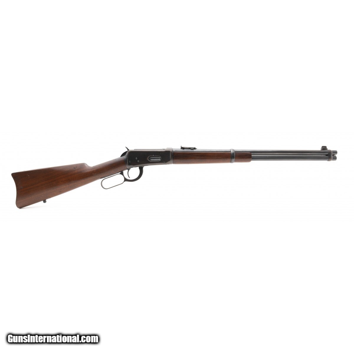 Description: " Popular saddle ring carbine made in 1927. Barrel is 20"". Saddle ring is a later replacement. Front sight is a Marbles. Bore is excellent. Action works properly. Barrel and tube have approximately 95% original blue. Receiver has a thinning blue turning to patina. Wood is very good with some field wear. Very good overall condition. SOLD Curio/Relic: Yes |