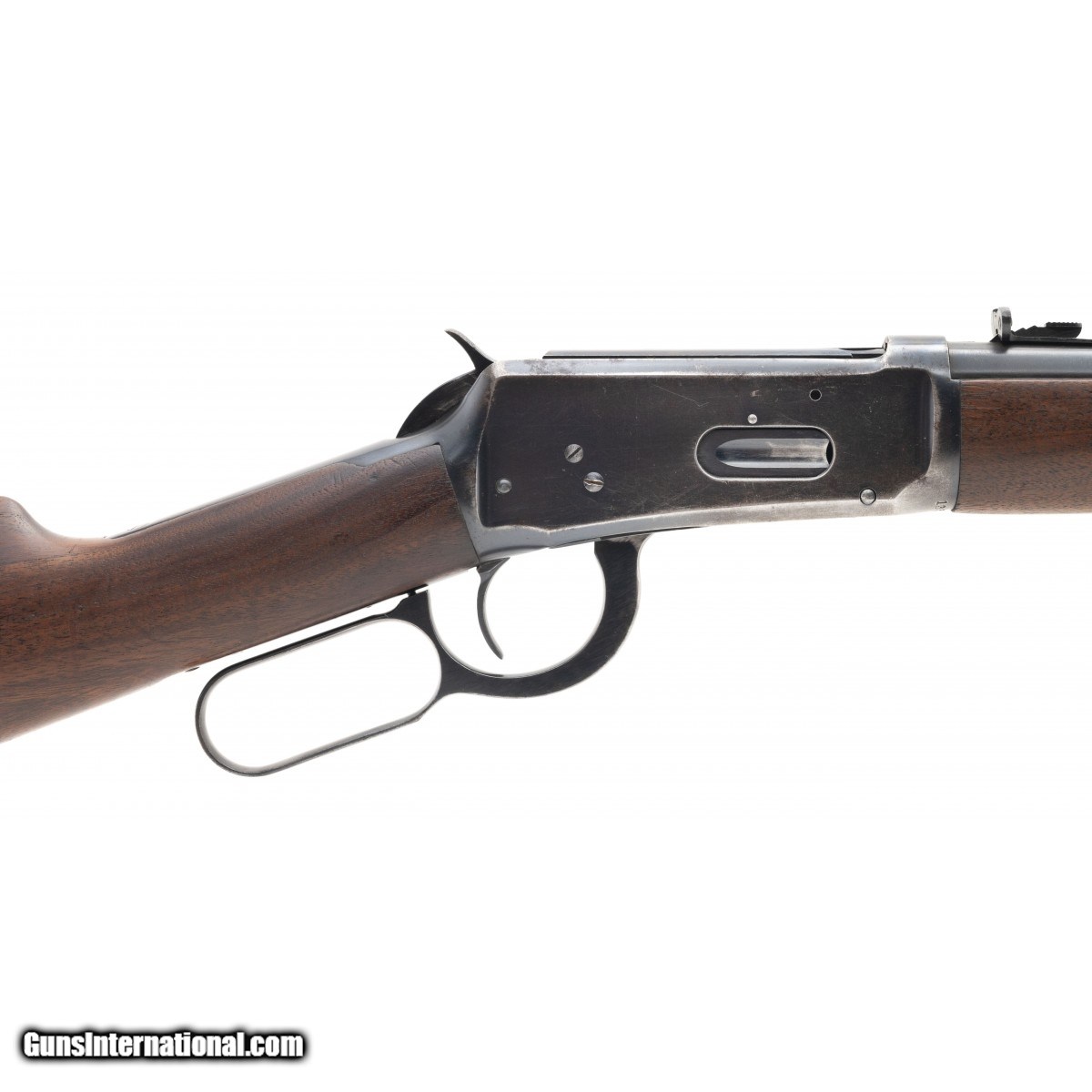 Description: " SN: 1352886. Post-war lever action carbine made in 1948. The bore is excellent. The receiver has some holes drilled for a scope mount. Very good condition. SOLD |