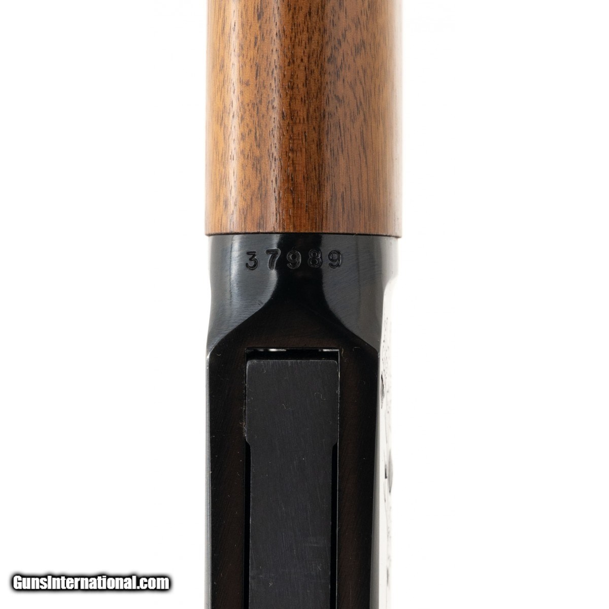 Description: " SN: 37989. Manufactured in 1967. .30-30 Winchester with a 26"" octagonal barrel, bore is excellent. Commemorative lever action rifle for 1867-1967 100 year anniversary, polished blued finish, maple leaf engraved receiver and walnut straight grip stock. Overall excellent condition. Comes with box. SOLD |