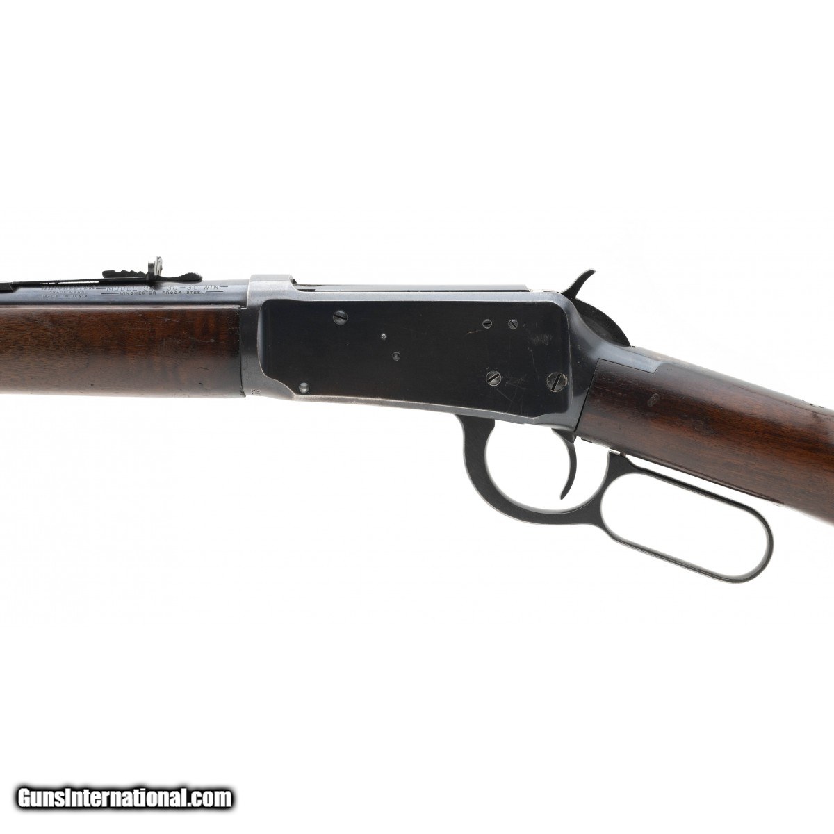 Description: " Pre-64 lever action carbine made in 1955. The metal shows some wear on the receiver, overall has about 90% blue. The stock has marks and wear by the buttplate. Bore and action are excellent. SOLD Curio/Relic: Yes |