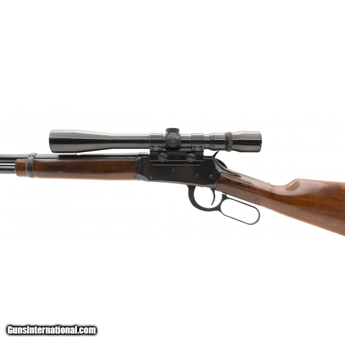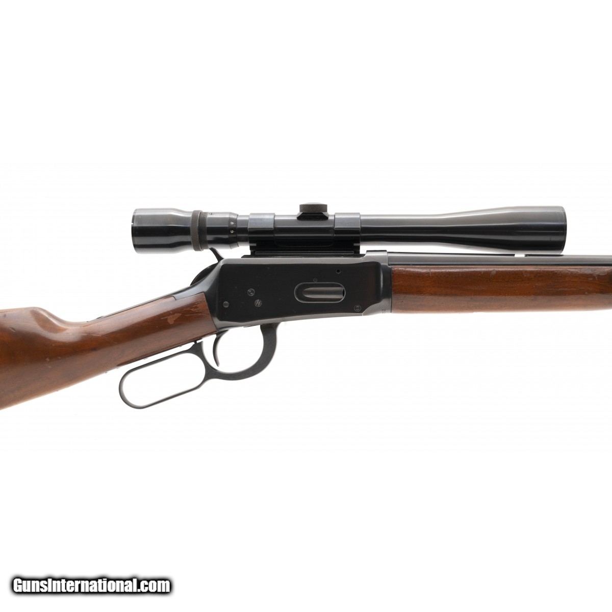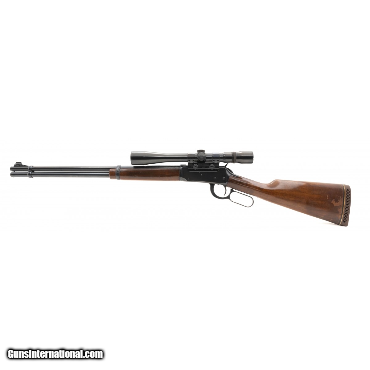Made in 1963. Has a Weaver 3x9 scope on a side mount. The metal is excellent with light wear. The stock shows numerous marks and has a recoil pad added. Very good condition overall.