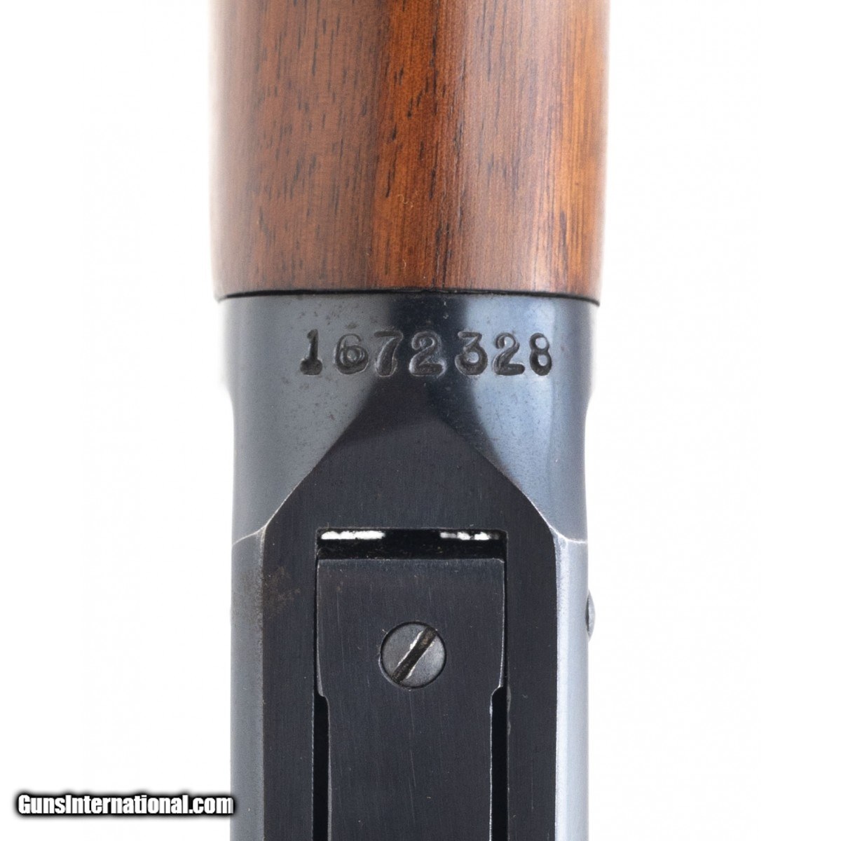 Lever action Winchester with 20"" barrel, made in 1950. The Bore is excellent and the actions work perfectly. The rifle has 90% of its original blue with a few small spots of blue fading towards the center of the barrel and magazine tube. The stock is excellent condition. Overall very good plus condition.