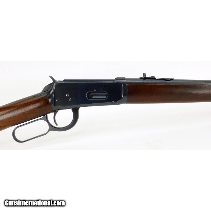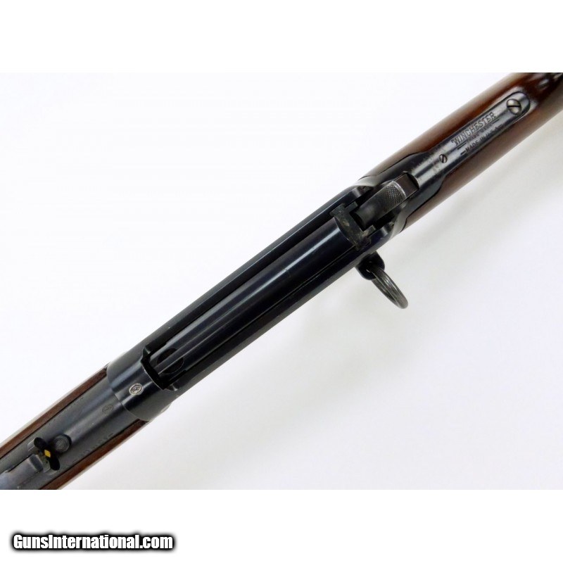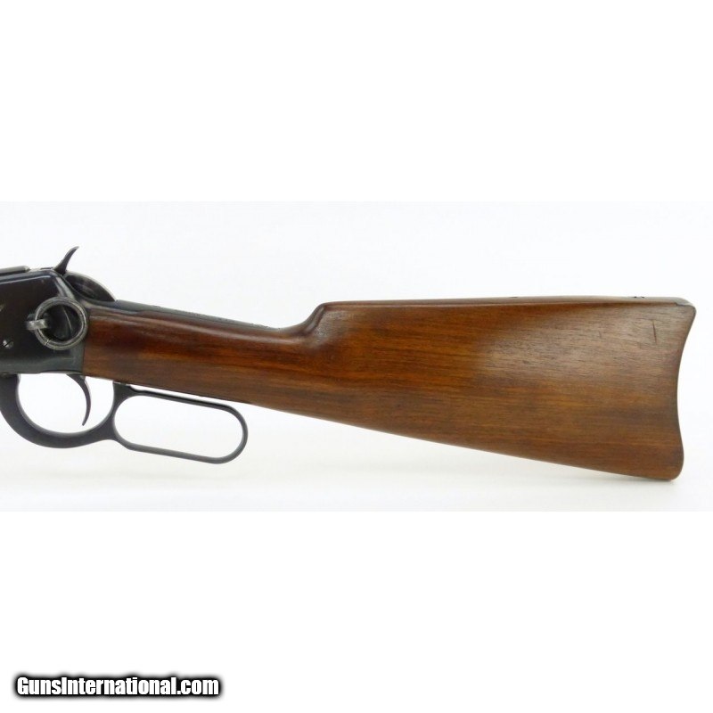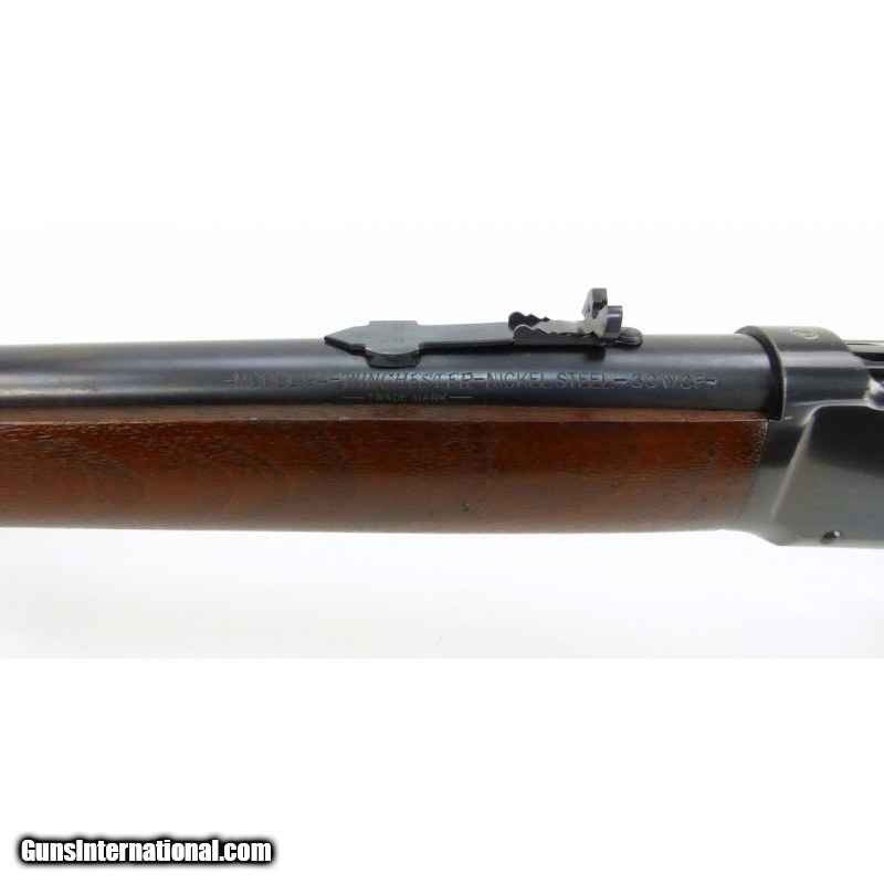 Description: " Winchester 94 .30 WCF caliber carbine. Saddle ring carbine manufactured 1928 with 20" barrel. Bore is excellent with strong rifling. Front sight has been upgraded to a marble front sight. Barrel has about 98% original blue, and the receiver has about 92% with saddle ring wear. Wood is excellent with minor dents and dings. Very good overall condition. SOLD |