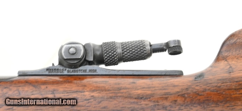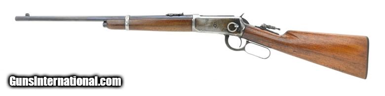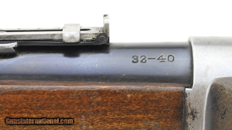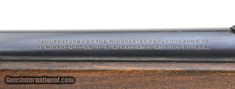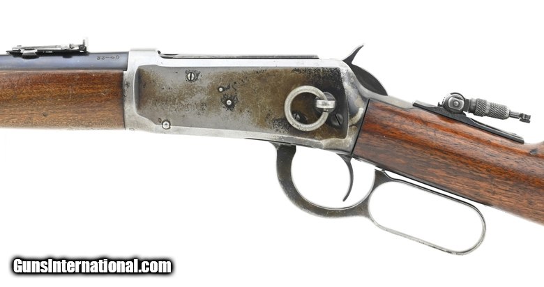 Description: " Winchester Model 1894 .32-40 caliber rifle. Winchester Model 1894 Saddle Ring carbine with half magazine and Marbles tang sight. The overall length is 38 ¼”. The 20” round .32-40 caliber barrel has an excellent bore. The barrel has approximately 98% blue. The action is mostly silvered, as typical with original blue in protected areas. The stocks are very good with the expected wear and use dents and no cracks or chips. The action functions correctly. The shotgun butt has the original Winchester hard rubber butt plate. This is a nice example of a Model 94 Saddle Ring carbine with the desirable half magazine and tang sight.