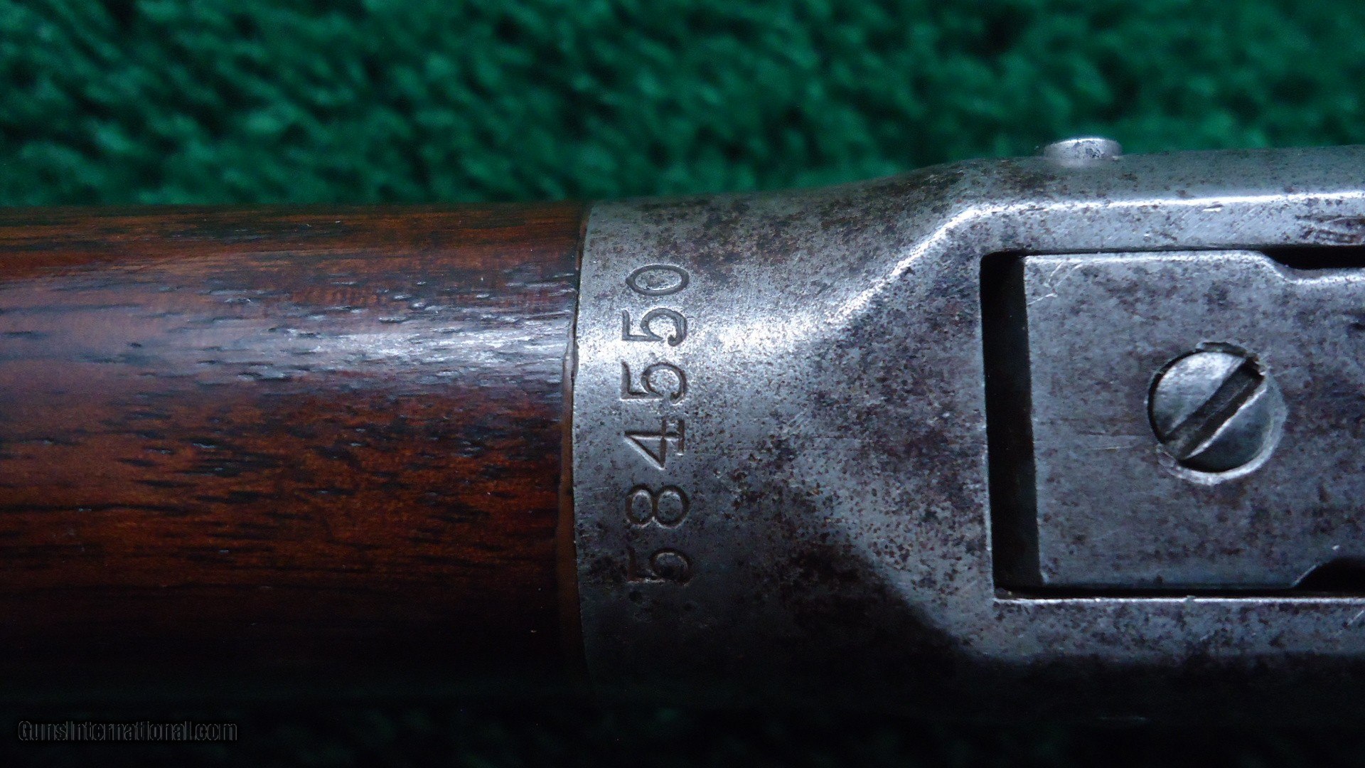 Description: 16 inch octagon nickel steel barrel chambered in 30 WCF caliber. Full length magazine. Correct shorter forearm. Barrel and mag tube are a gray/brown patina. Blade front sight and 3 leaf Express rear with 1 leaf missing. A good shiny bore. Receiver is a mottled gray/brown. Crisp action. Walnut stocks are in good condition. Crescent rifle style buttplate. These are just getting harder to find and most got used pretty hard. 1894 Short Rifle from 1911. Leroy Merz Antique Firearms specializes in antique and vintage Winchesters and other fine American firearms. Since 1965 Mr. Merz has taken part in the world of firearms and has been a contributor to many well known reference books. We have hundreds of additional guns in every price range at our home online. Search for Merz Antiques in google. SOLD Curio/Relic: Yes Rifle Caliber: .30-30 Winchester |