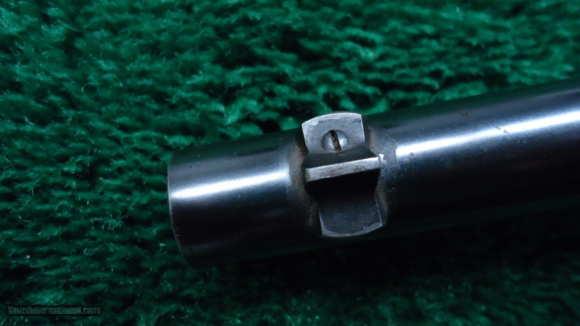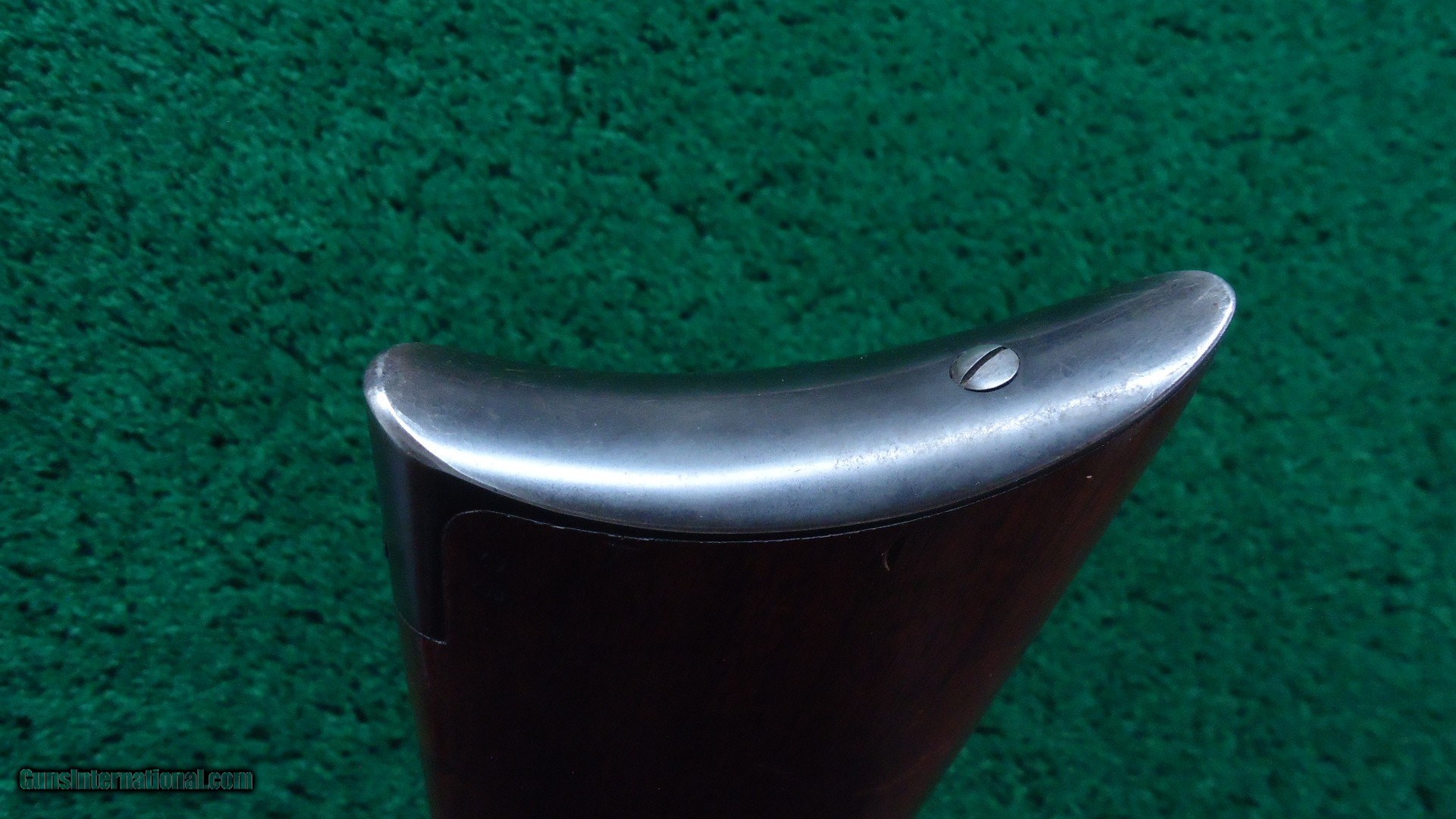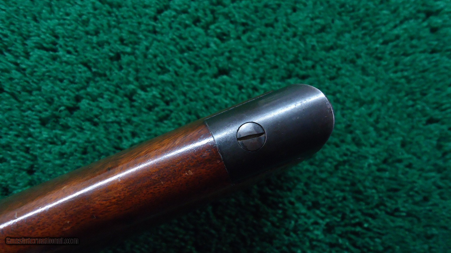 Description: 26 inch round barrel. Sights include original front that has the top shaved down and a flat top sporting rear. Full length magazine. Plain walnut forearm with a straight grip buttstock and a crescent rifle buttplate. Condition rates near excellent overall with the barrel and magazine tube retaining about 98% blue. Near excellent bore is bright and shiny with strong rifling. Frame has dulled to a blue grey patina. Screws are true. Action is crisp and tight. Stocks are solid and full fitting with scattered light wear and handling marks and has the number “95” stamped into the upper left sidebnear the buttplate. Even the butt plate retains the majority of original blue finish. Manufactured in 1917. Leroy Merz Antique Firearms specializes in antique and vintage Winchesters and other fine American firearms. Since 1965 Mr. Merz has taken part in the world of firearms and has been a contributor to many well known reference books. We have hundreds of additional guns in every price range at our home online. Search for Merz Antiques in google. SOLD Curio/Relic: Yes Rifle Caliber: .32-40 Winchester |