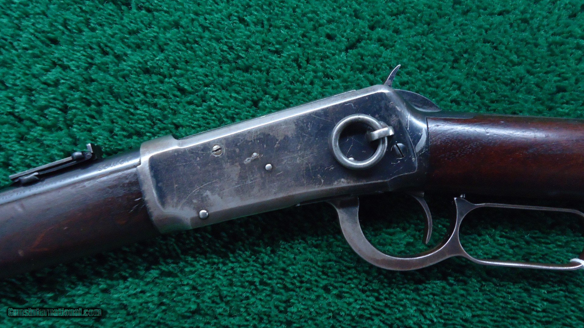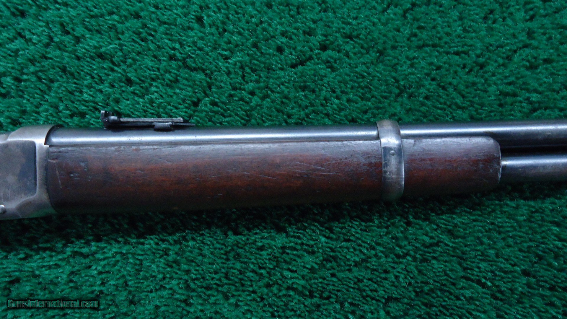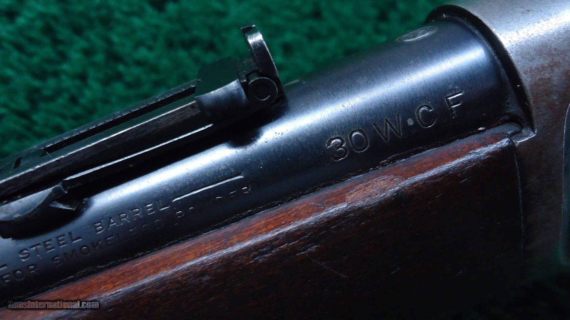 Description: 20 inch carbine configuration in 30 WCF caliber with a good bore with very light frosting over the visible rifling. May clean up some. Original sights include a pinned blade front and a carbine folding ladder. Thinning barrel and mag blue are a blue/gray color. Receiver has about 50% original blue with good blue in protected areas. Original saddle ring. Hammer and lever have traces of case color. Carbine buttplate. Walnut stocks are in good condition with very minor handling mars.Crisp action. A good looking Winchester SRC made in 1919. Leroy Merz Antique Firearms specializes in antique and vintage Winchesters and other fine American firearms. Since 1965 Mr. Merz has taken part in the world of firearms and has been a contributor to many well known reference books. We have hundreds of additional guns in every price range at our home online. Search for Merz Antiques in google. SOLD Curio/Relic: Yes Rifle Caliber: .30-30 Winchester |