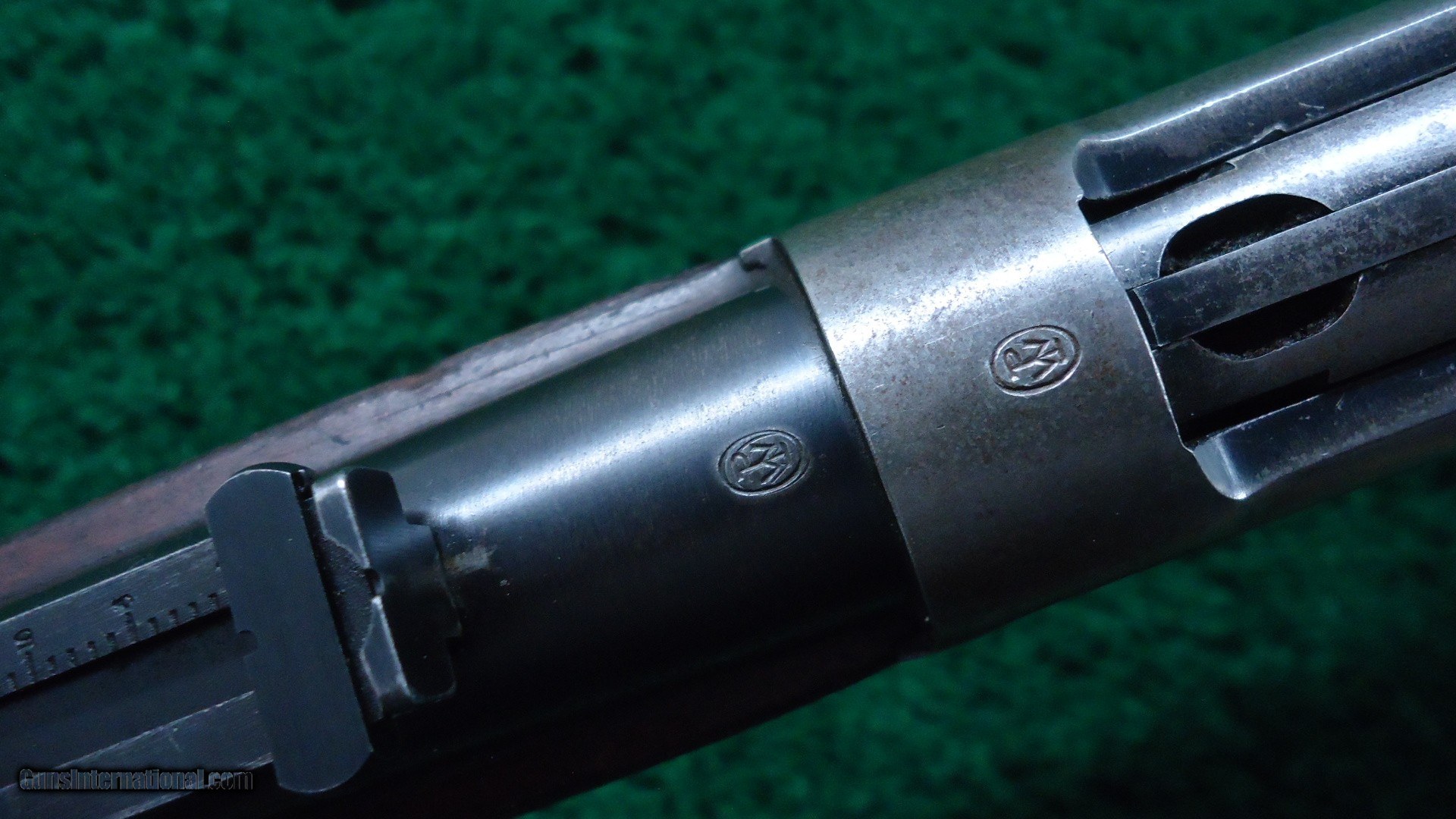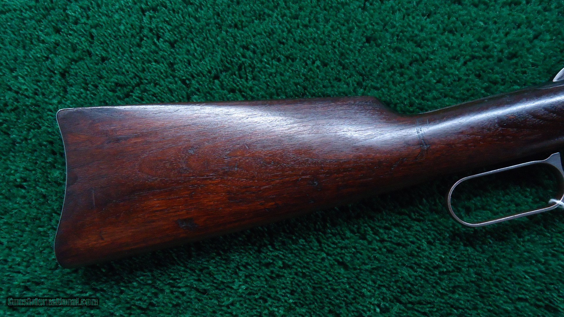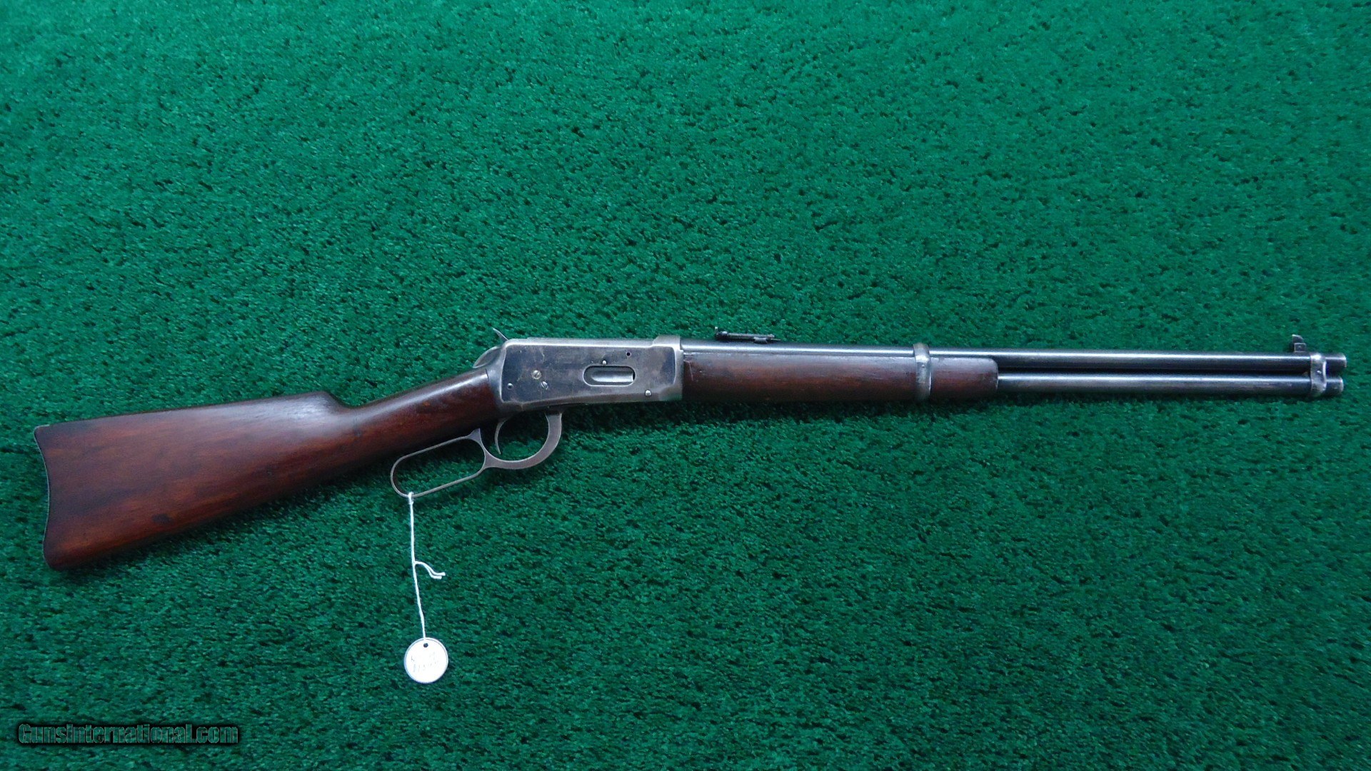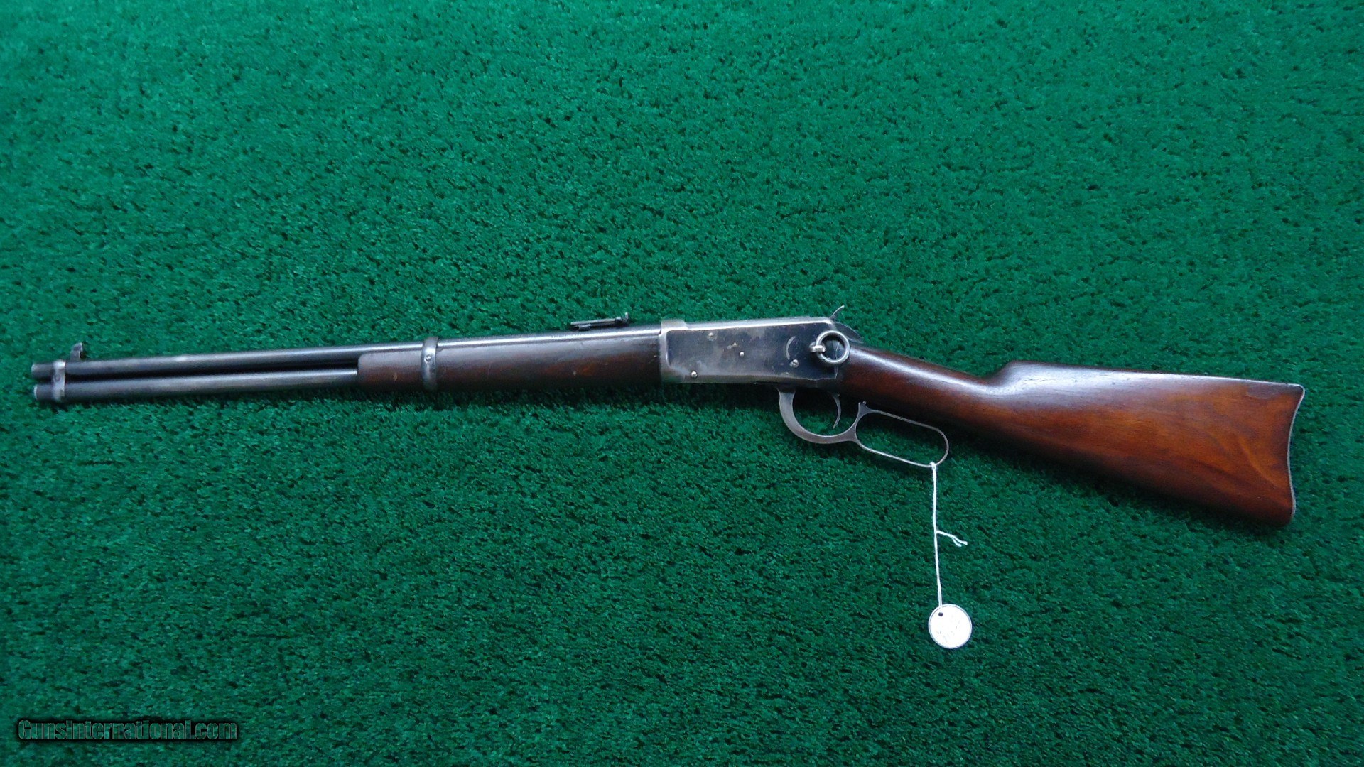 Description: 20 inch carbine configuration in 30 WCF caliber with a good bore with very light frosting over the visible rifling. May clean up some. Original sights include a pinned blade front and a carbine folding ladder. Thinning barrel and mag blue are a blue/gray color. Receiver has about 50% original blue with good blue in protected areas. Original saddle ring. Hammer and lever have traces of case color. Carbine buttplate. Walnut stocks are in good condition with very minor handling mars.Crisp action. A good looking Winchester SRC made in 1919. Leroy Merz Antique Firearms specializes in antique and vintage Winchesters and other fine American firearms. Since 1965 Mr. Merz has taken part in the world of firearms and has been a contributor to many well known reference books. We have hundreds of additional guns in every price range at our home online. Search for Merz Antiques in google. SOLD Curio/Relic: Yes Rifle Caliber: .30-30 Winchester |
