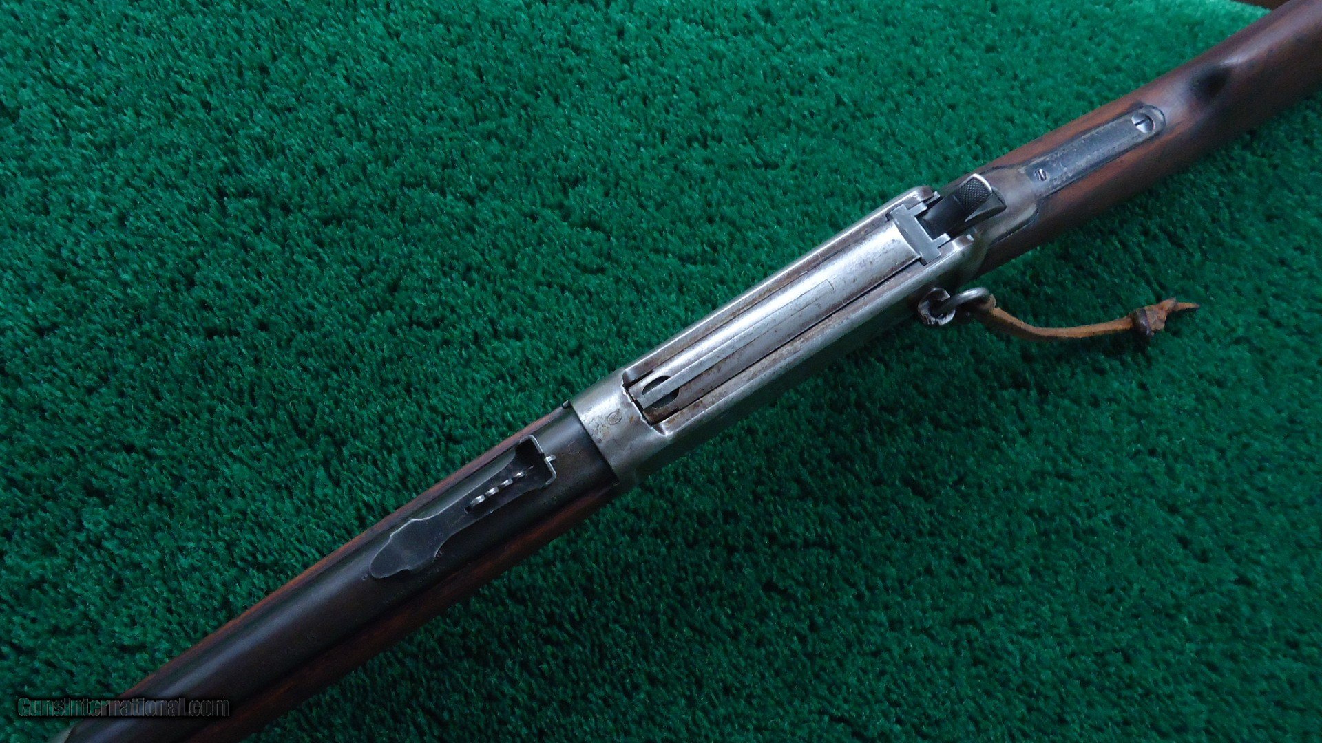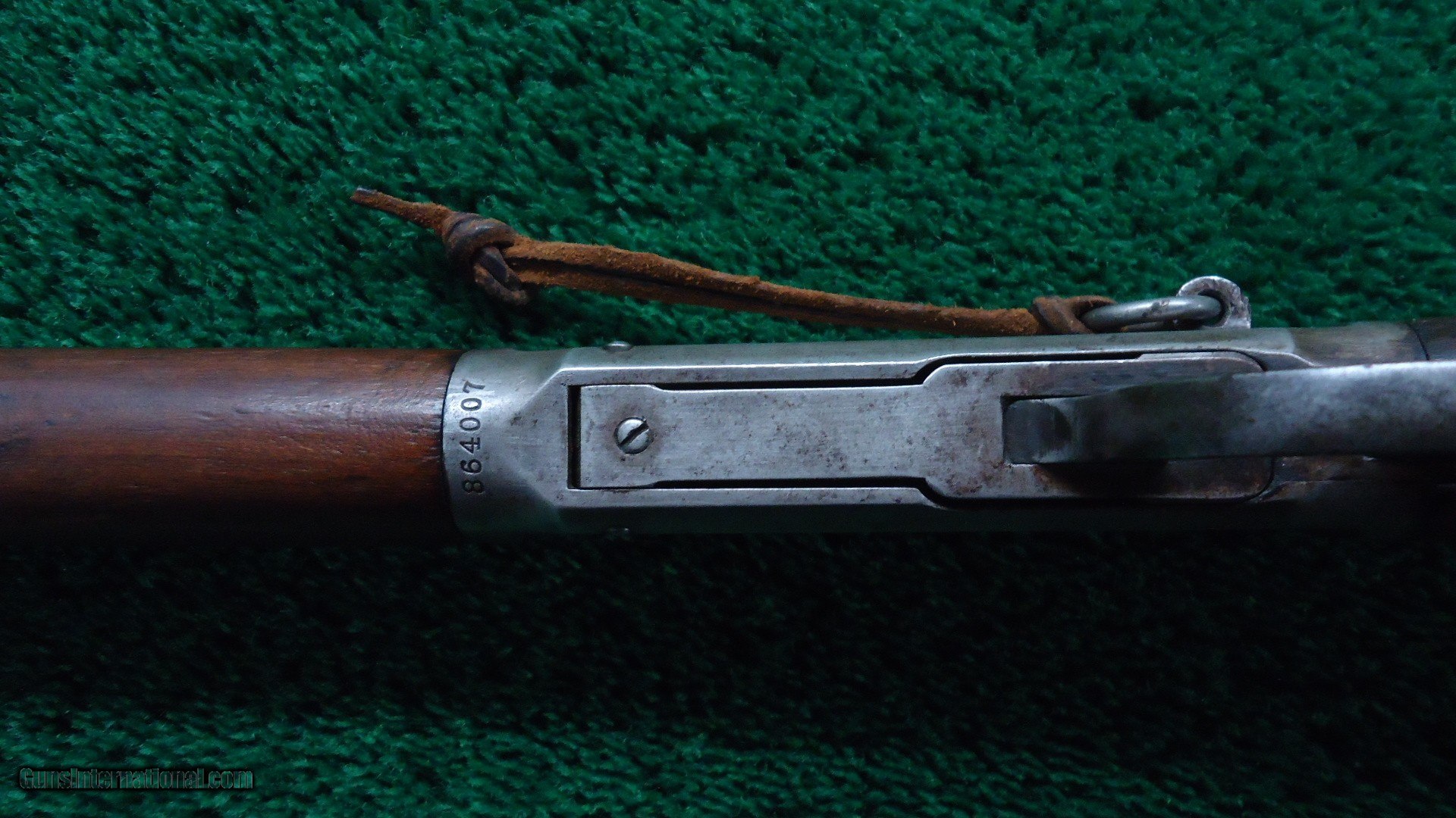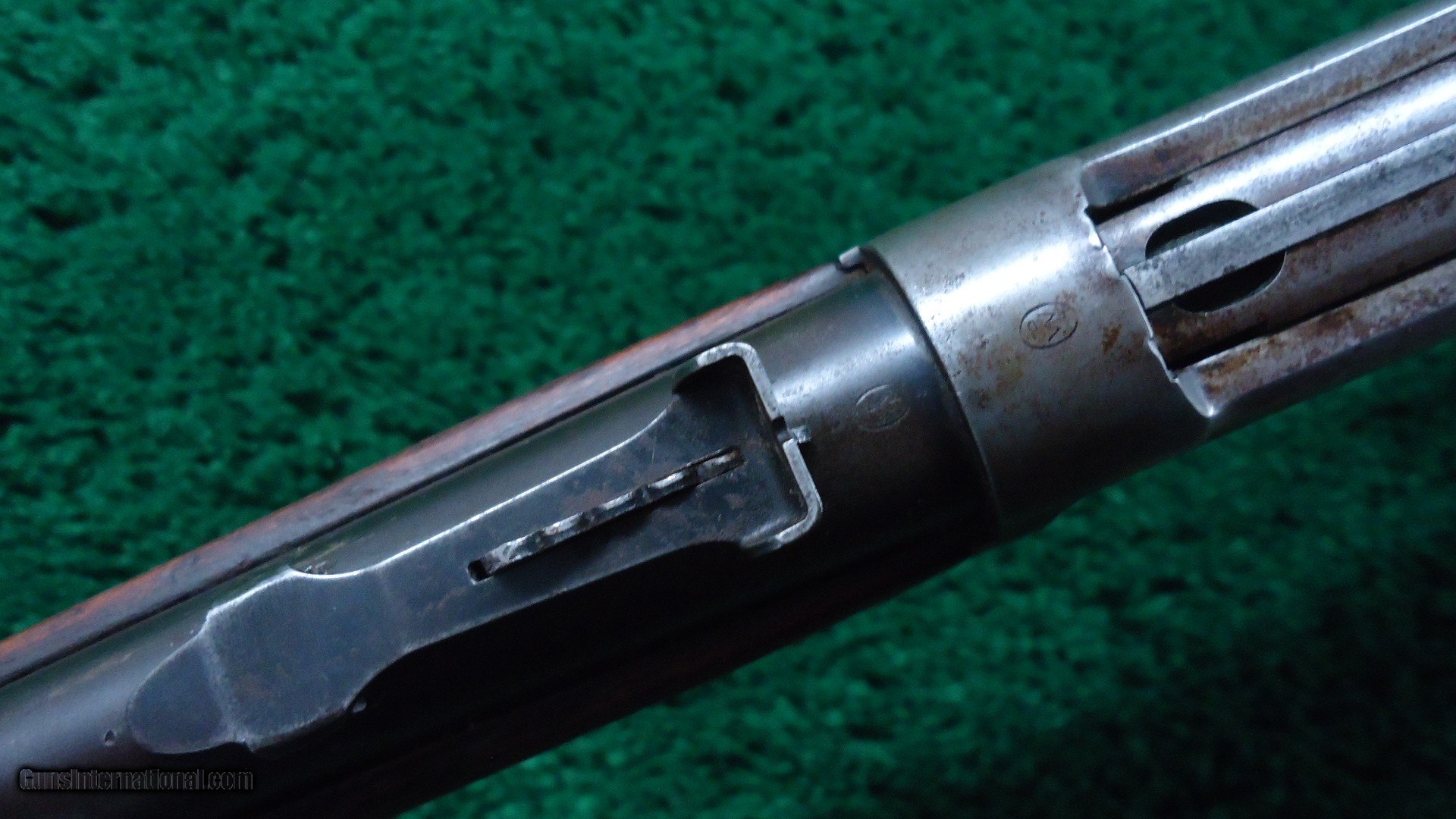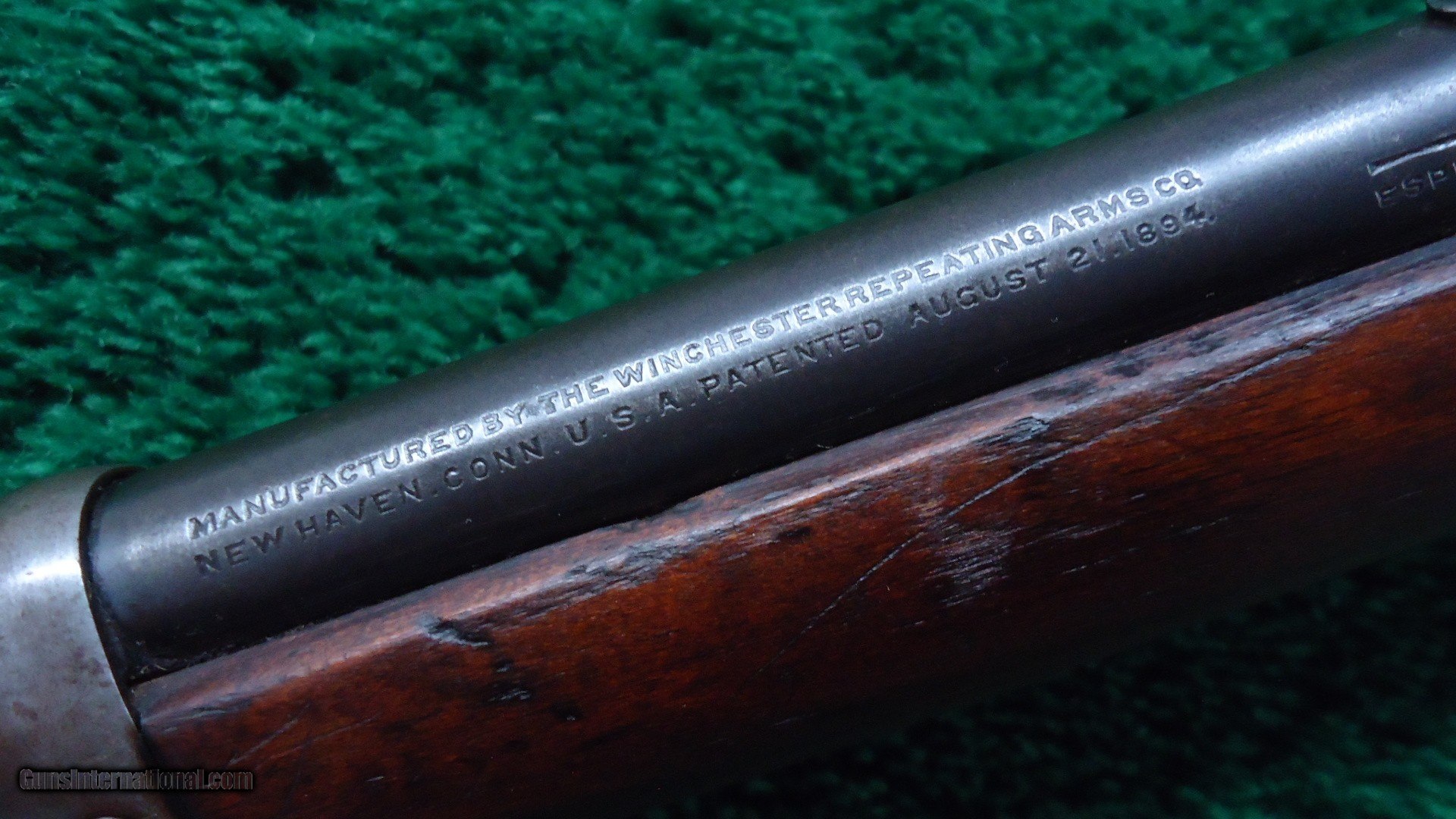 Description: Standard 20 inch carbine configuration chambered in 30 WCF caliber. Pinned blade front and a period replacement rear sight. A very good shiny bore with crisp action. Barrel and mag tube have good amounts of original blue in the protected areas with the balance turning a plum/brown. Receiver is a grey patina with traces of blue around the screws and saddle ring. Carbine style buttplate is the same color as the frame. Gumwood stocks look and fit good with the usual light handling mars that are present in these old guns. A nice old SRC made in 1919. Leroy Merz Antique Firearms specializes in antique and vintage Winchesters and other fine American firearms. Since 1965 Mr. Merz has taken part in the world of firearms and has been a contributor to many well known reference books. We have hundreds of additional guns in every price range at our home online. Search for Merz Antiques in google. SOLD Curio/Relic: Yes Rifle Caliber: .30-30 Winchester |