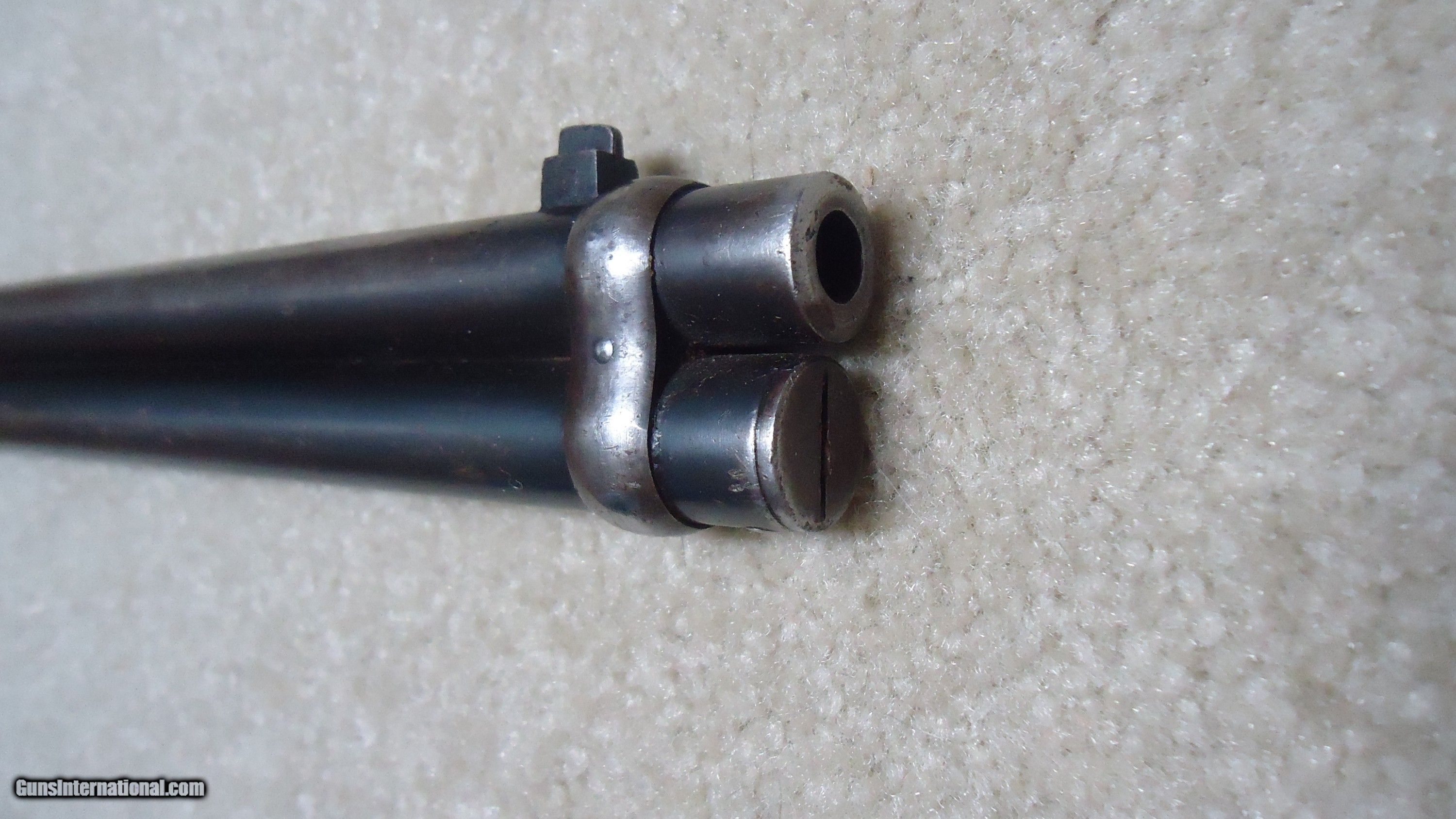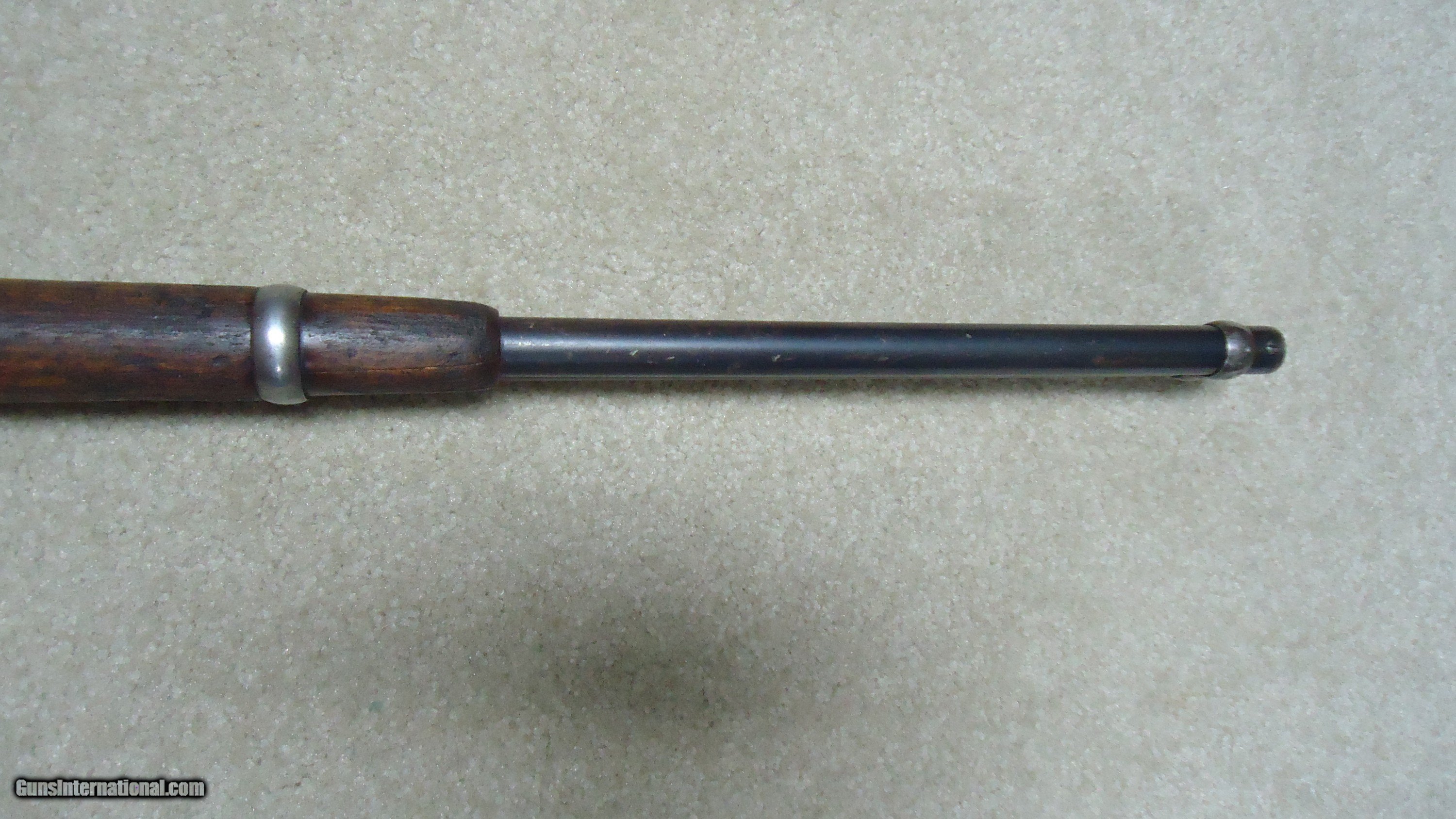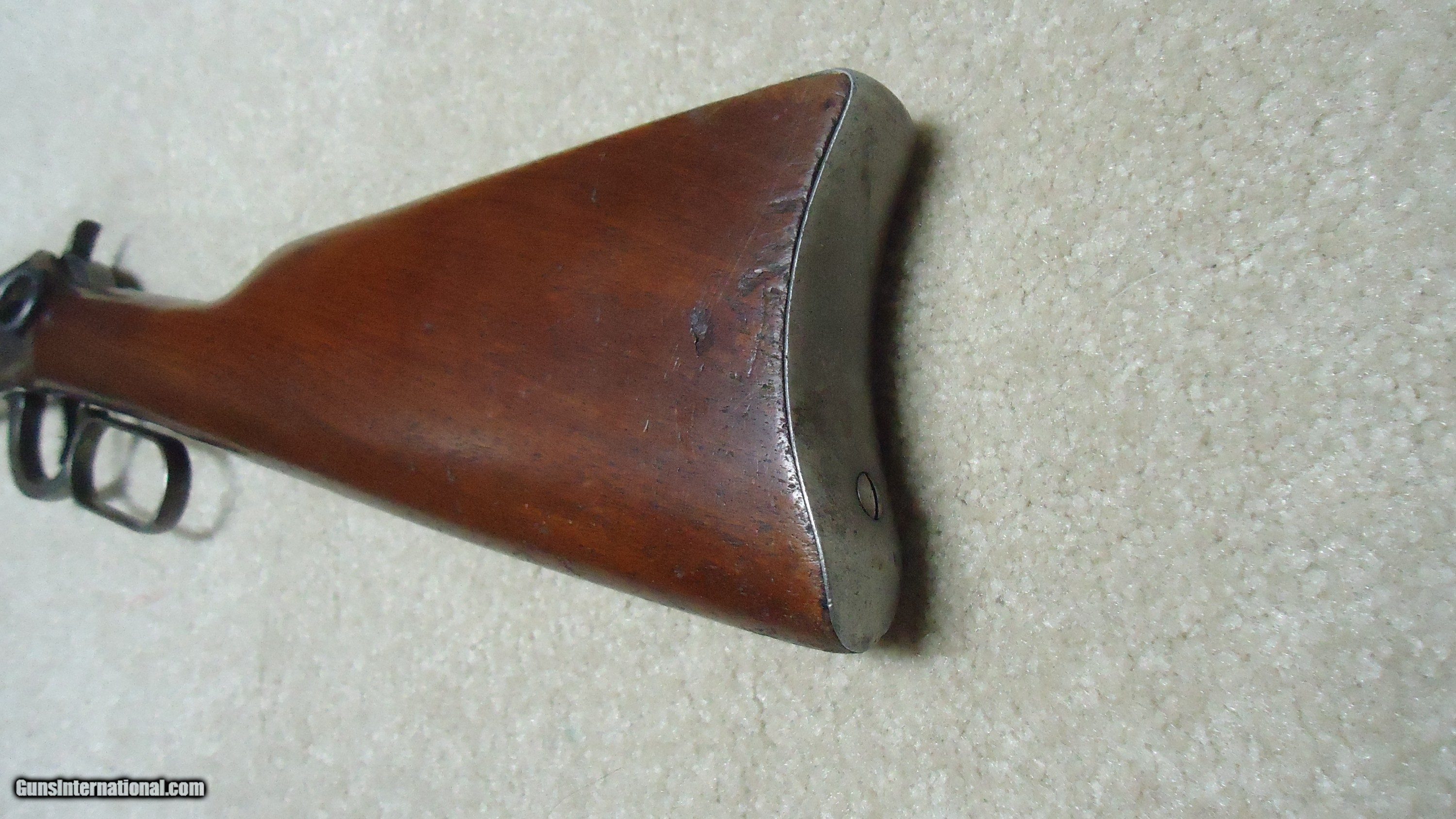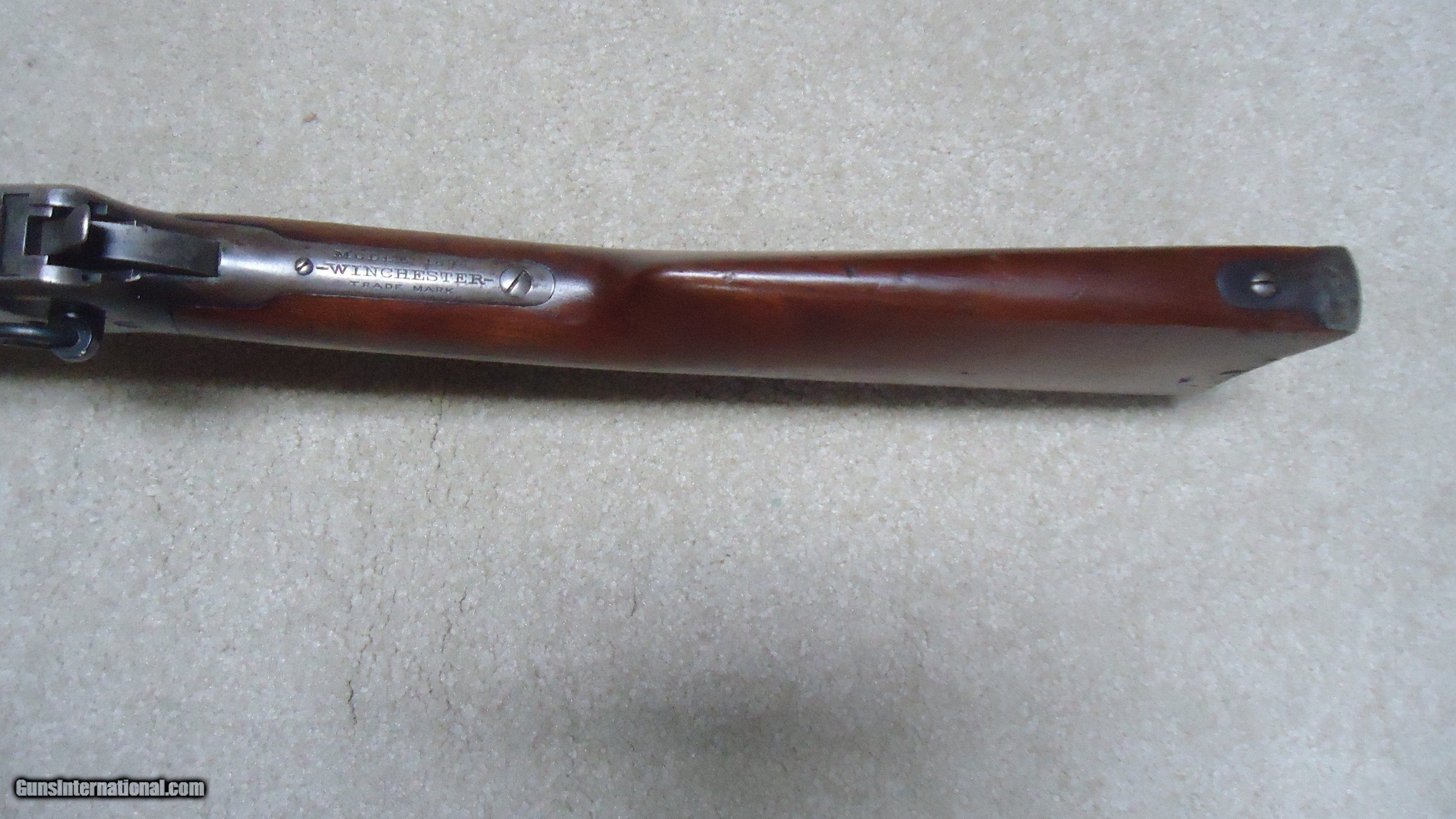 Description: 1894 SADDLE RING CARBINE IN THE LEAST PRODUCED CALIBER, .32-40, #344XXX, MADE 1907. Of all the calibers manufactured for the 1894, relatively few were prduced in this early caliber. Those wanting a smaller caliber went with the .25-35 and those wanting a larger bore diameter chose the .38-55. In the mid-size offerings most wanted the .30 WCF (.30-30) or .32 WS- the .32-40 just seemed like a weaker chambering with no advantages. Many more rifles were chambered for the .32-40 than carbines, and even these are hard to find. This example still shows some good aged blue in the rear sections of both receiver sides along with good blue on the loading gate and in the more protected areas. The barrel retains blue on the lower portions above the mag tube, around the front & rear sights and barrel band with much of the remainder of the top portion mixing gray/brown. All fine barrel and tang markings, exc. screws (only one looks a little turned), tight action, strong hammer spring with solid half-cock on the hammer. Original carbine ladder sight with slide intact. Bore is bright. Stock and forend are fine showing normal handling with tight wood to metal fit and no chips or cracks except for the usual hairline age crack coming back from the forend tip bottom and going nowhere. The forend shows a bit more wear, probably from saddle scabbard and over saddle carry. In all a very rare 117 year old 1894 in a caliber that is seldom encountered. SOLD Manufacturer: WINCHESTER Model: 1894 SADDLE RING CARBINE Serial Number: 344XXX Barrel Length: 20 Condition: VG |