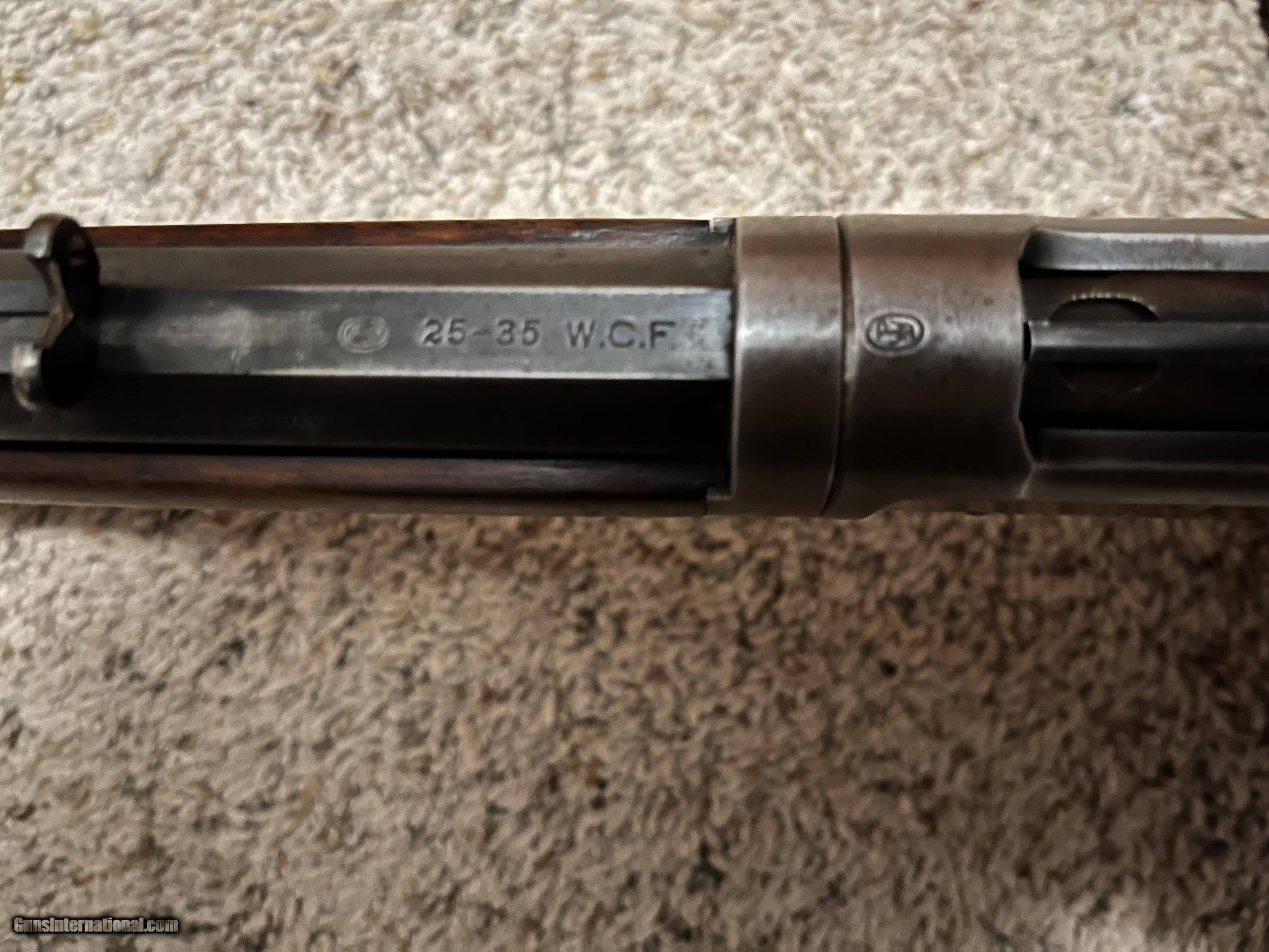Description: SOLD to bill in SD . Here is a real nice looking model 1894 in 25-35 26" barrel with a good bore made in 1906 and in the takedown still good color on this rifle as well as it is turning . takedown feature is tight and works as it should . missing the rear elevator for the sight . Probably find one for 20-30 bucks or maybe you have one already . Great Winchester for deer hunting or for your collection . I see others on here for even more money and there definitely not as nice as this one . Any questions feel free to ask . Shipping is 60.00 please know your laws and if it can be shipped to you . SOLD Curio/Relic: Yes Rifle Caliber: .25-35 Winchester |