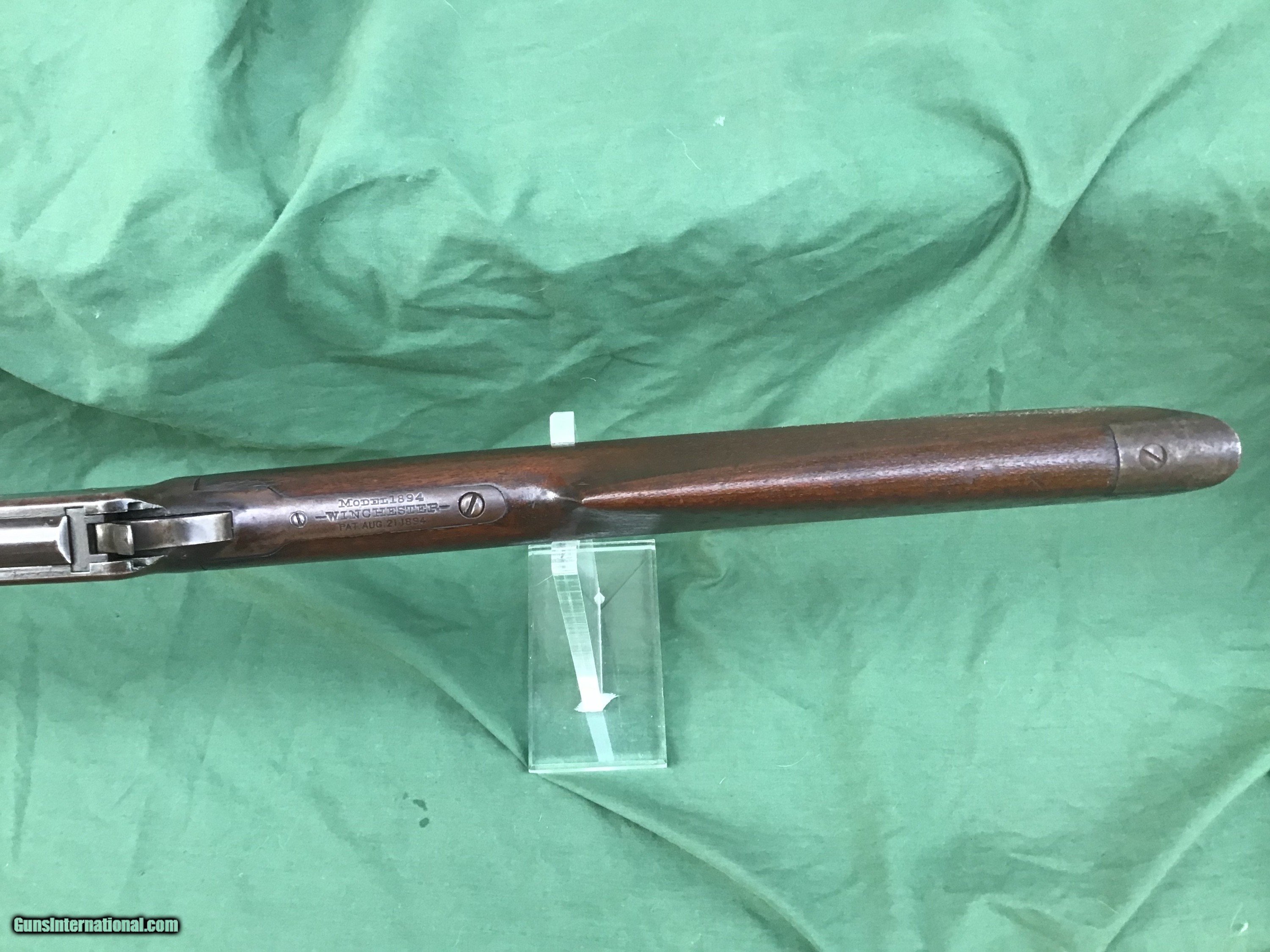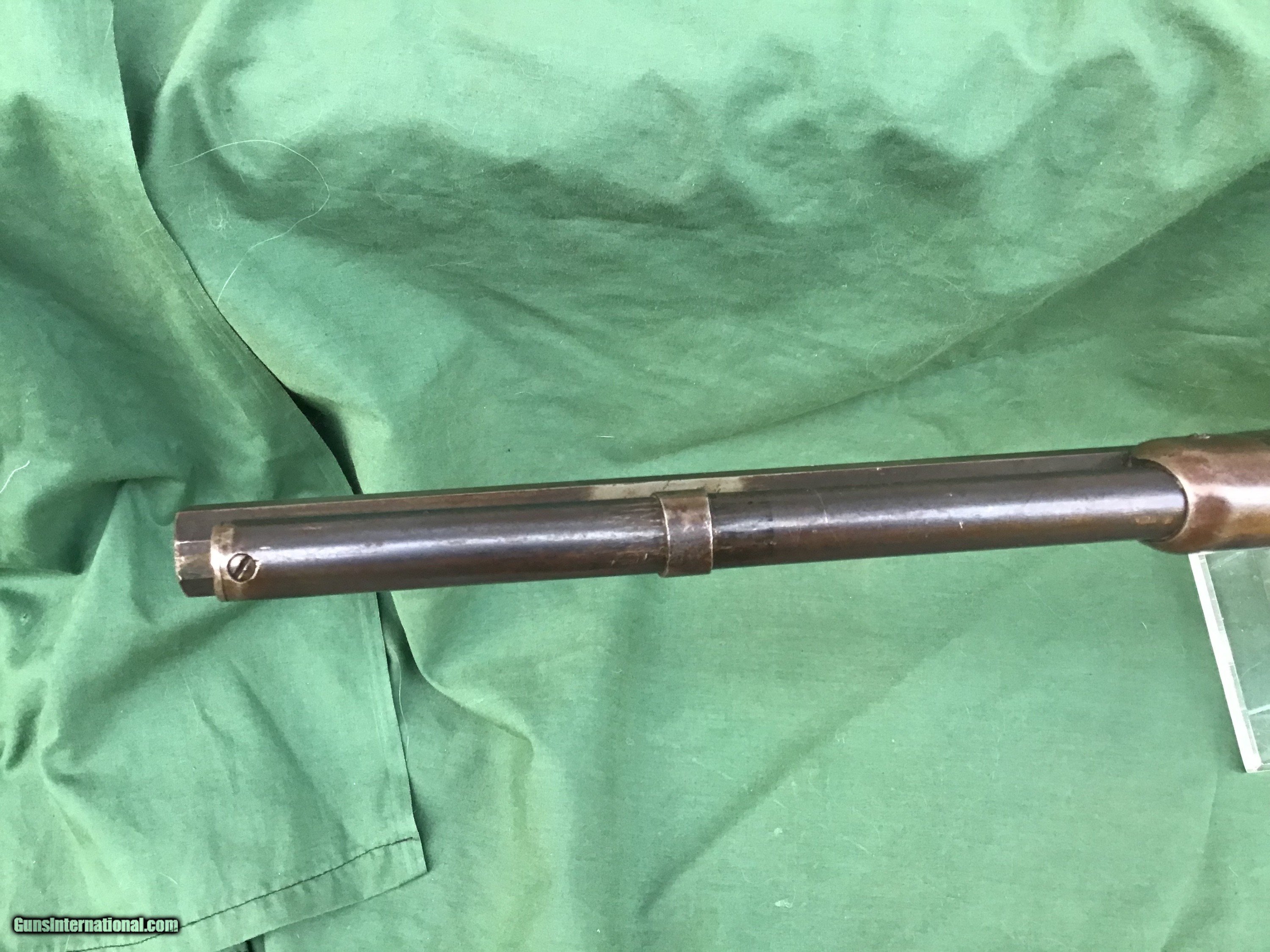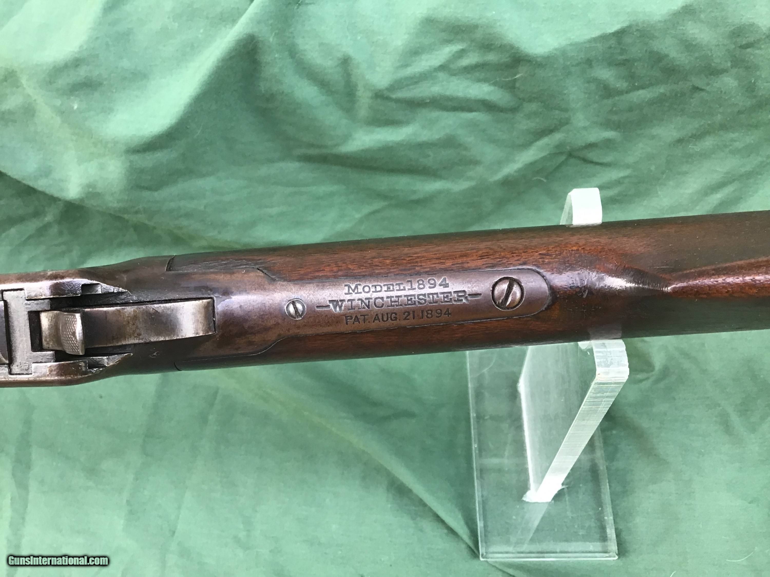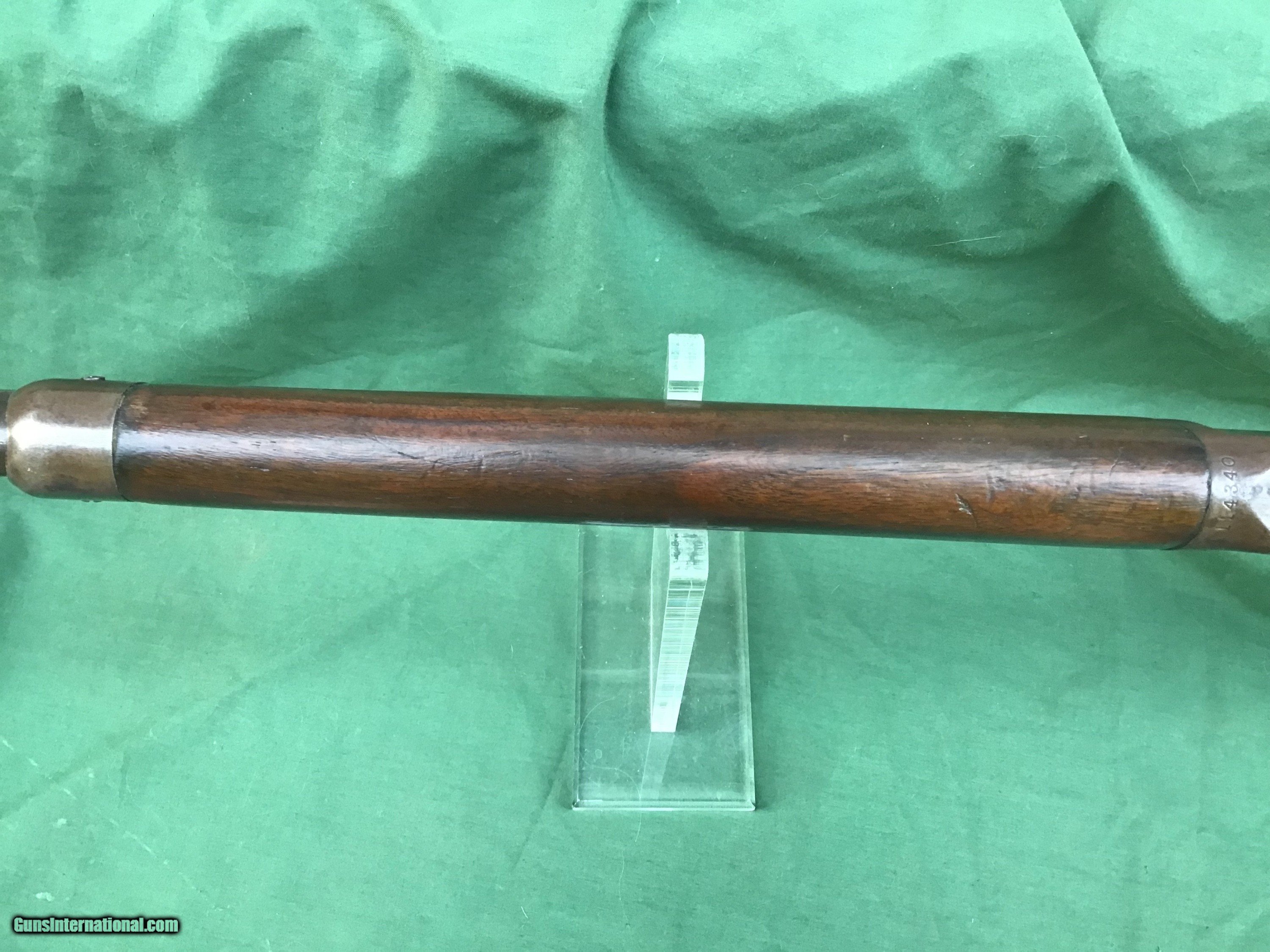 Description: Antique 1894 Winchester manufactured in 1898. .38-55 with 19 1/2" octagon barrel and full magazine tube. I will rate the bore a 5 on a scale from 1 to 10. Barrel and tube retain maybe 10% original blue in protected areas with the remainder a gray / brown patina. Markings are good and action functions nicely. Receiver retains 10-15% original blue with gray / brown patina mixing in. Both forend and buttstock are in good condition but show use. There are dents, scrapes, scratches, and tiny crack in left hand side of forearm. There is also a sliver of wood missing in the right hand side of upper tang (see pics of both). This is a perfect example for a restoration project or use it for parts. It's still a desirable caliber and antique rifle which are more difficult to locate. This firearm as with any other should be checked first by a gunsmith before any attempt is made to fire / operate it. Antique and can be shipped directly to your doorsteps. Please feel free to ask questions. SOLD Antique: Yes |