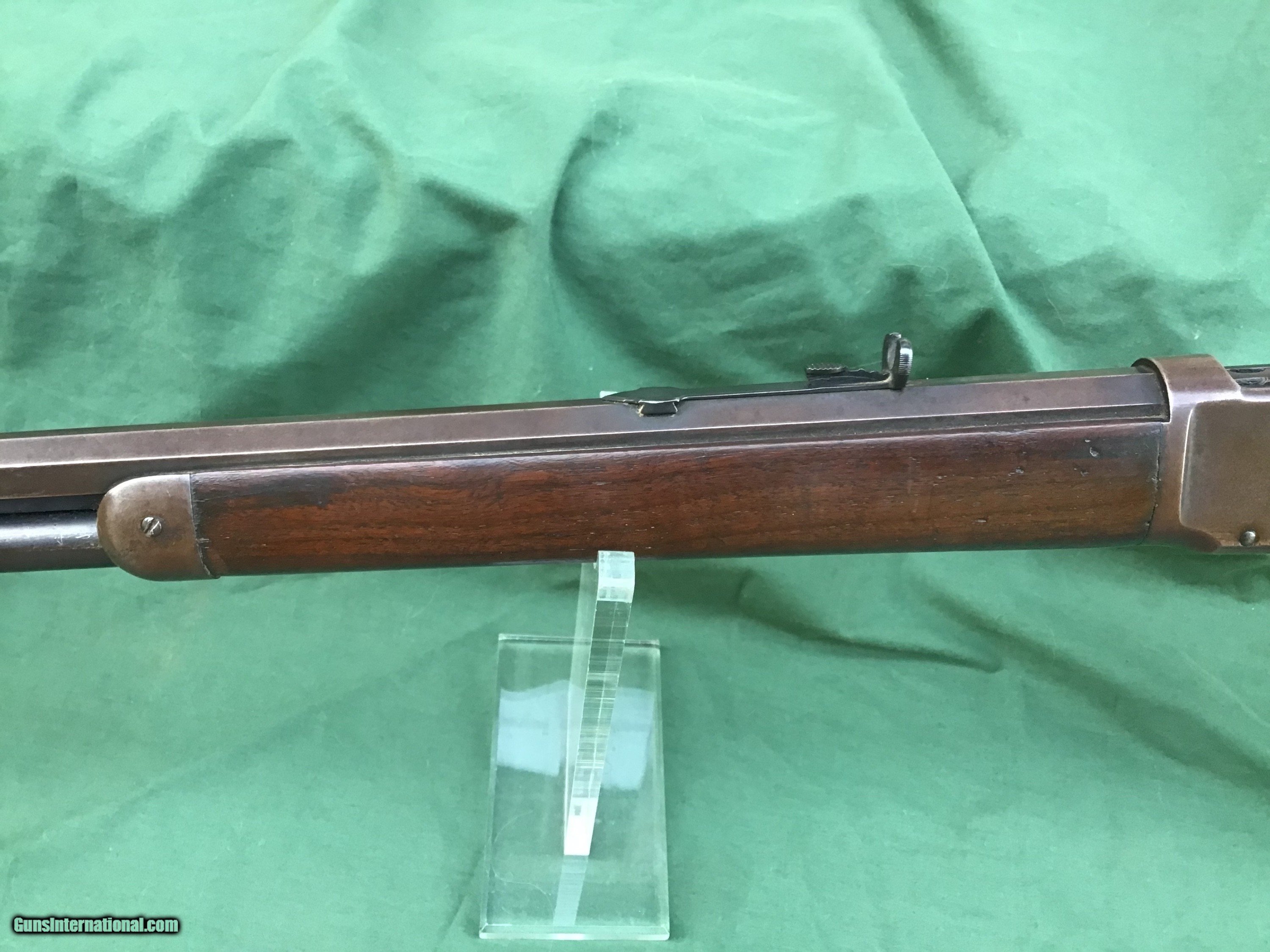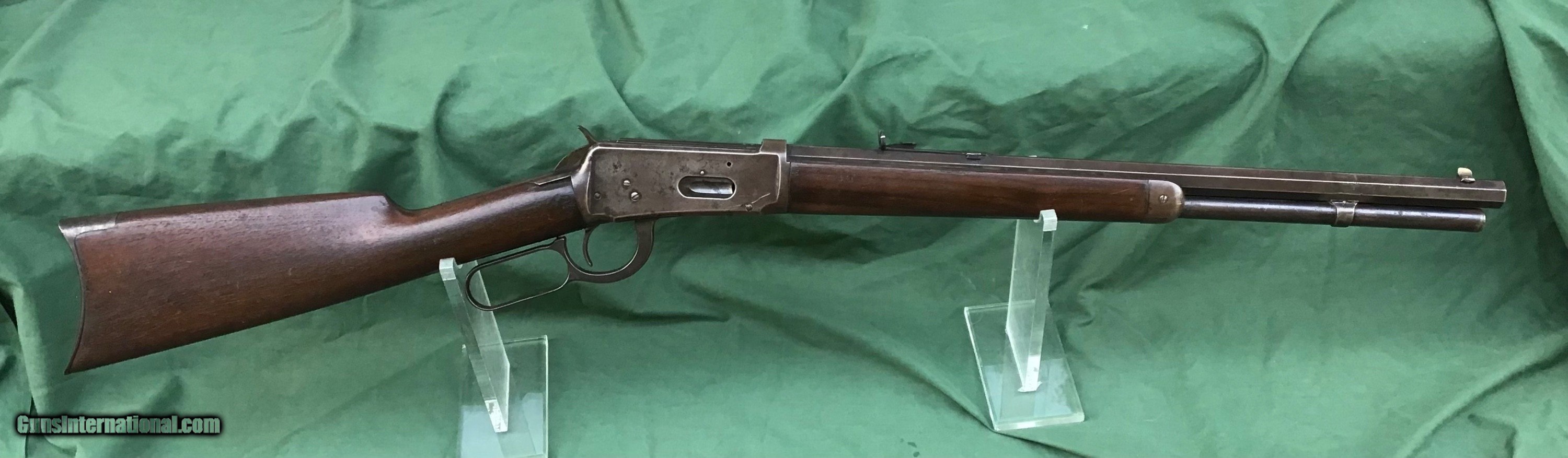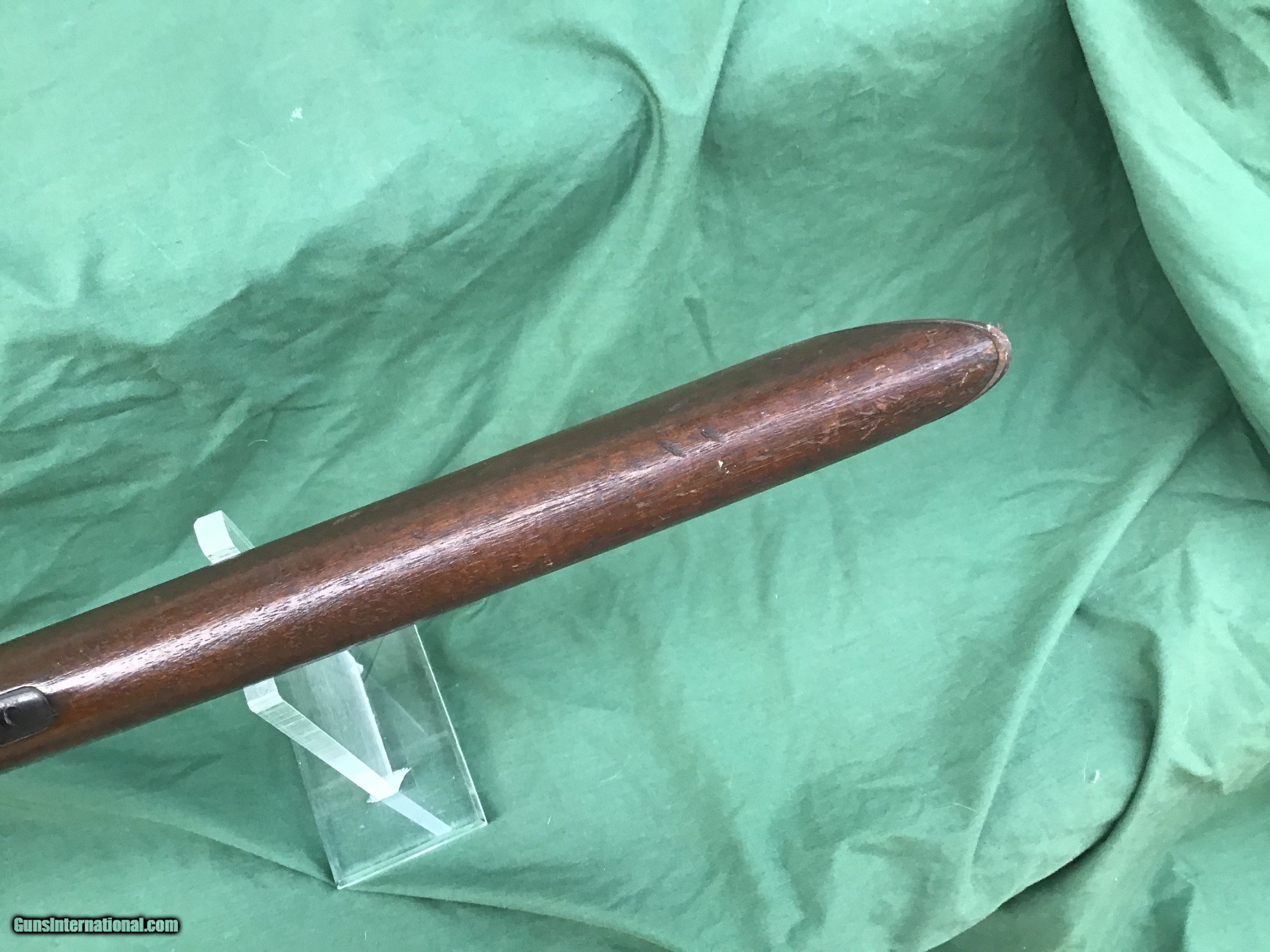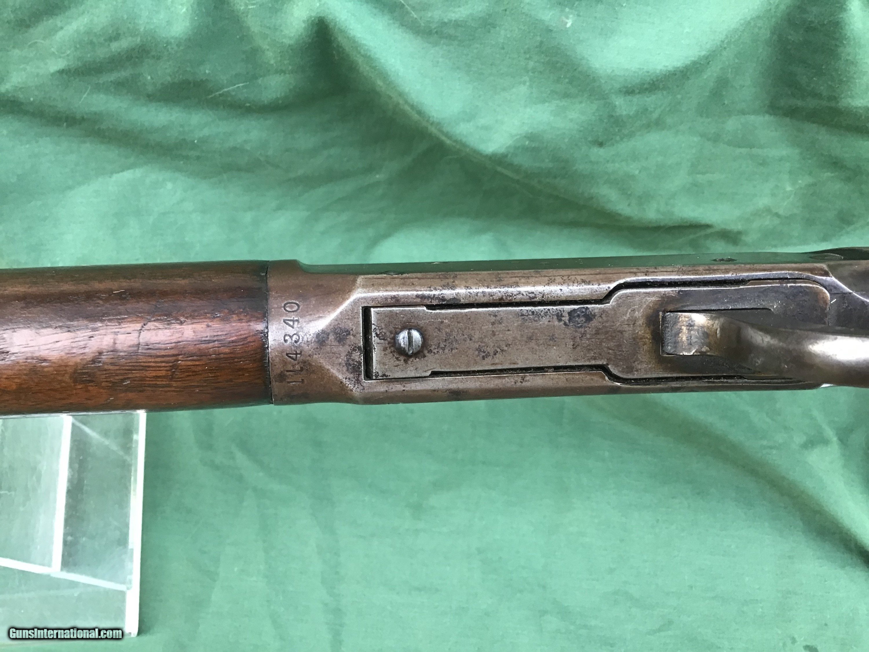 Description: Antique 1894 Winchester manufactured in 1898. .38-55 with 19 1/2" octagon barrel and full magazine tube. I will rate the bore a 5 on a scale from 1 to 10. Barrel and tube retain maybe 10% original blue in protected areas with the remainder a gray / brown patina. Markings are good and action functions nicely. Receiver retains 10-15% original blue with gray / brown patina mixing in. Both forend and buttstock are in good condition but show use. There are dents, scrapes, scratches, and tiny crack in left hand side of forearm. There is also a sliver of wood missing in the right hand side of upper tang (see pics of both). This is a perfect example for a restoration project or use it for parts. It's still a desirable caliber and antique rifle which are more difficult to locate. This firearm as with any other should be checked first by a gunsmith before any attempt is made to fire / operate it. Antique and can be shipped directly to your doorsteps. Please feel free to ask questions. SOLD Antique: Yes |