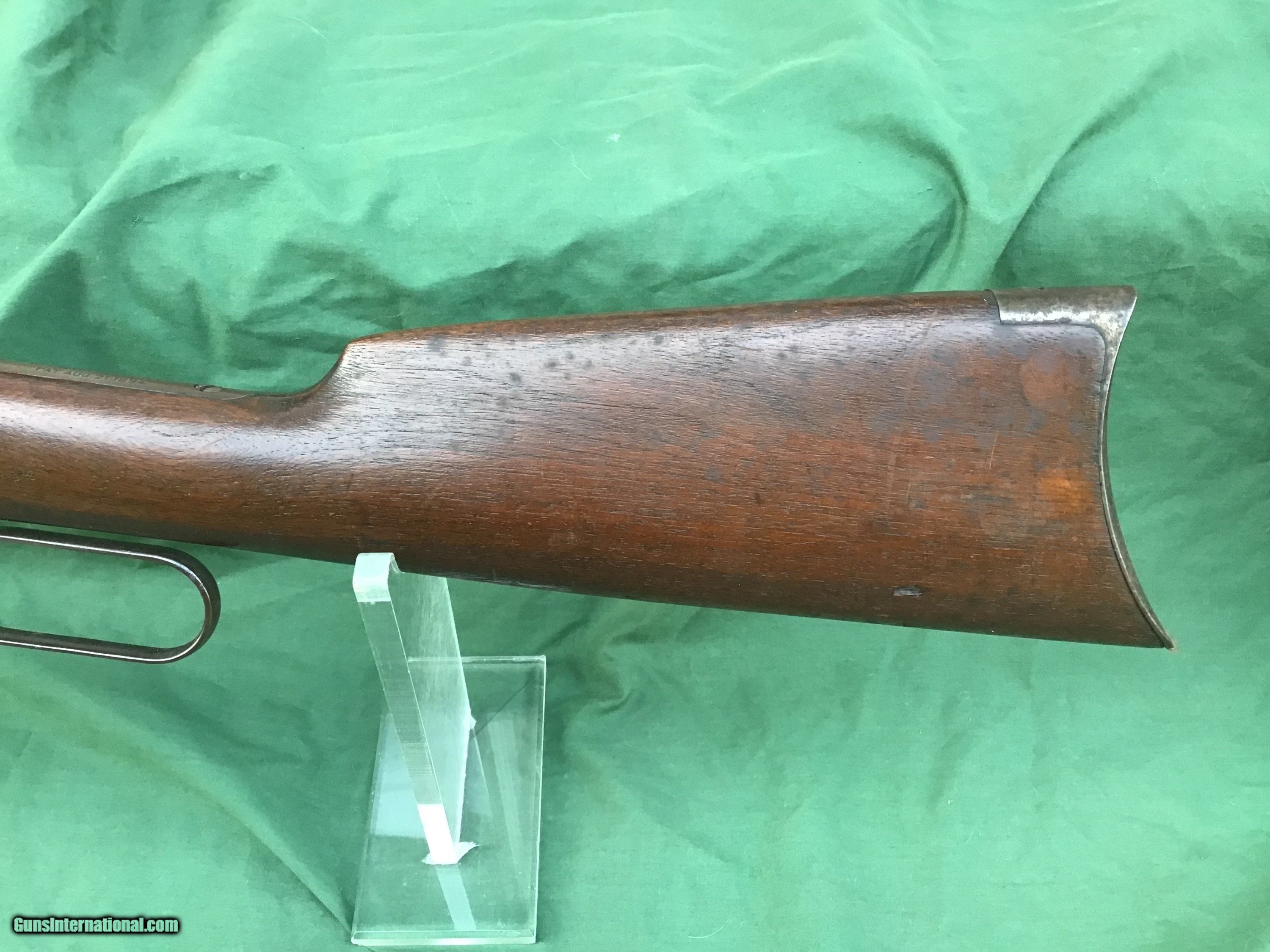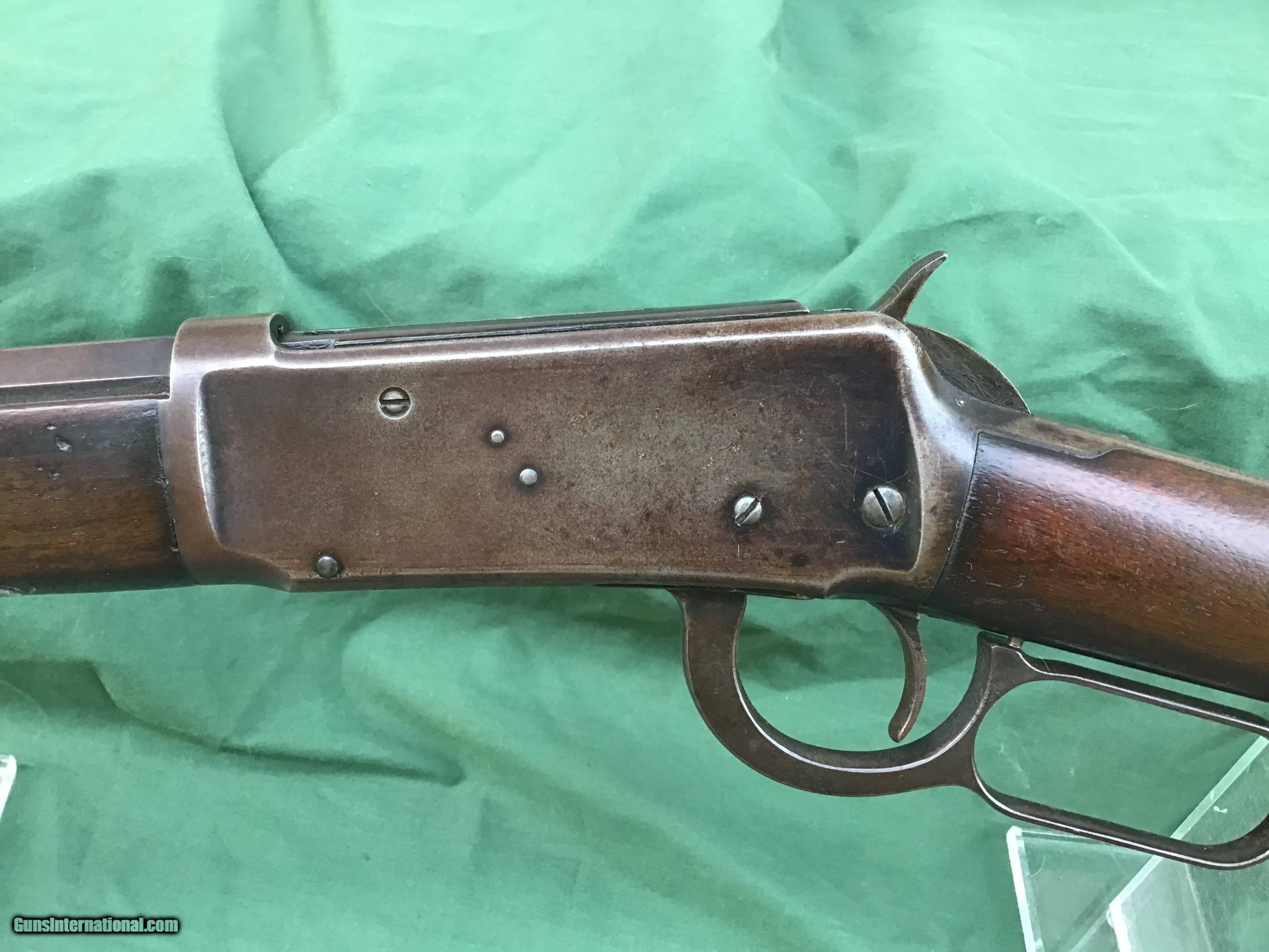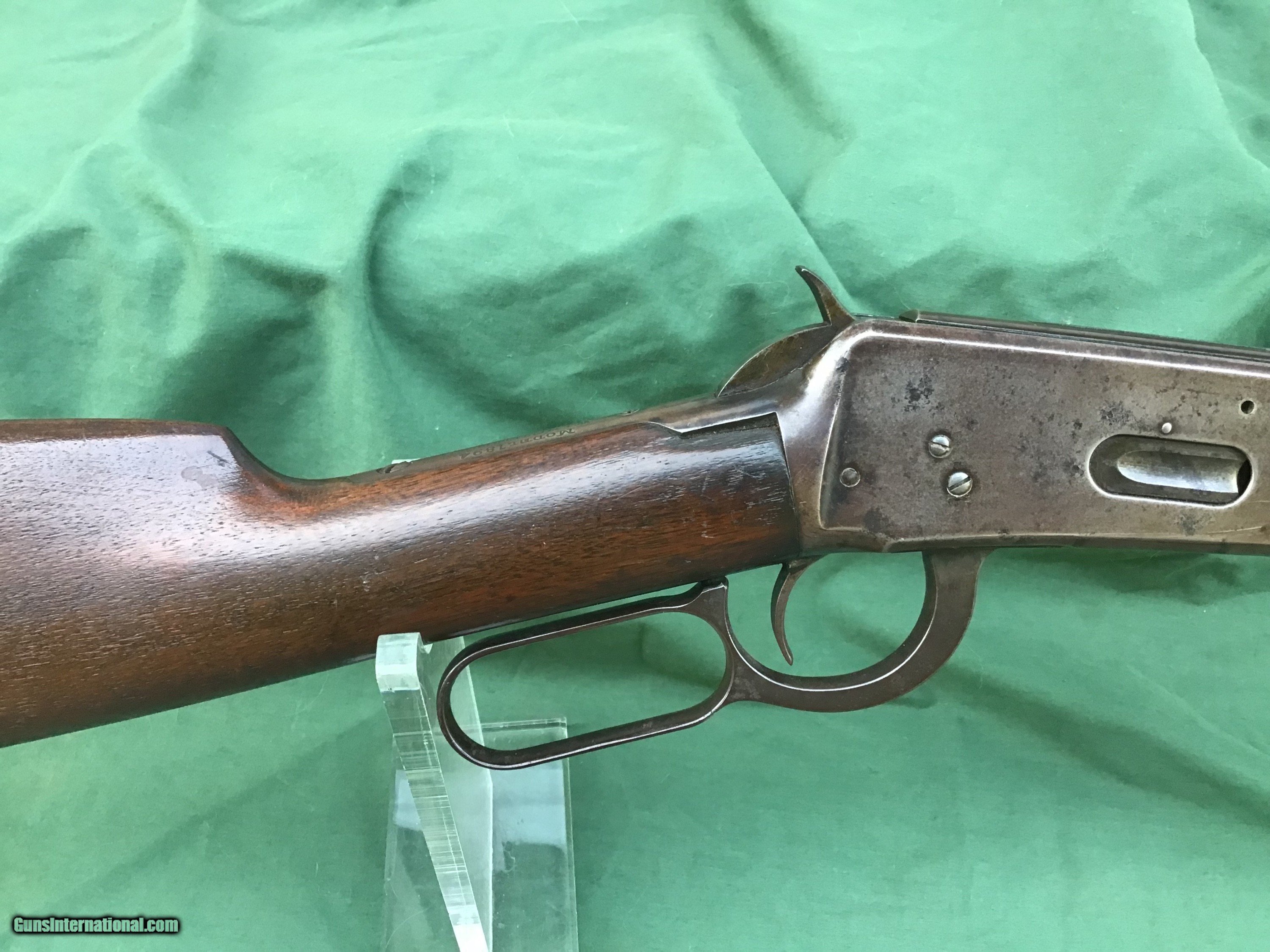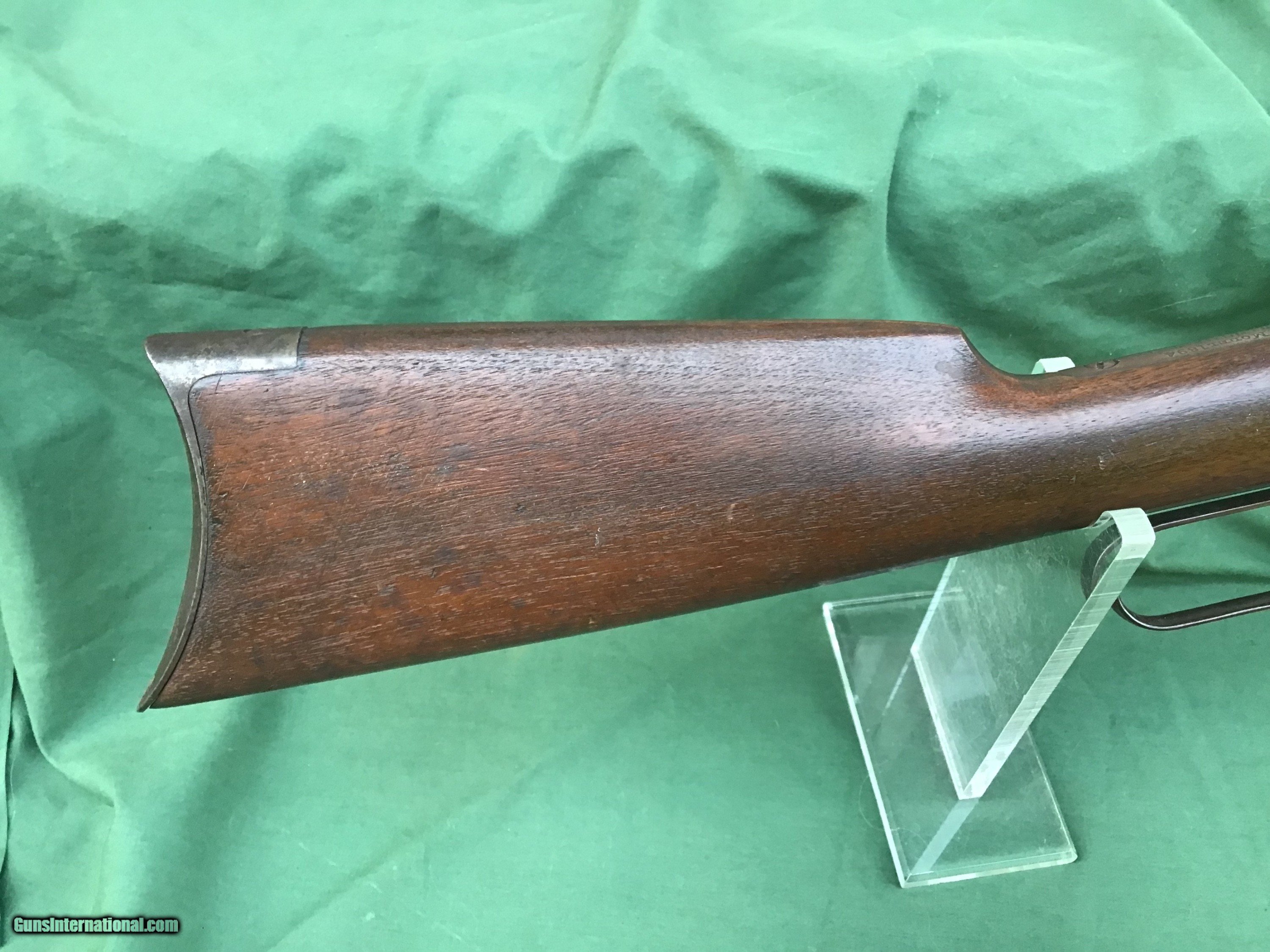 Description: Antique 1894 Winchester manufactured in 1898. .38-55 with 19 1/2" octagon barrel and full magazine tube. I will rate the bore a 5 on a scale from 1 to 10. Barrel and tube retain maybe 10% original blue in protected areas with the remainder a gray / brown patina. Markings are good and action functions nicely. Receiver retains 10-15% original blue with gray / brown patina mixing in. Both forend and buttstock are in good condition but show use. There are dents, scrapes, scratches, and tiny crack in left hand side of forearm. There is also a sliver of wood missing in the right hand side of upper tang (see pics of both). This is a perfect example for a restoration project or use it for parts. It's still a desirable caliber and antique rifle which are more difficult to locate. This firearm as with any other should be checked first by a gunsmith before any attempt is made to fire / operate it. Antique and can be shipped directly to your doorsteps. Please feel free to ask questions. SOLD Antique: Yes |