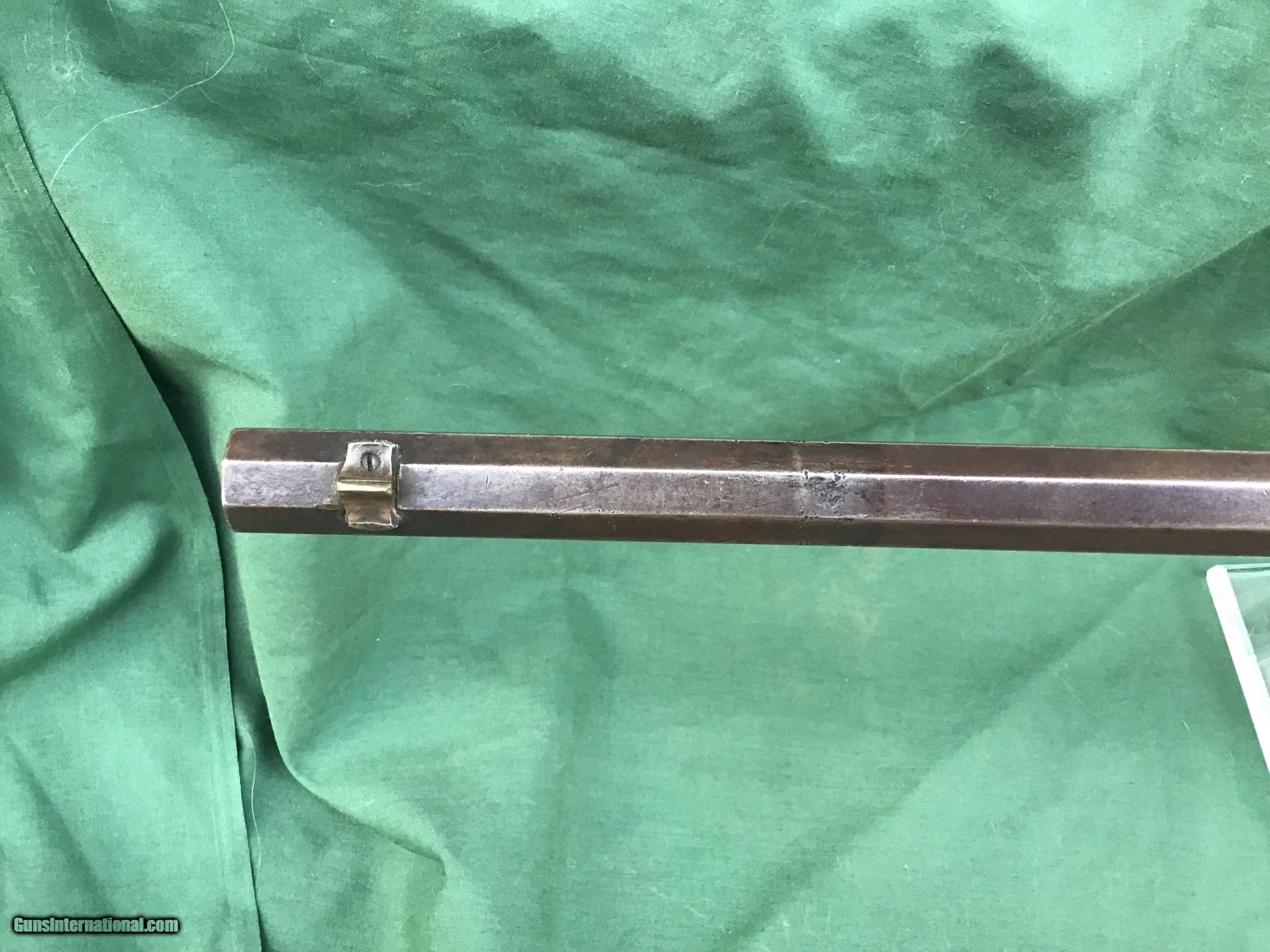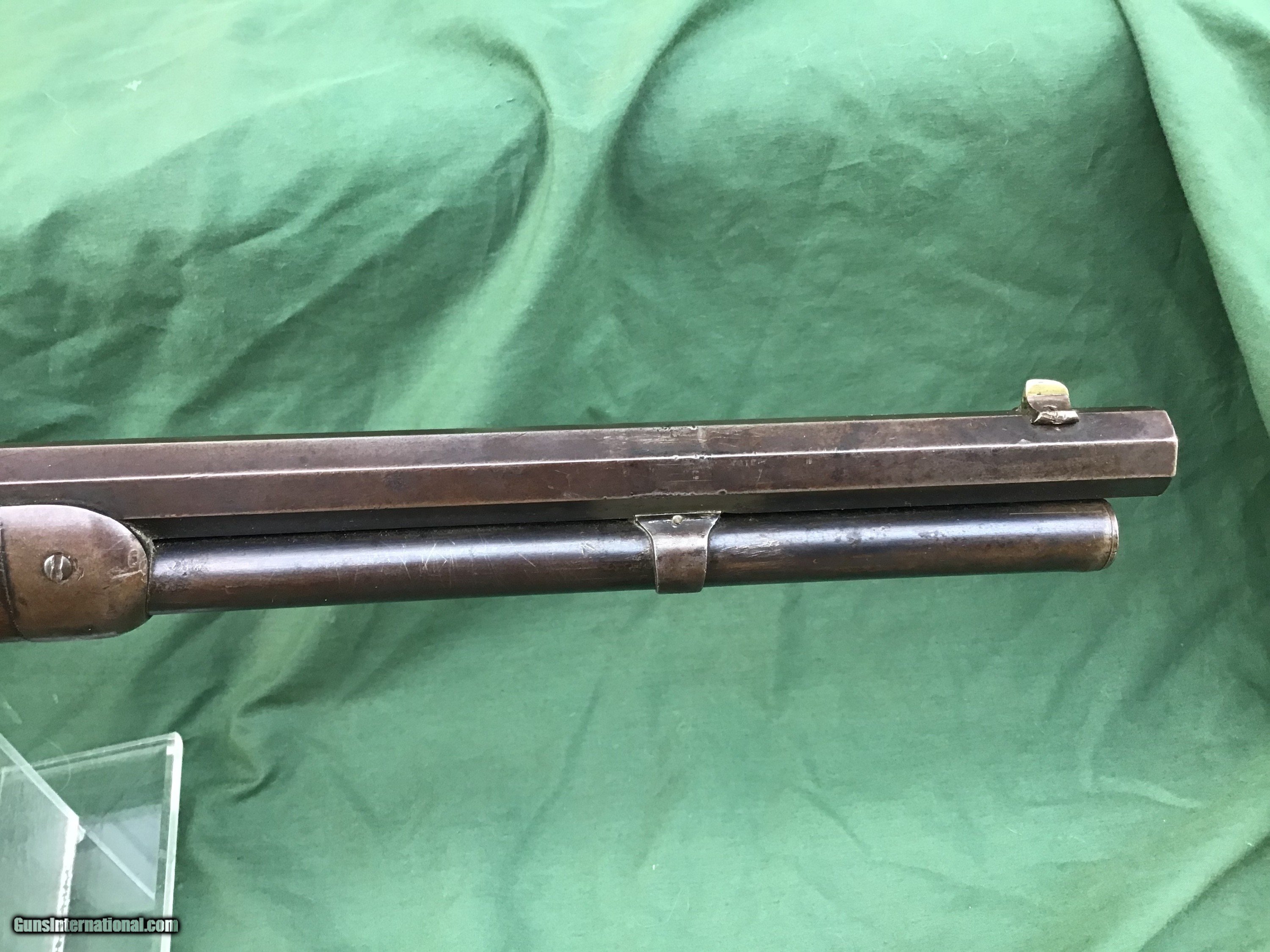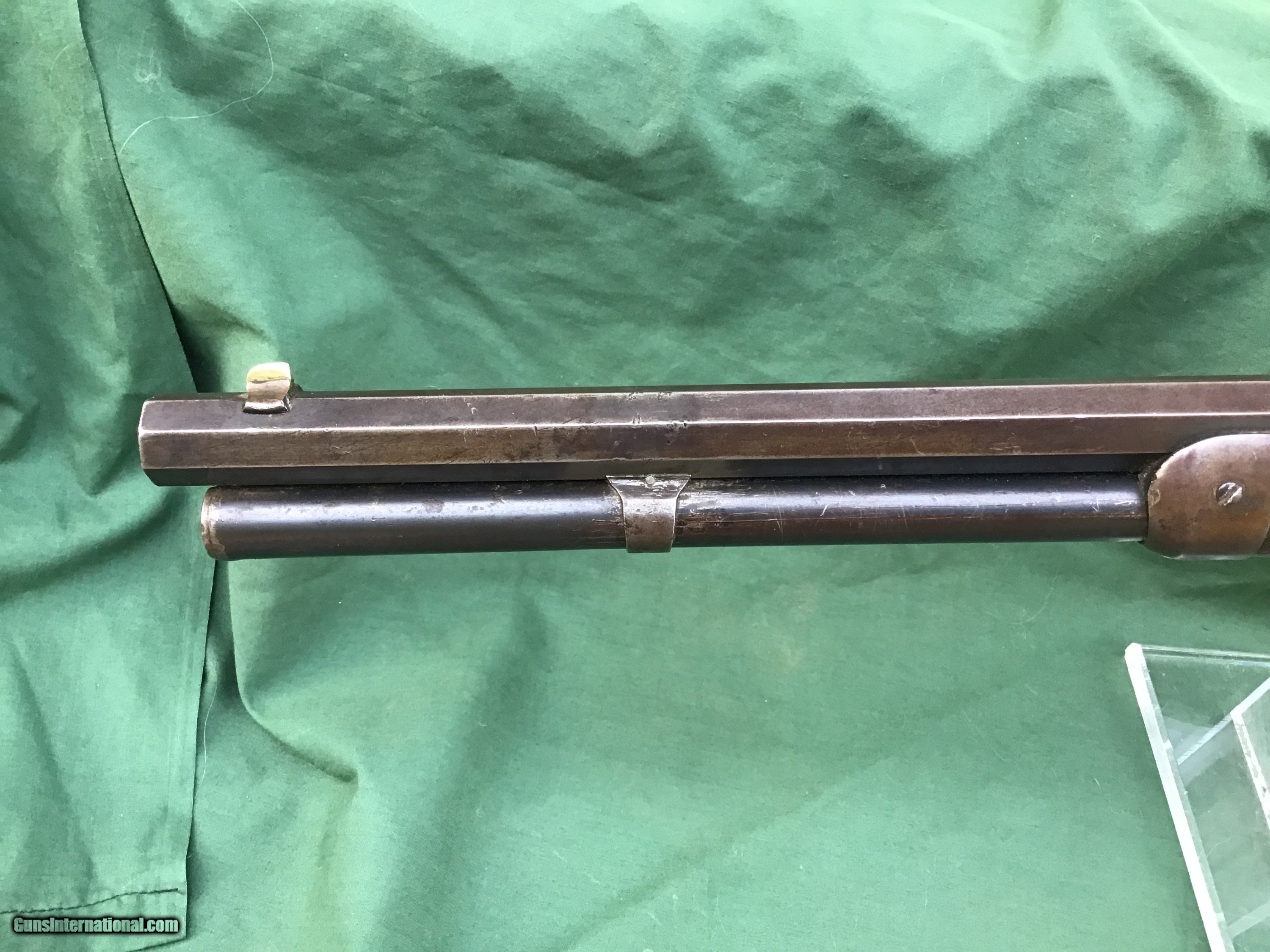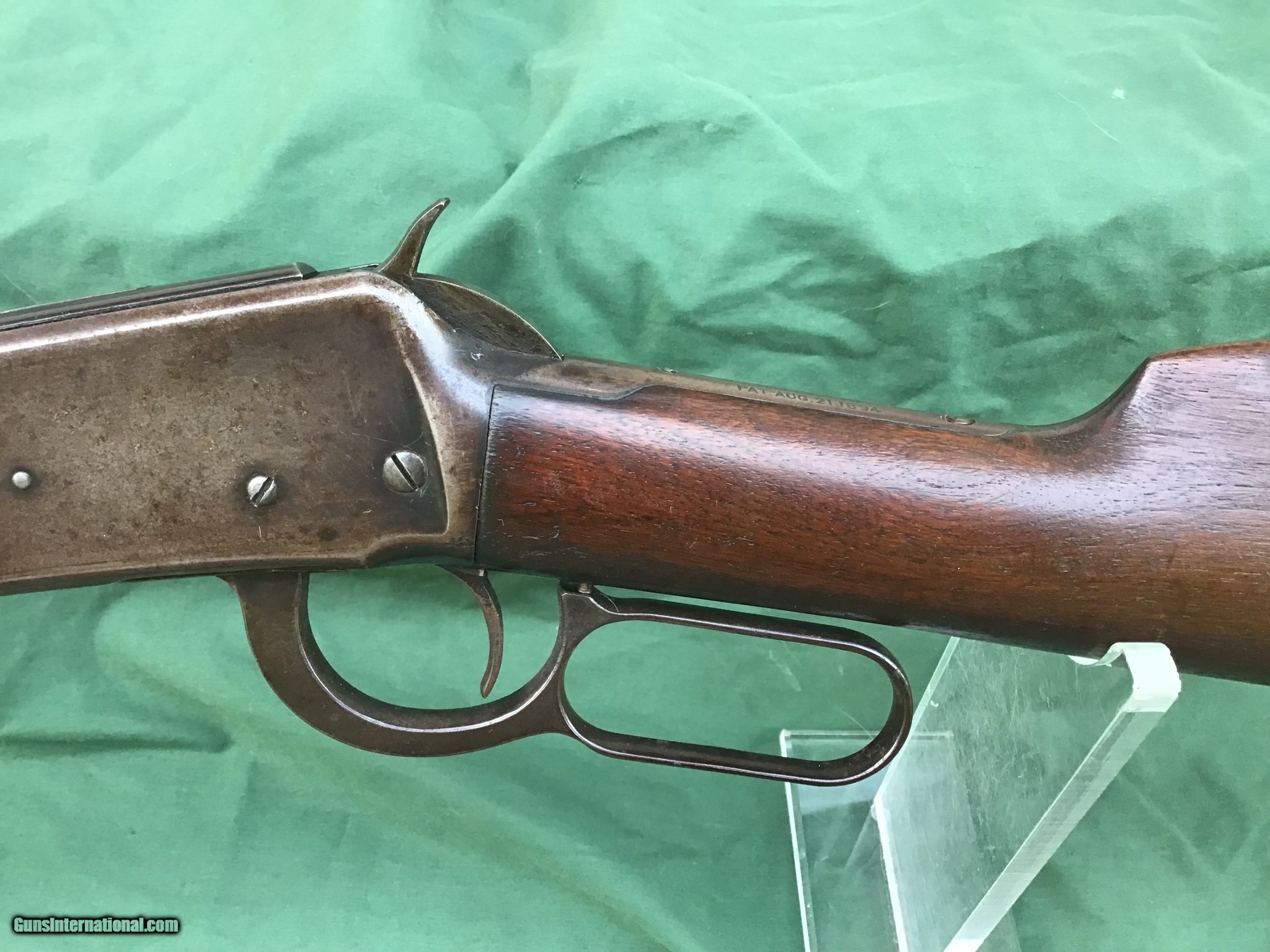 Description: Antique 1894 Winchester manufactured in 1898. .38-55 with 19 1/2" octagon barrel and full magazine tube. I will rate the bore a 5 on a scale from 1 to 10. Barrel and tube retain maybe 10% original blue in protected areas with the remainder a gray / brown patina. Markings are good and action functions nicely. Receiver retains 10-15% original blue with gray / brown patina mixing in. Both forend and buttstock are in good condition but show use. There are dents, scrapes, scratches, and tiny crack in left hand side of forearm. There is also a sliver of wood missing in the right hand side of upper tang (see pics of both). This is a perfect example for a restoration project or use it for parts. It's still a desirable caliber and antique rifle which are more difficult to locate. This firearm as with any other should be checked first by a gunsmith before any attempt is made to fire / operate it. Antique and can be shipped directly to your doorsteps. Please feel free to ask questions. SOLD Antique: Yes |