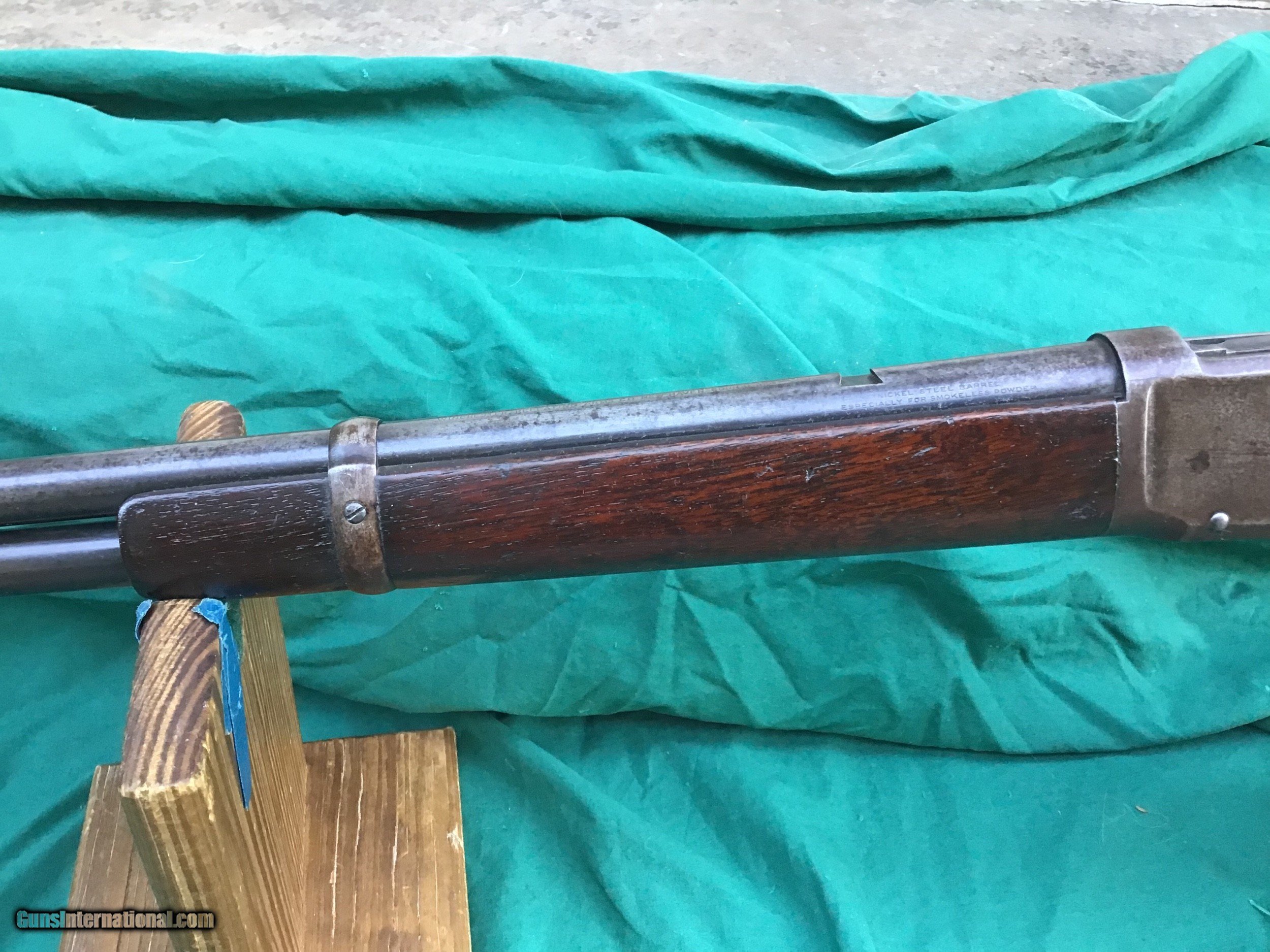 Description: 1894 Winchester Antique Saddle Ring Carbine. Antique 1894 Carbines are tough to come by, especially under the 40,000 range. Serial 38,020 manufactured in 1895. 30 WCF with 20” barrel and full magazine. Very nice bore and great markings. Missing rear sight, it had a tang sight on it at one time. Barrel and magazine are a gray / brown with traces of blue in areas. Receiver is a gray / brown as well. Carbine functions very nicely. Both pieces of wood are in very nice condition and above average. This SRC is an antique and can be shipped directly to your doorsteps. Please feel free to ask questions. This firearm as with any other should be checked first by a gunsmith before any attempt is made to fire it. SOLD Antique: Yes Manufacturer: Winchester Model: 1894 Serial Number: 38,020 Caliber Info: 30 WCF |