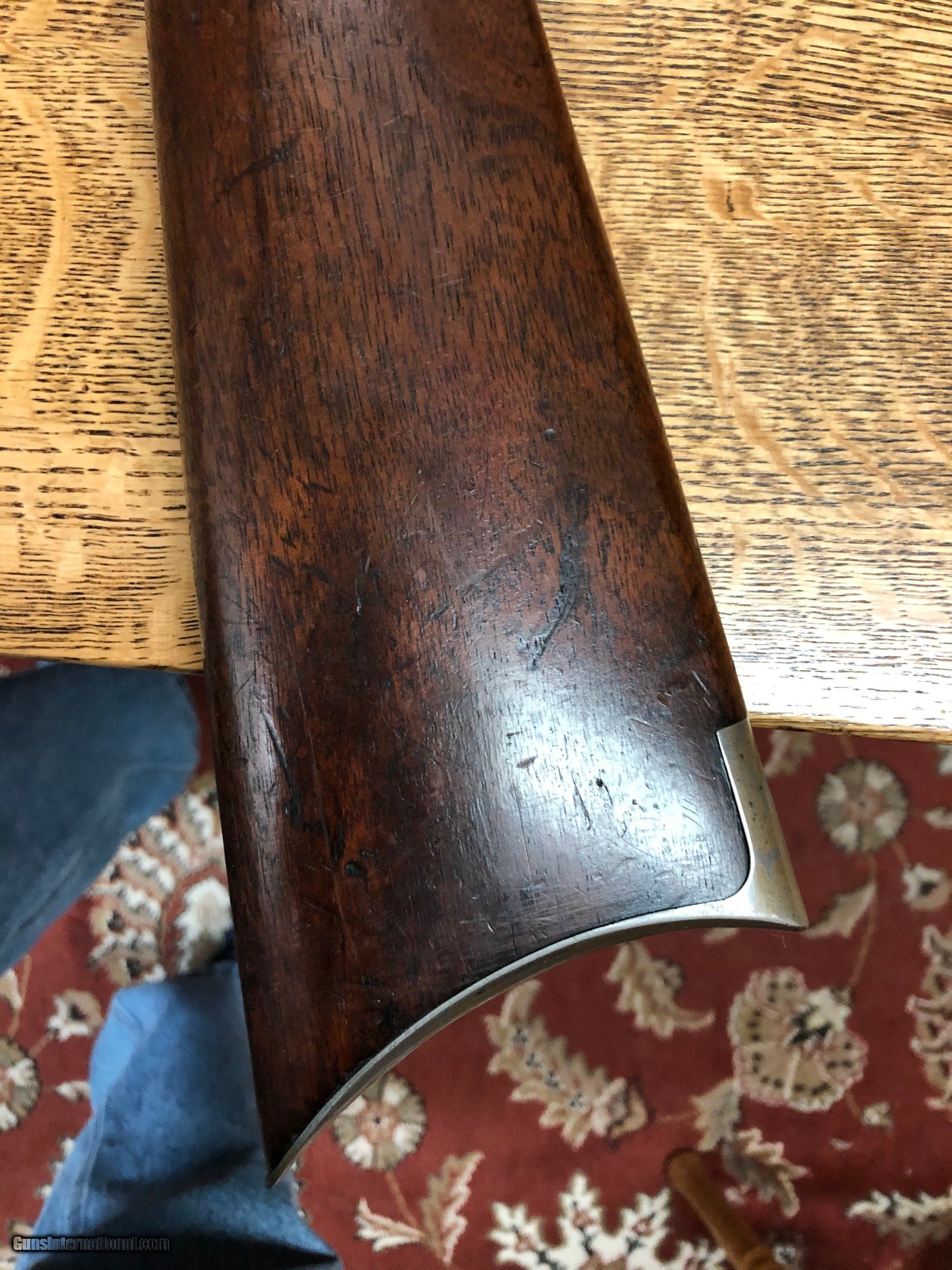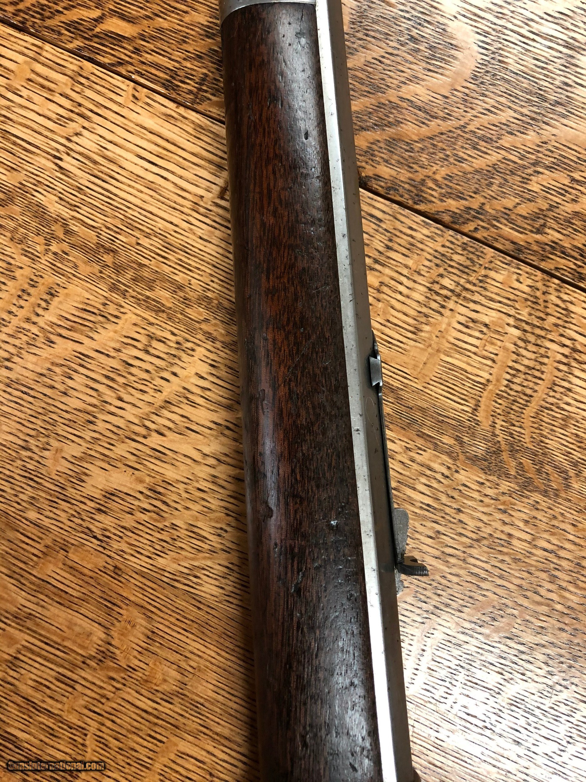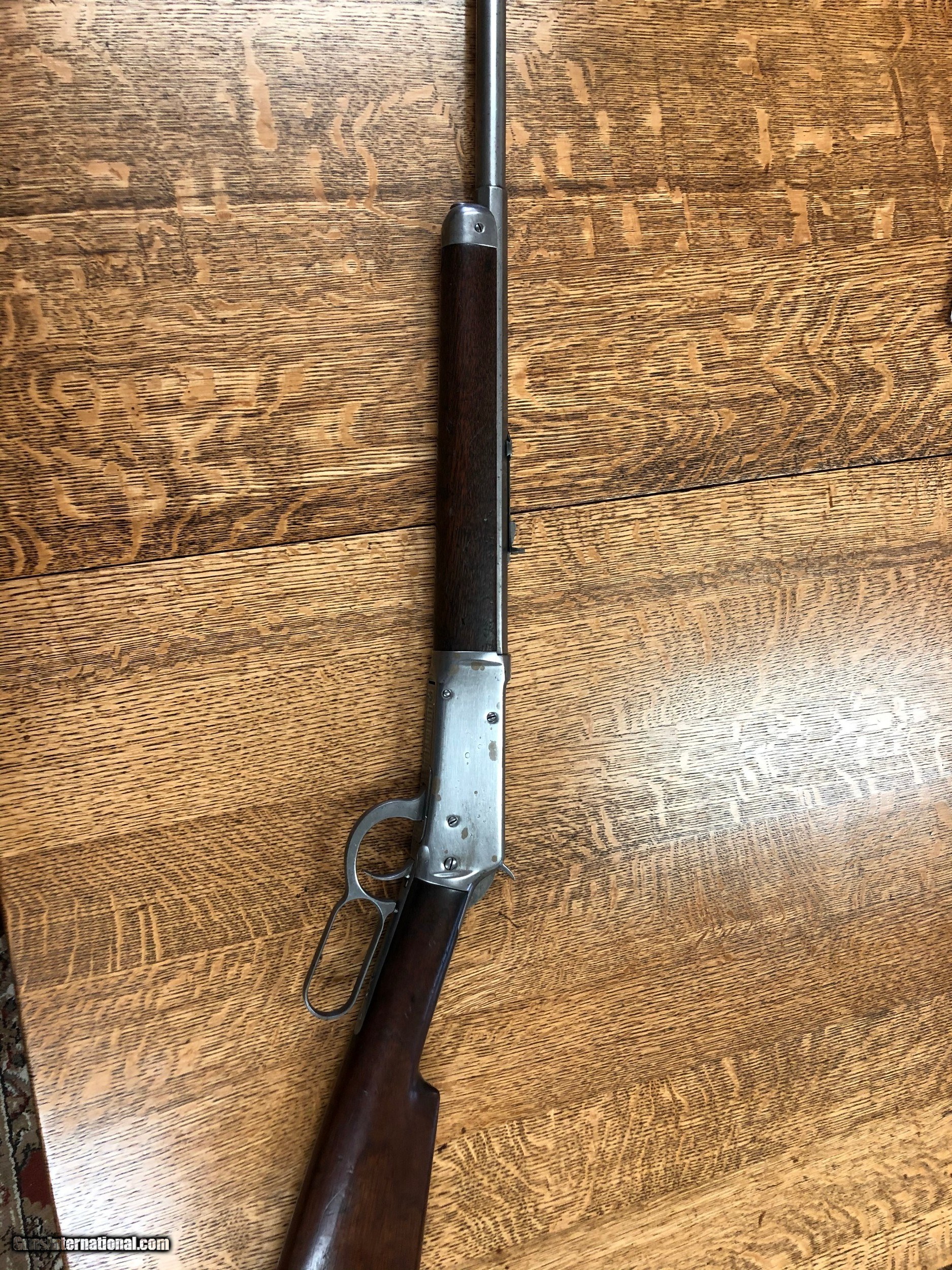 Description: 1894 Winchester rifle 38-55 caliber Serial number #44387, This rifle has a shiny finish, one half octogan barrel and it is exactly the way I purchased it many years ago. The serial number indicates a second year rifle, the bore has pits but strong rifling is still present. The price is $1400.00 or best offer. SOLD Antique: Yes Manufacturer: Winchester 1894 Model: 1894 winchester lever Serial Number: #44387 Caliber Info: 38-55 Condition: good |