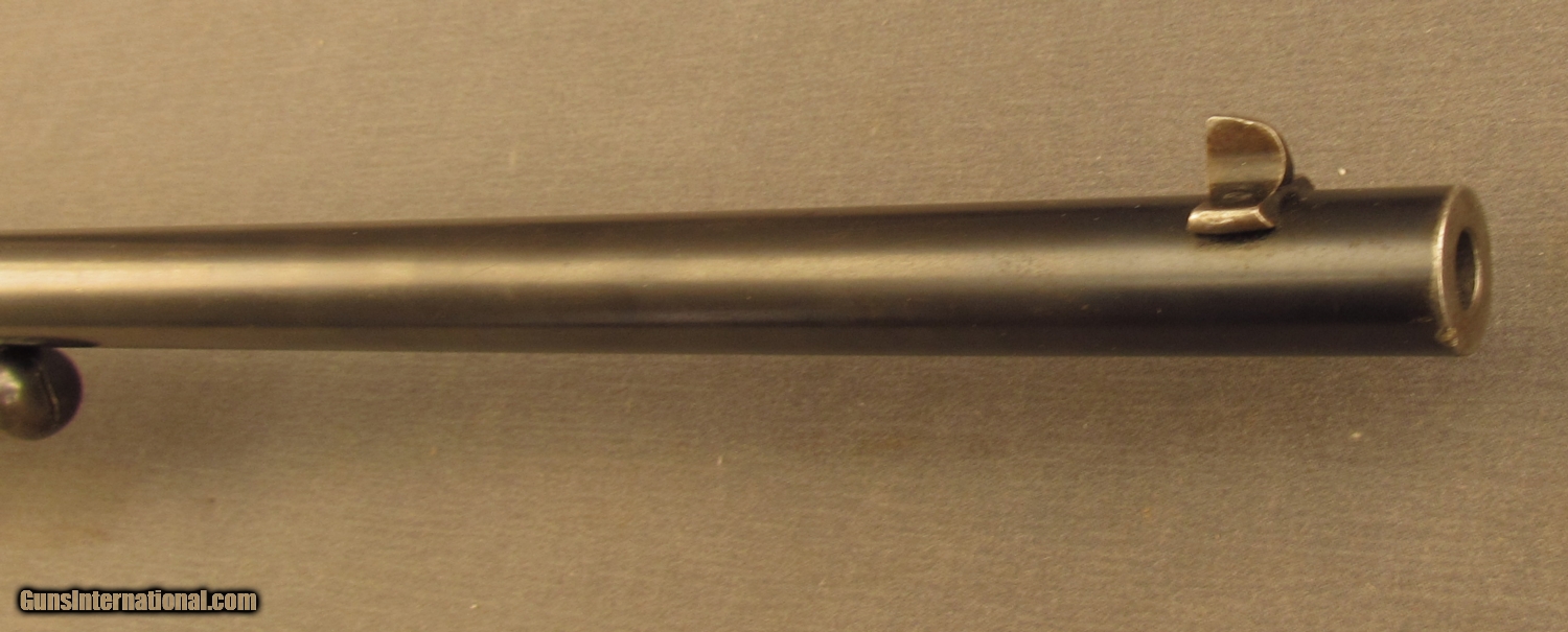 Description: S#888246, 32 WS, 26 inch barrel, very good bore with strong rifling and light even erosion throughout. This 1921 built rifle features a 2/3 magazine (16 inches long) and remains in very good condition with 80% blue on barrel and mag tube. Receiver has flaked to bright and now shows a developing grey-brown patina. A small grind mark shows on receiver ring and an couple small notches are filed in sides of top tang. These are quite small. Wood fits well and shows typical marks. A repaired crack shows on left side of top tang and a little oil was wiped on long ago. Rifle wears original sights, rear elevator is a replacement. An attractive 1894 with 2/3 magazine. FFL or C+R SOLD Curio/Relic: Yes Manufacturer: Winchester Model: 1894 Serial Number: 888246 Caliber Info: .32 WS Gauge Info: .32 WS |