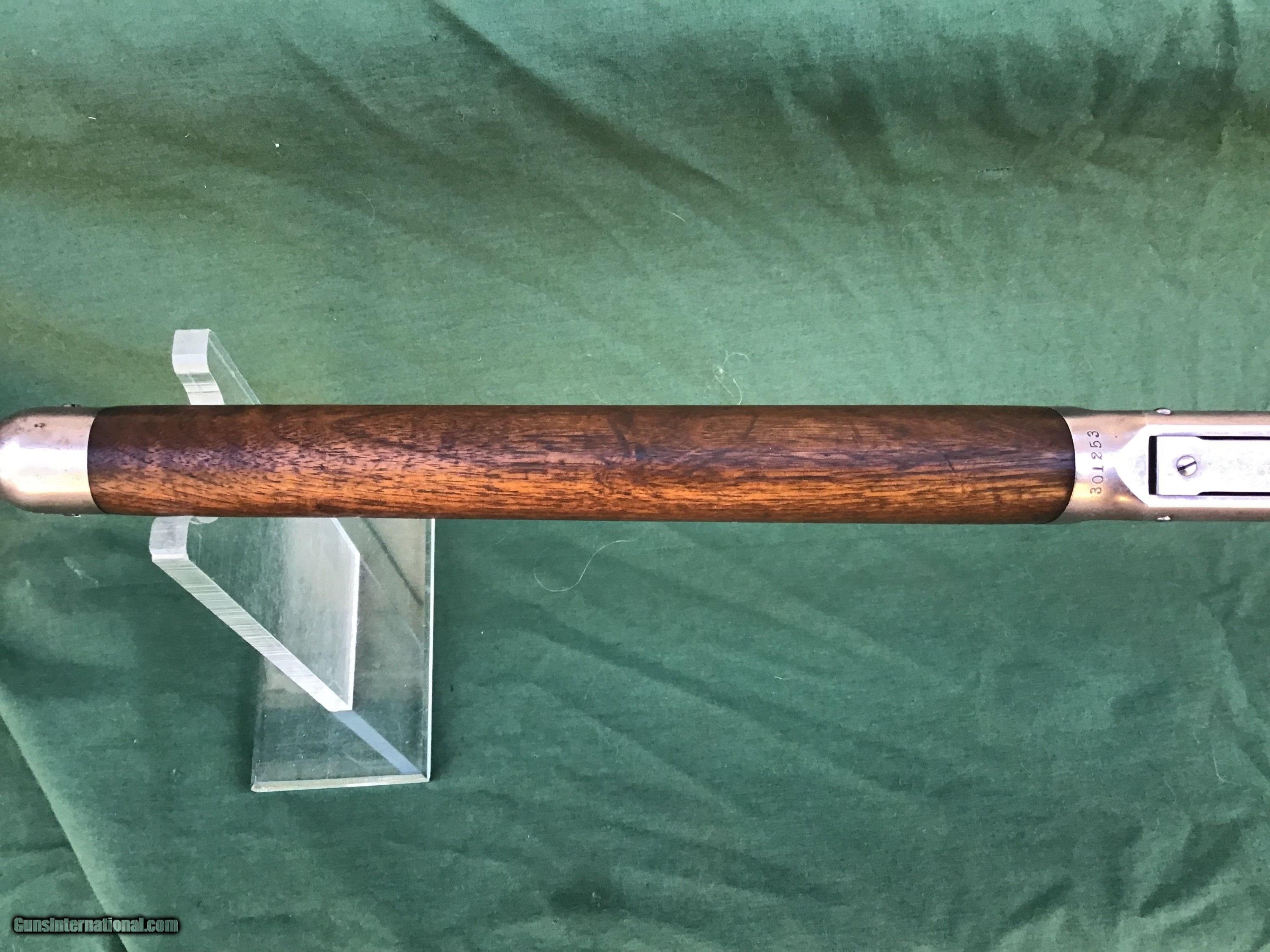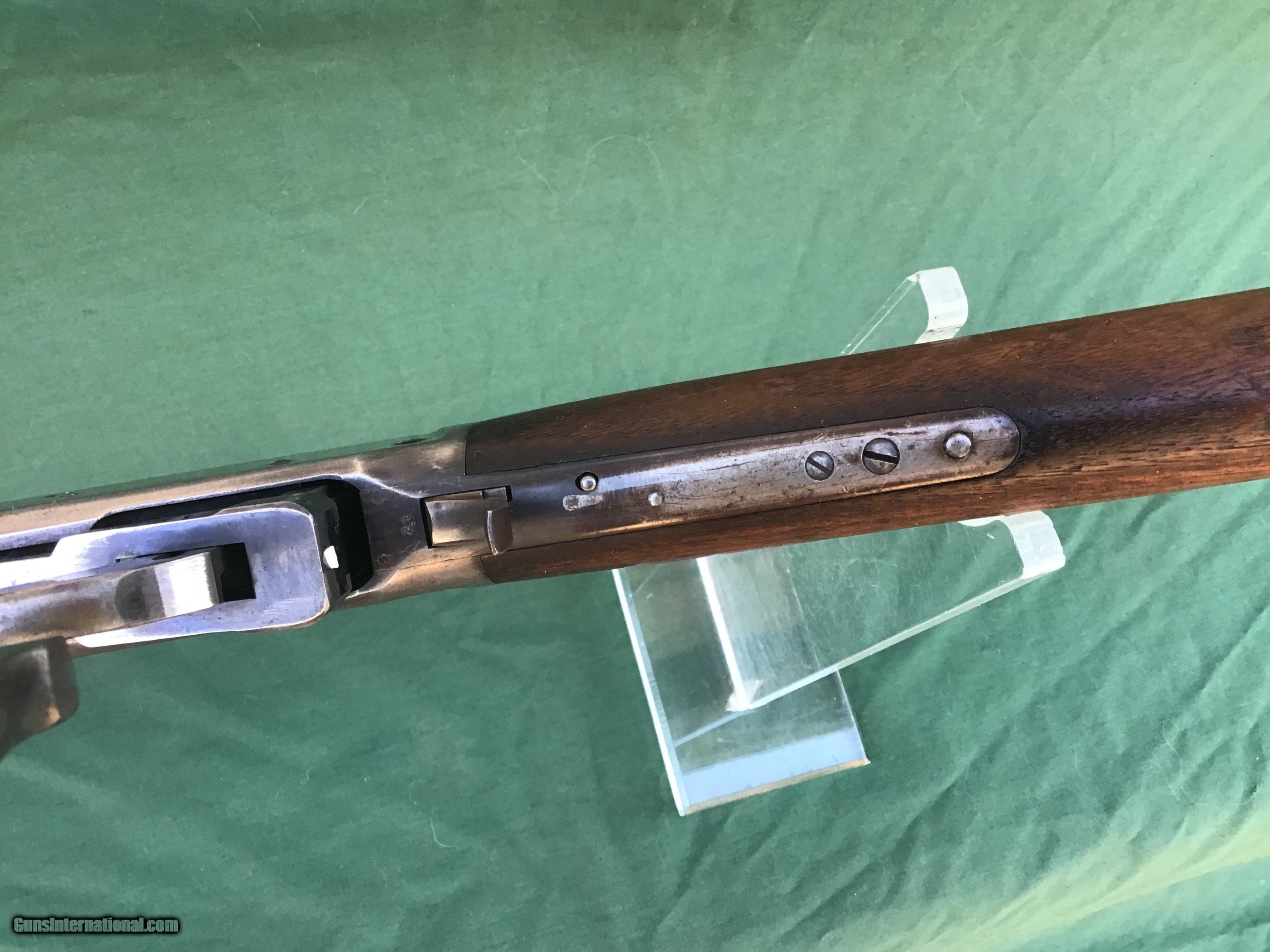 Description: 1894 Winchester Rifle in 38-55 manufactured in 1904. 26" round barrel and full magazine tube retain 70-75% of their original blue. Nice bore, I will rate it a 7.5 on a scale from 1 to 10. Receiver retains 60 to 65% original blue. All screws head slots are in above average condition. Very nice markings. Action functions smoothly. There are traces of case colors present on lever / hammer. Both pieces of wood are in good condition. Forend and buttstock are dry looking but just need some tlc. A well above average 1894 Winchester Rifle in a great caliber. Must ship to a FFL or Curio and Relics license holder. Please feel free to ask questions. This firearm as with any other should be checked first by a gunsmith before any attempt is made to fire / operate it. SOLD Curio/Relic: Yes |