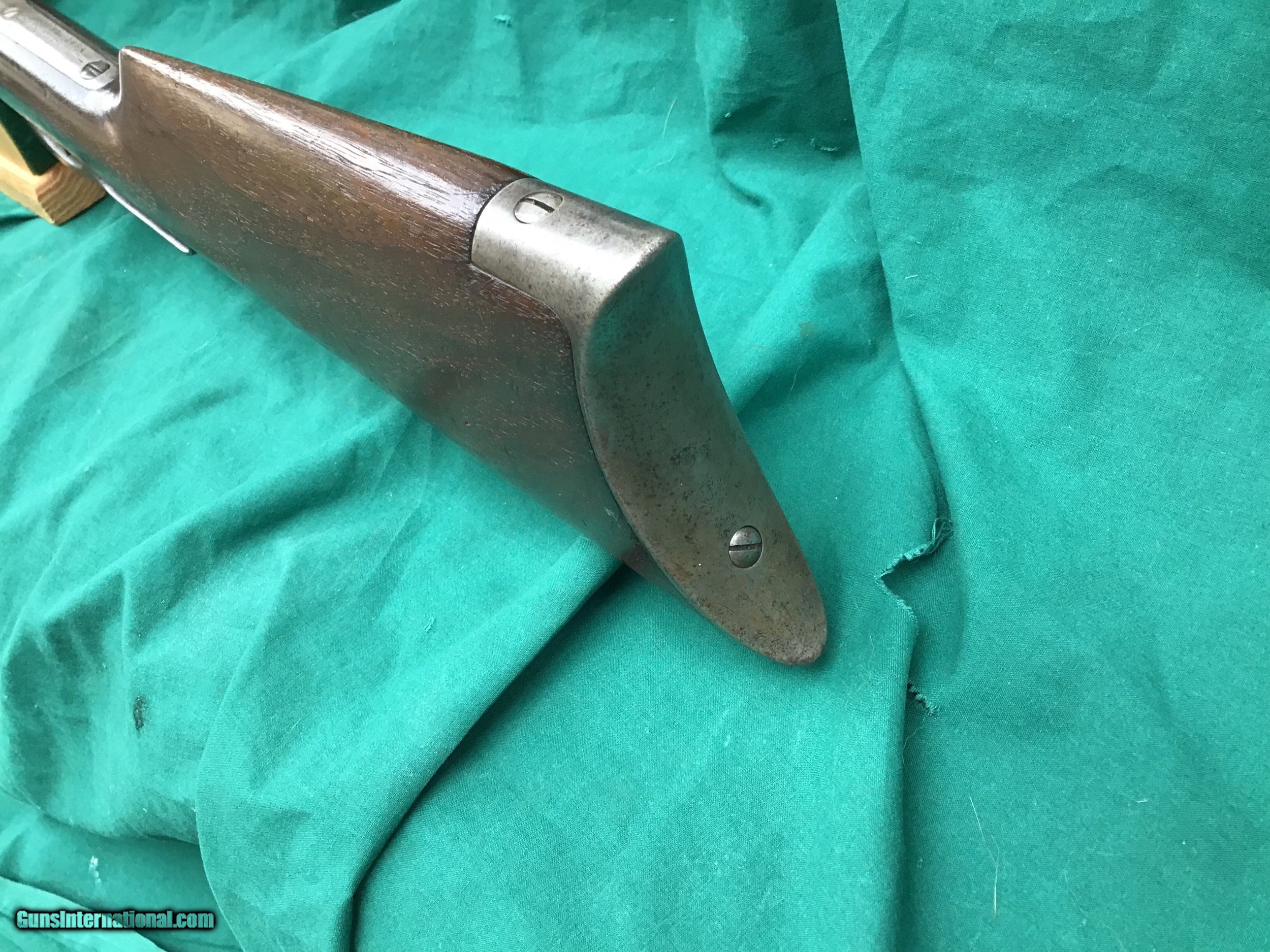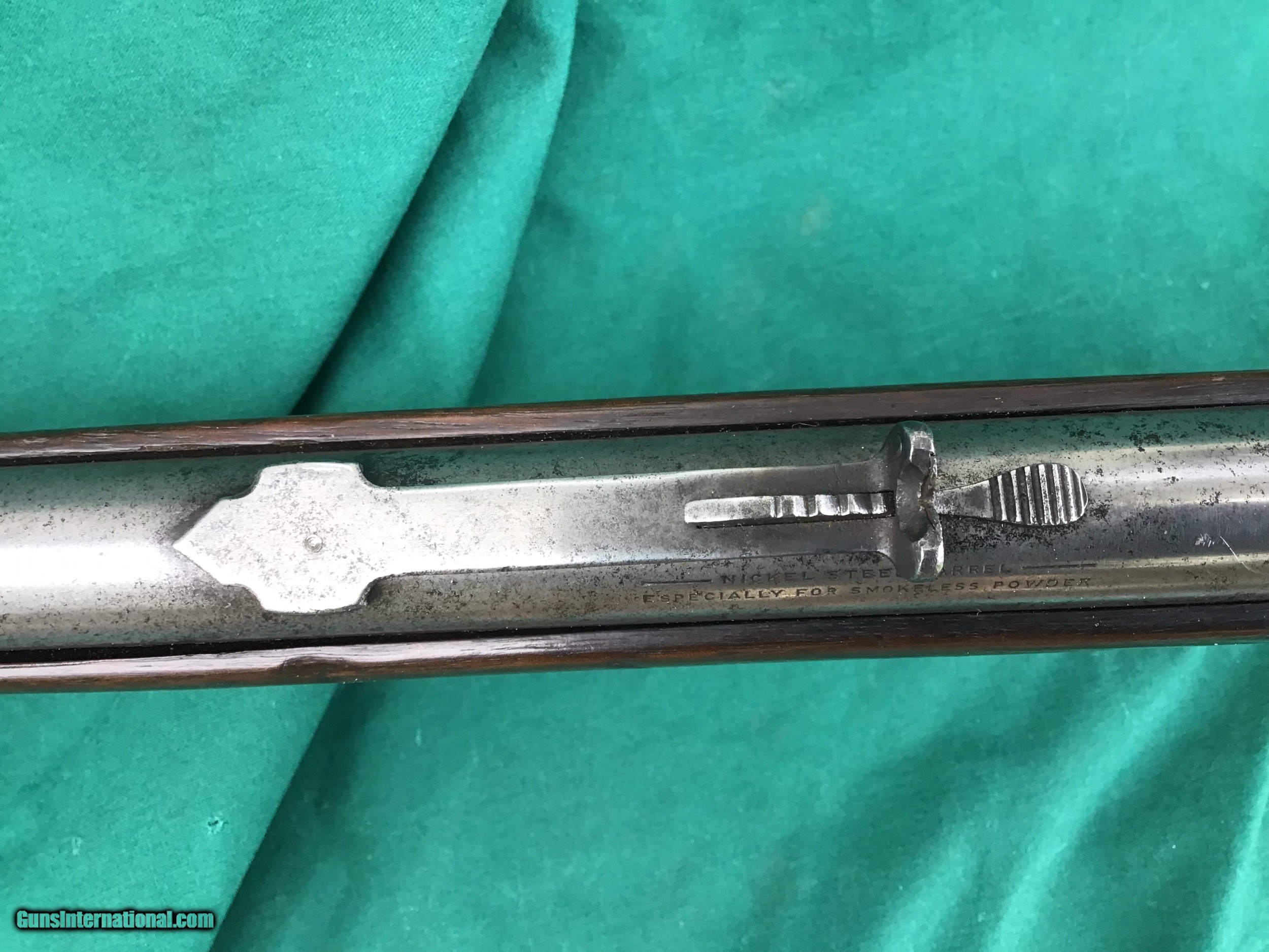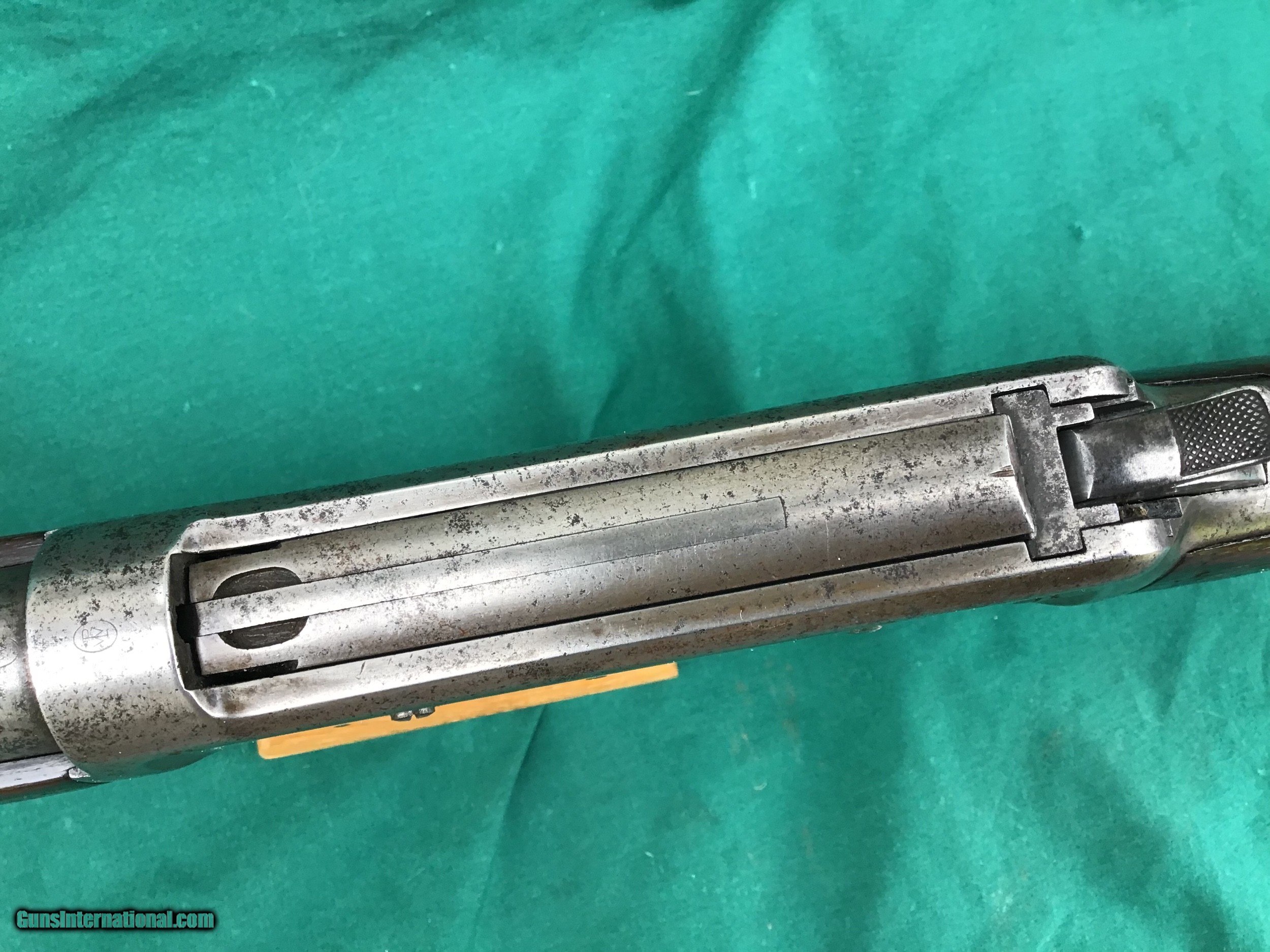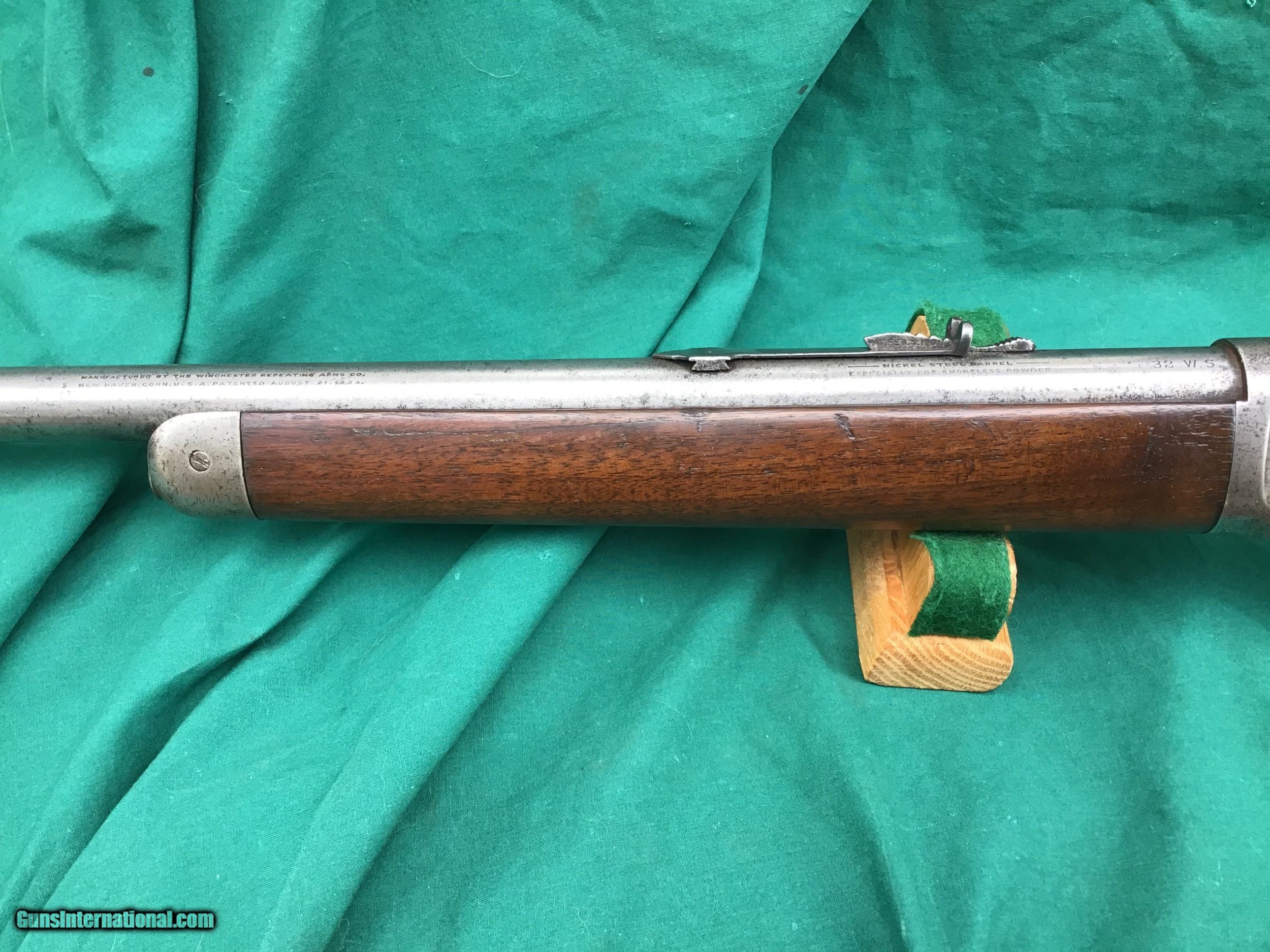 Description: SALE PENDING 1894 Winchester Rifle with Special Ordered 1/2 magazine. 32 SPL with 26” round barrel. Correct and original front and rear sights. Good markings. I will rate the bore a 6 on a scale from 1 to 10. Both forend and buttstock are in fair condition. The forend appears to have a tiny crack (see pic). Overall metal condition is a gray patina. Action functions nicely. All original parts. All in all a decent old Winchester offered at a reasonable price. Serial number 492,847 manufactured in 1909. Must ship to a FFL or Curio and Relics license holder. This firearm as with any other should be checked first by a gunsmith before any attempt is made to fire / operate it. SOLD Curio/Relic: Yes |