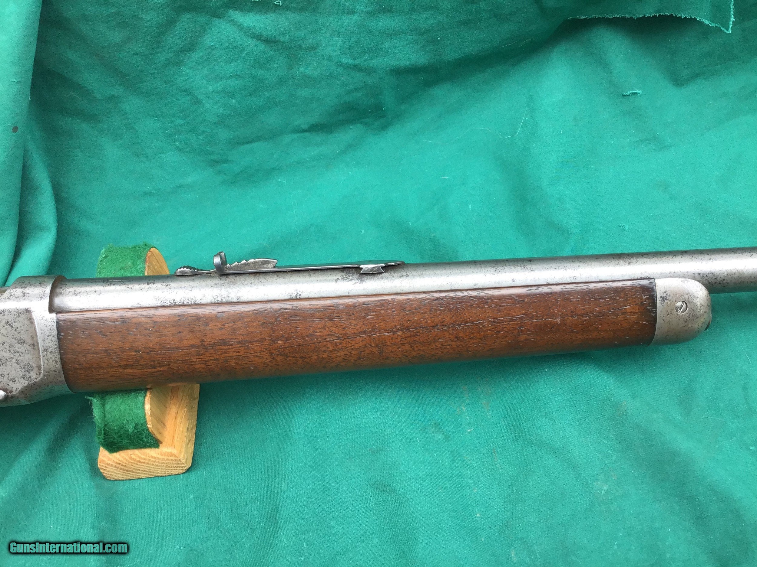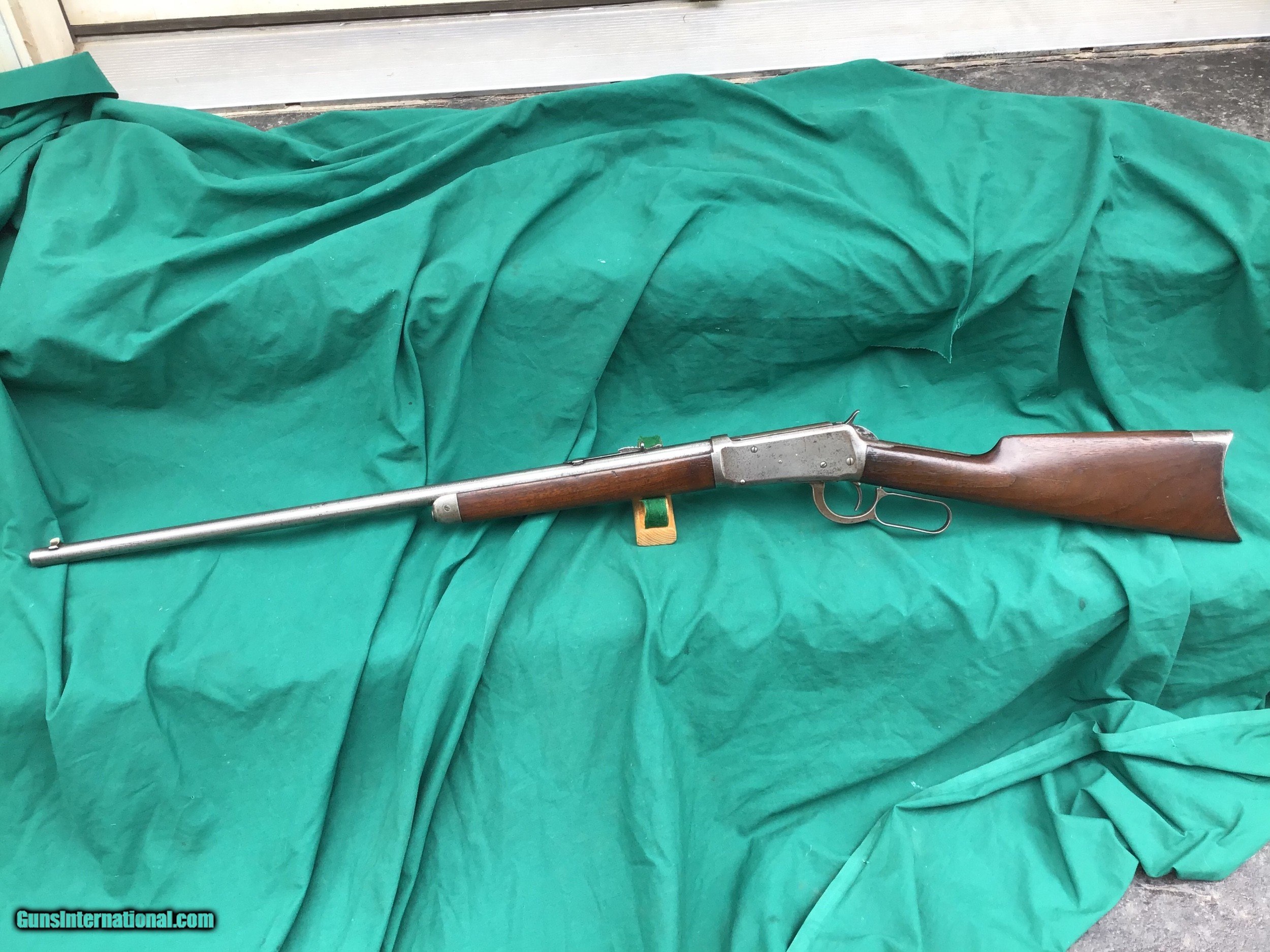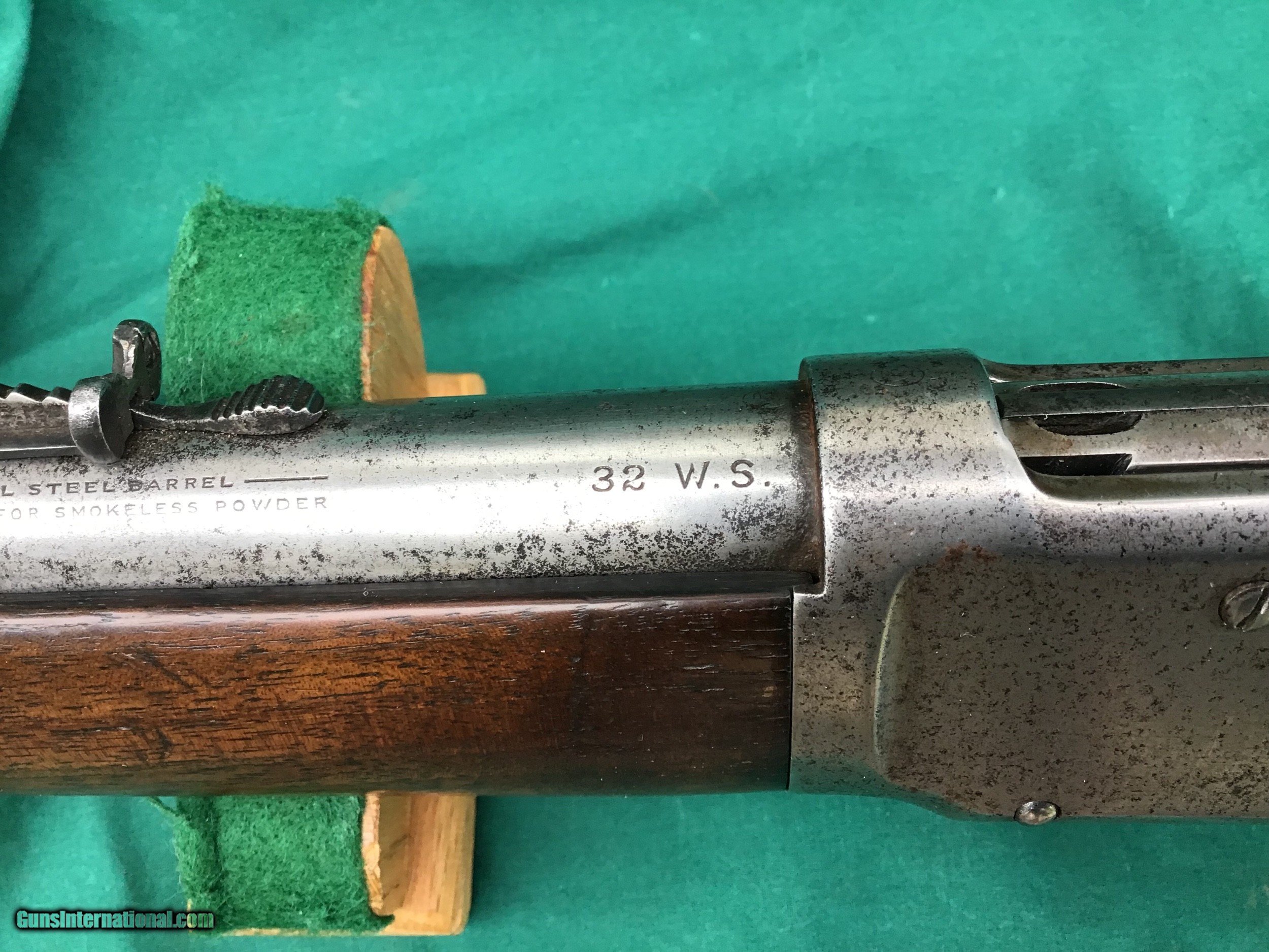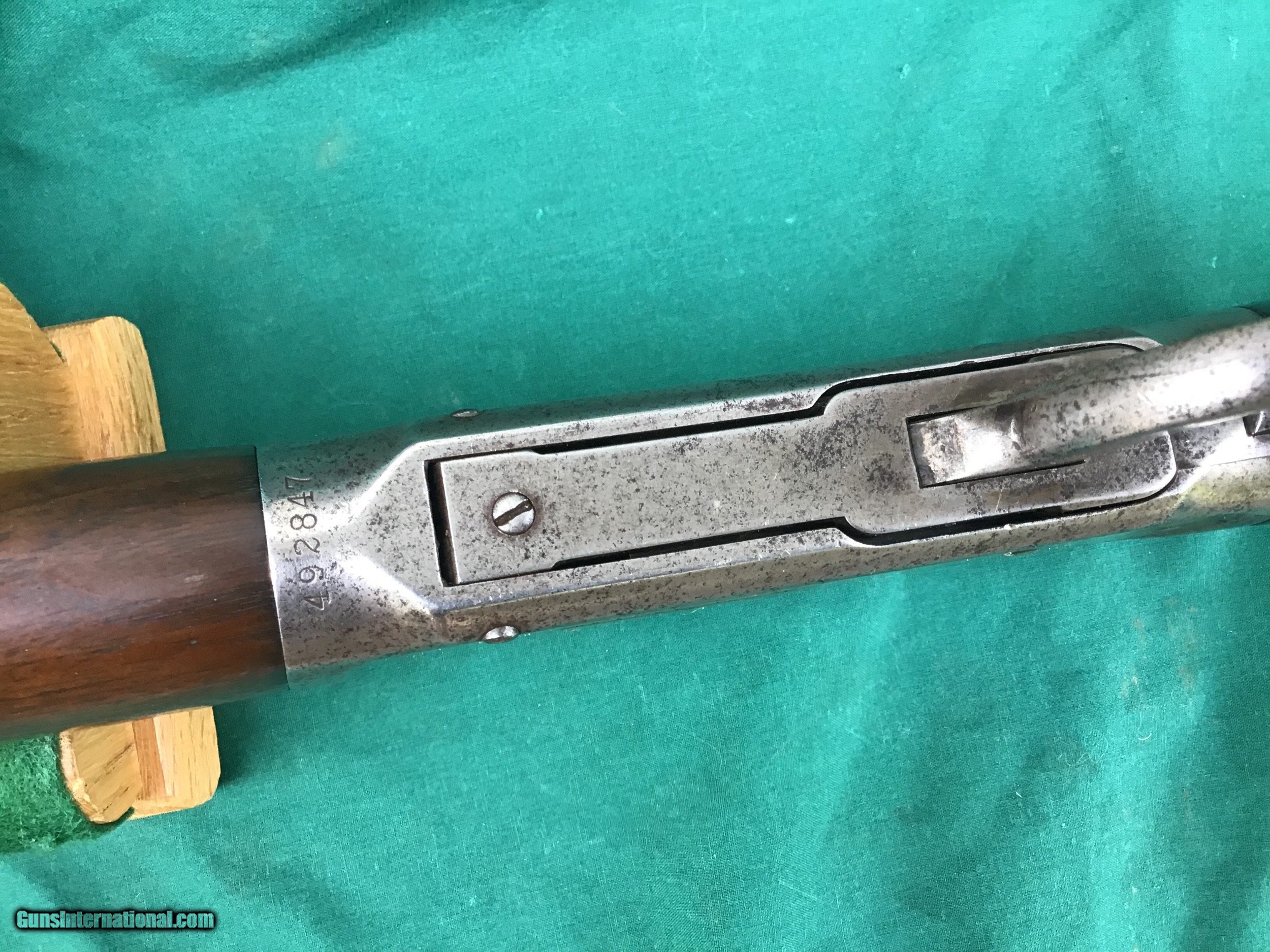 Description: SALE PENDING 1894 Winchester Rifle with Special Ordered 1/2 magazine. 32 SPL with 26” round barrel. Correct and original front and rear sights. Good markings. I will rate the bore a 6 on a scale from 1 to 10. Both forend and buttstock are in fair condition. The forend appears to have a tiny crack (see pic). Overall metal condition is a gray patina. Action functions nicely. All original parts. All in all a decent old Winchester offered at a reasonable price. Serial number 492,847 manufactured in 1909. Must ship to a FFL or Curio and Relics license holder. This firearm as with any other should be checked first by a gunsmith before any attempt is made to fire / operate it. SOLD Curio/Relic: Yes |