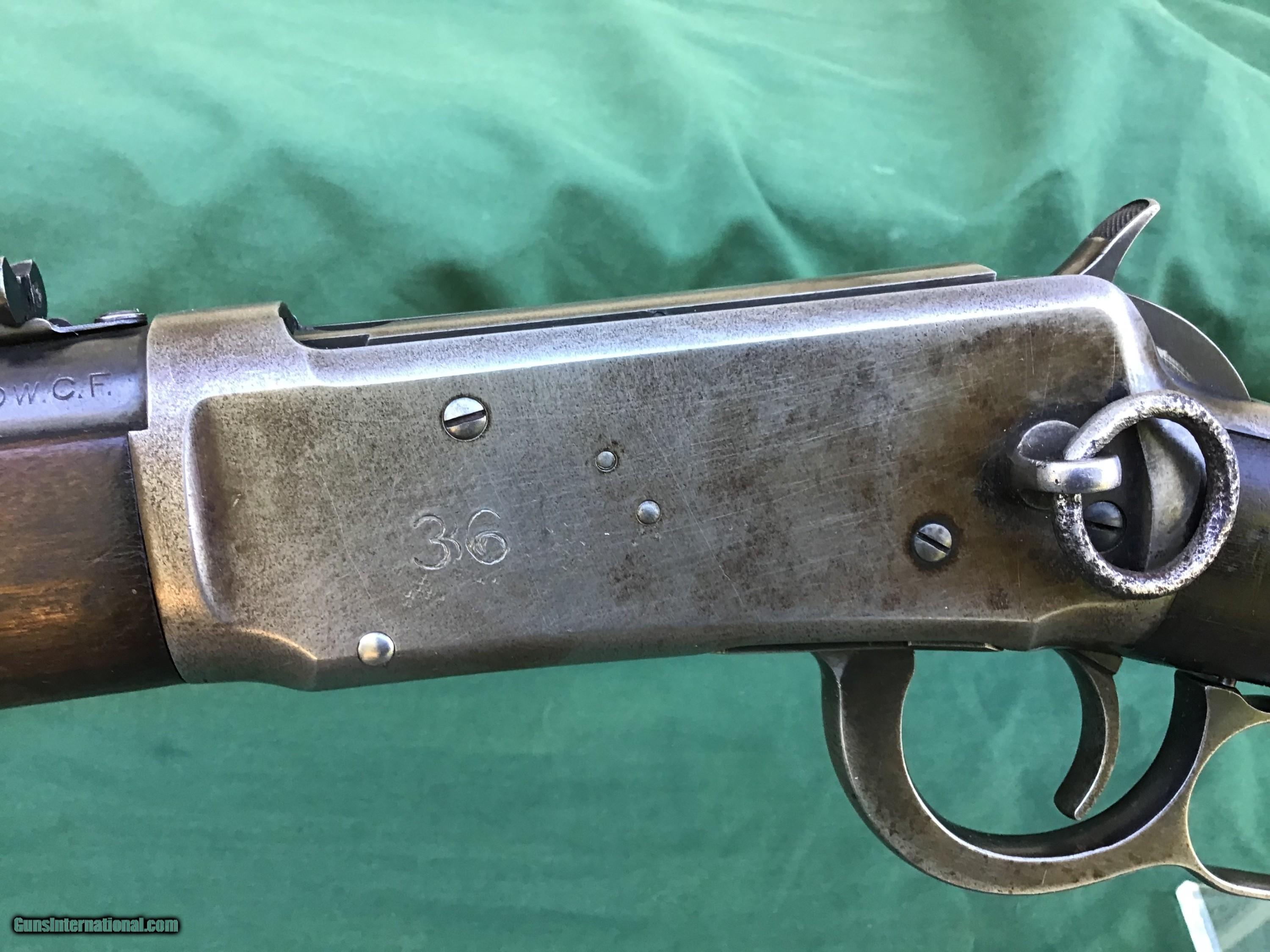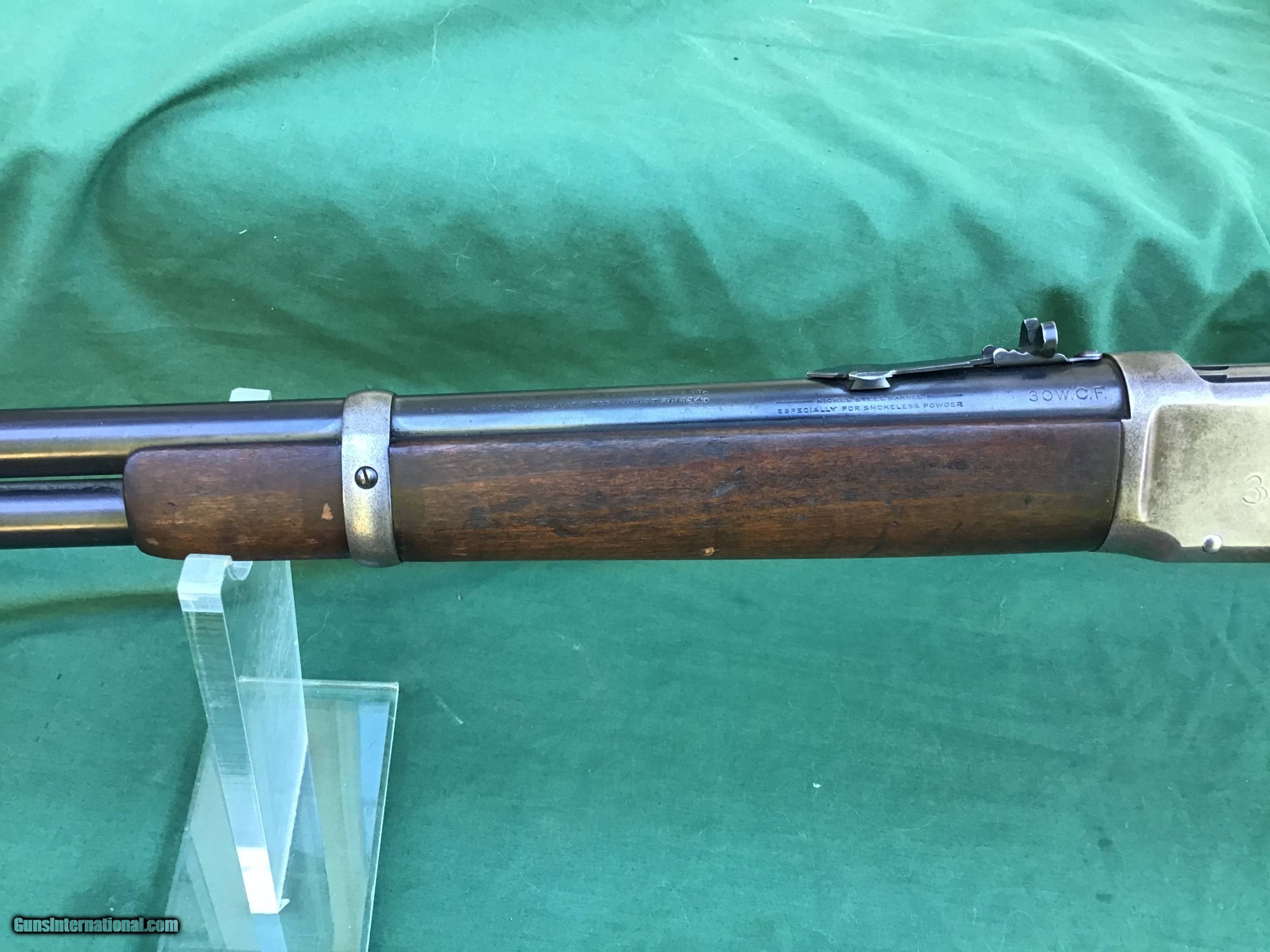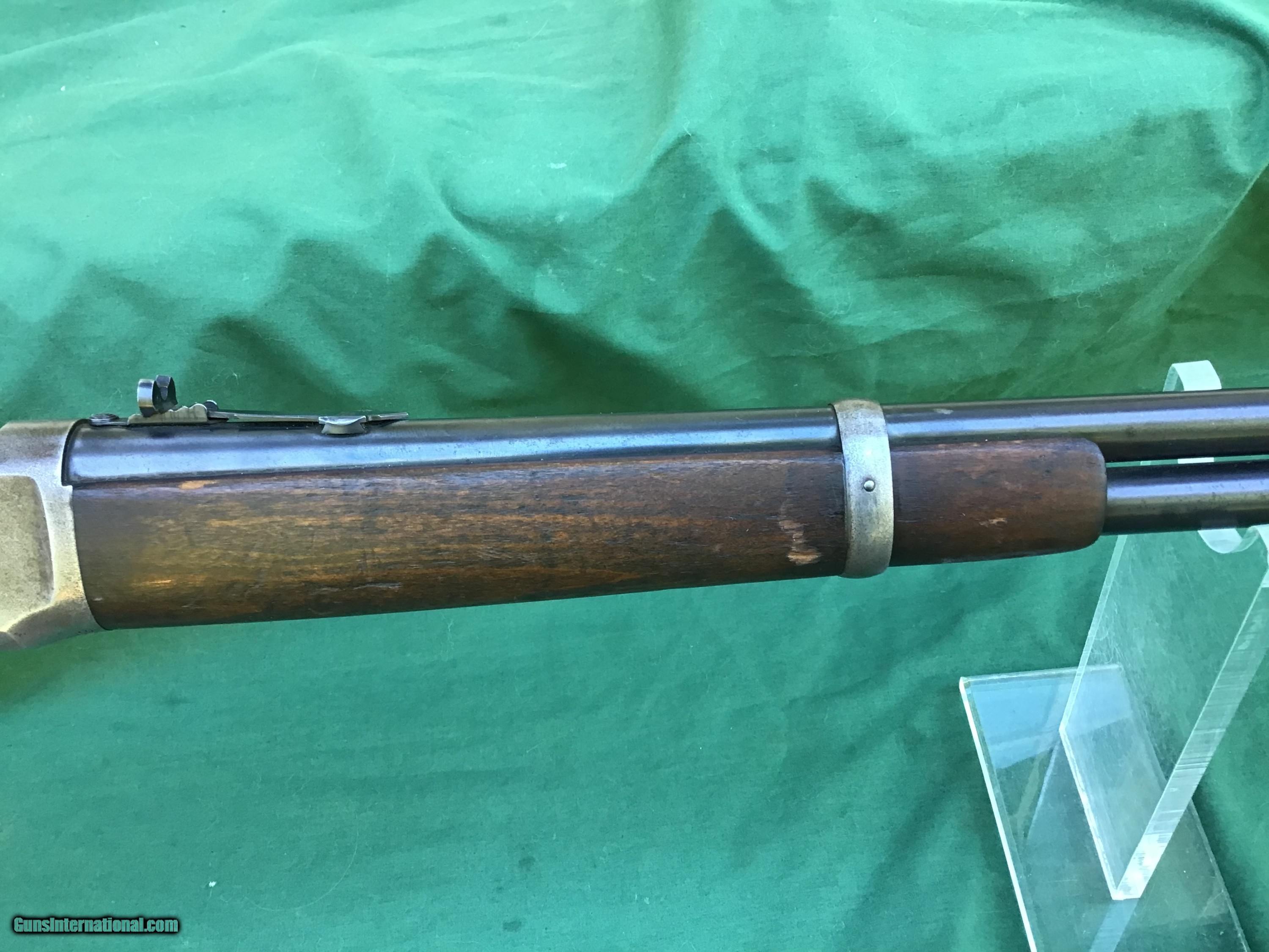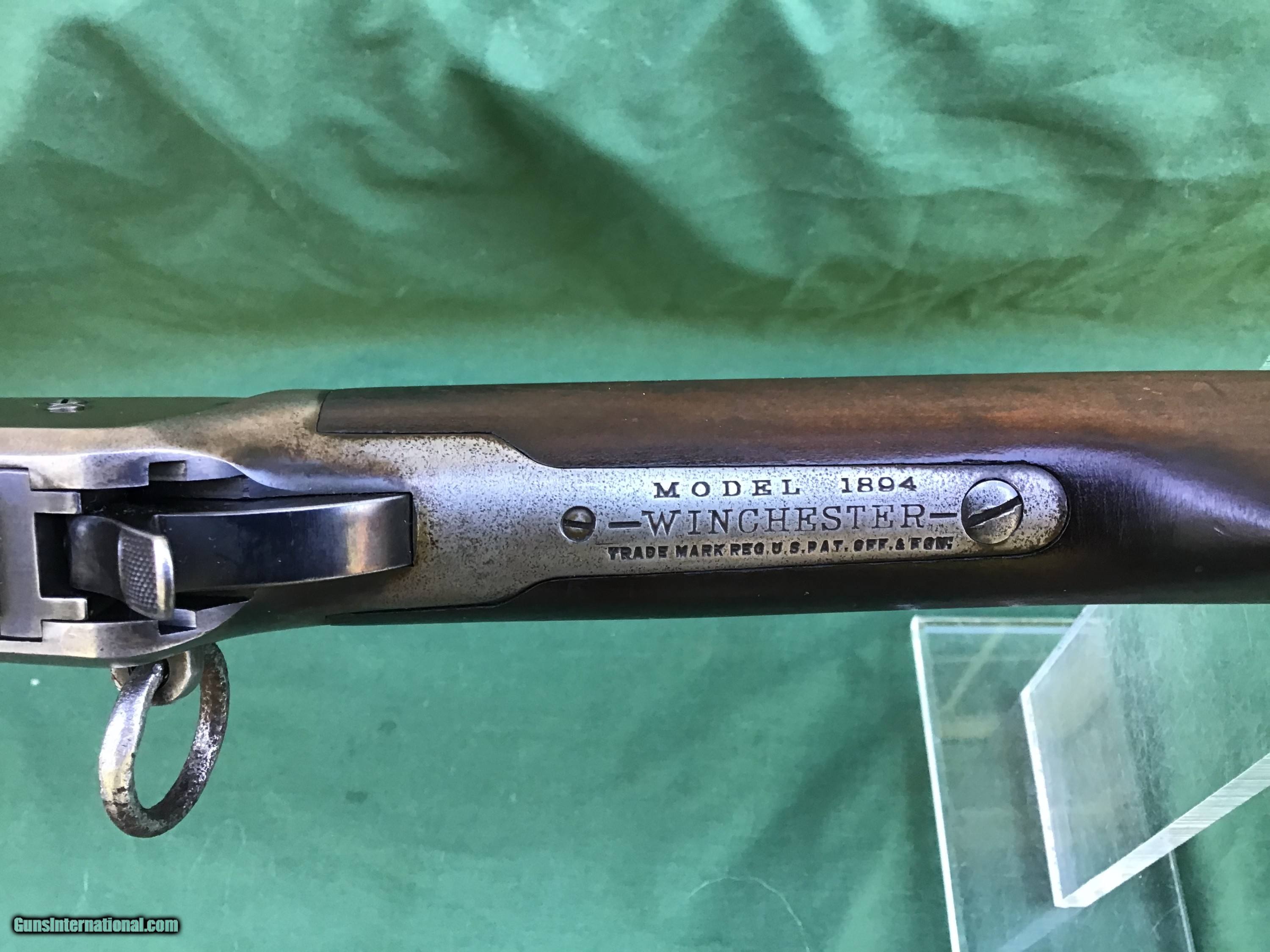 Description: 1894 Winchester Saddle Ring Carbine in .30 WCF. Manufactured in 1917. 20" barrel and full magazine tube retain 80 to 85% of their original blue. Nice bore which I will rate a 8 on a scale from 1 to 10. Receiver is a nice gray / brown patina. Rack number 36 is stamped on left side of receiver (police gun or security agency)? Action functions smoothly. Both forend and buttstock are in good condition showing the normal handling marks you would expect to see from a gun of this vintage. Must ship to a FFL or Curio and Relics license dealer. This firearm as well as any other should be checked first before any attempt is made to fire / operate it. Please feel free to ask questions. SOLD Curio/Relic: Yes |