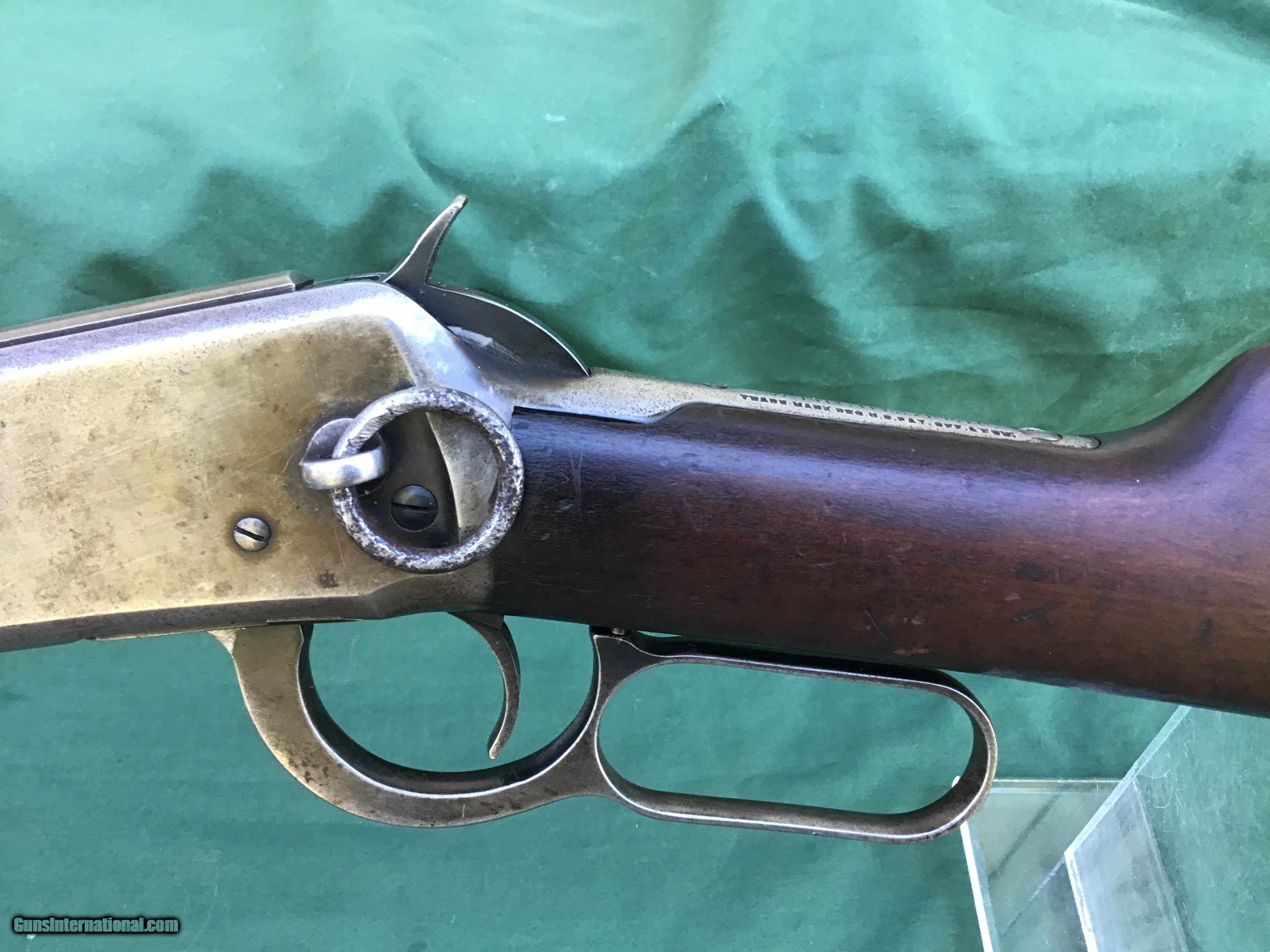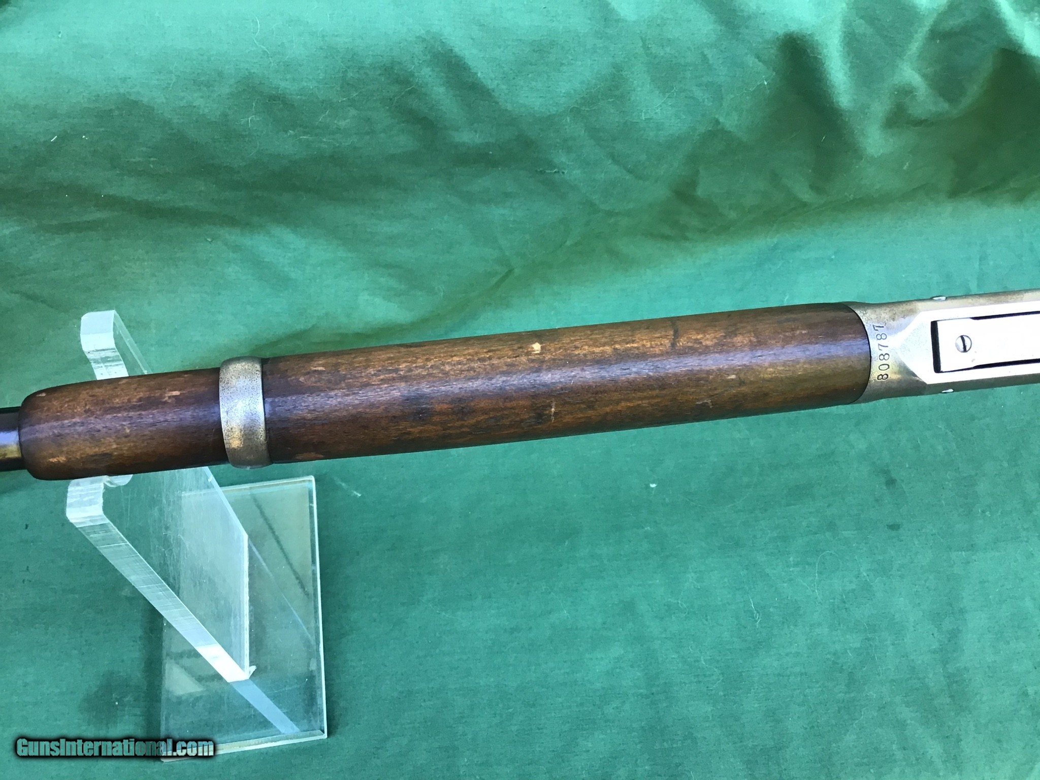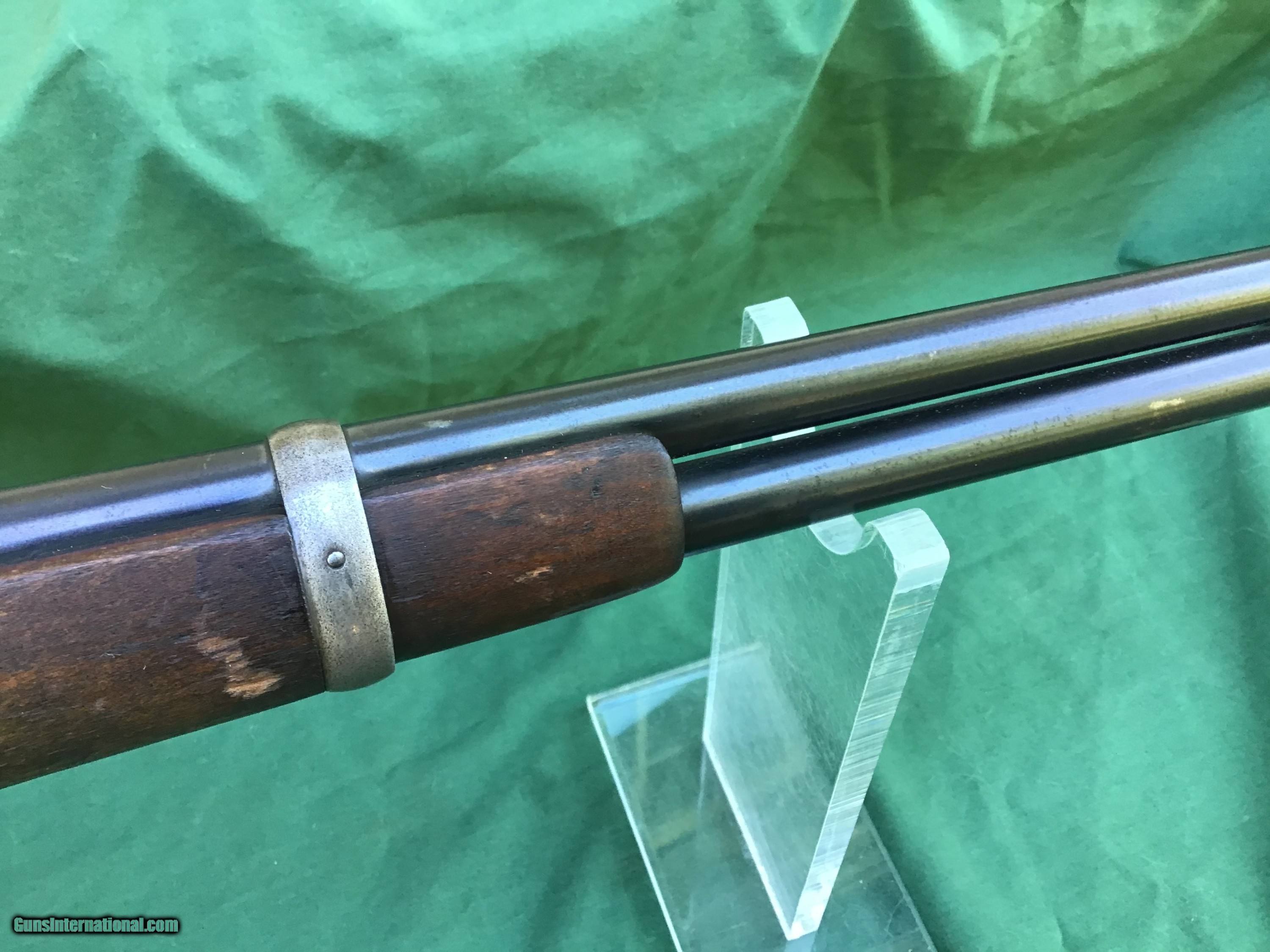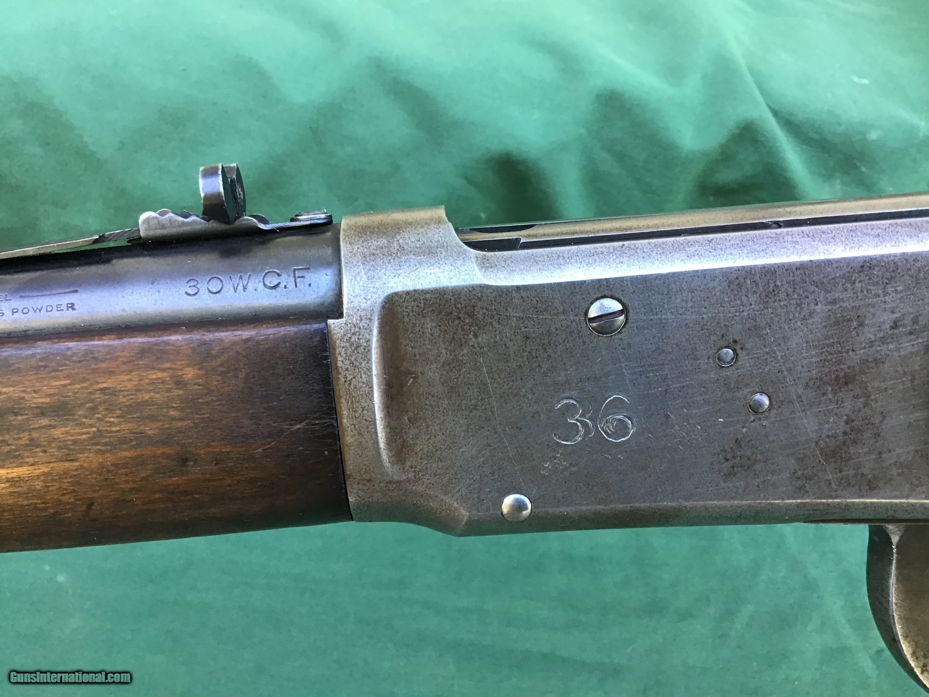 Description: 1894 Winchester Saddle Ring Carbine in .30 WCF. Manufactured in 1917. 20" barrel and full magazine tube retain 80 to 85% of their original blue. Nice bore which I will rate a 8 on a scale from 1 to 10. Receiver is a nice gray / brown patina. Rack number 36 is stamped on left side of receiver (police gun or security agency)? Action functions smoothly. Both forend and buttstock are in good condition showing the normal handling marks you would expect to see from a gun of this vintage. Must ship to a FFL or Curio and Relics license dealer. This firearm as well as any other should be checked first before any attempt is made to fire / operate it. Please feel free to ask questions. SOLD Curio/Relic: Yes |