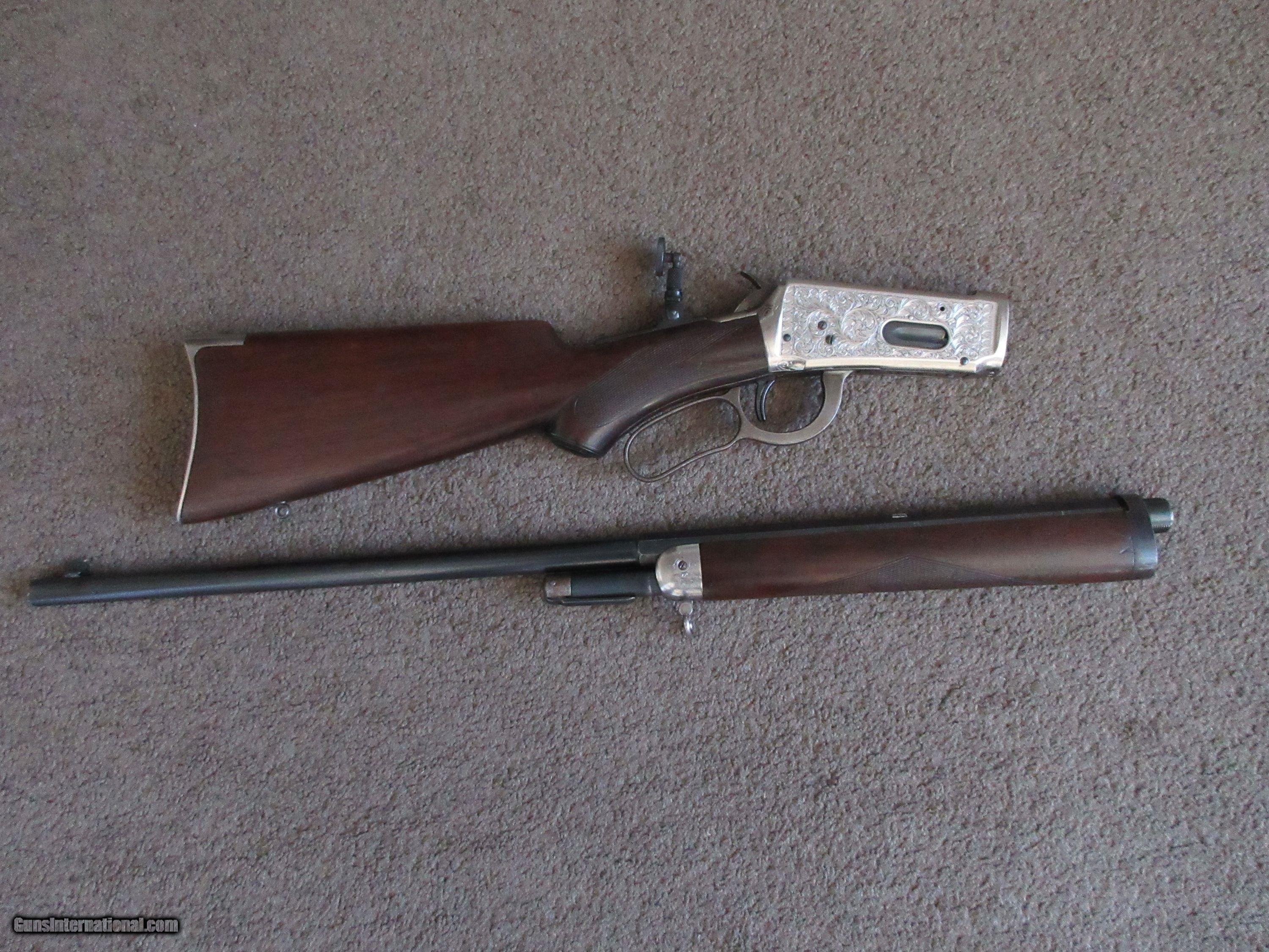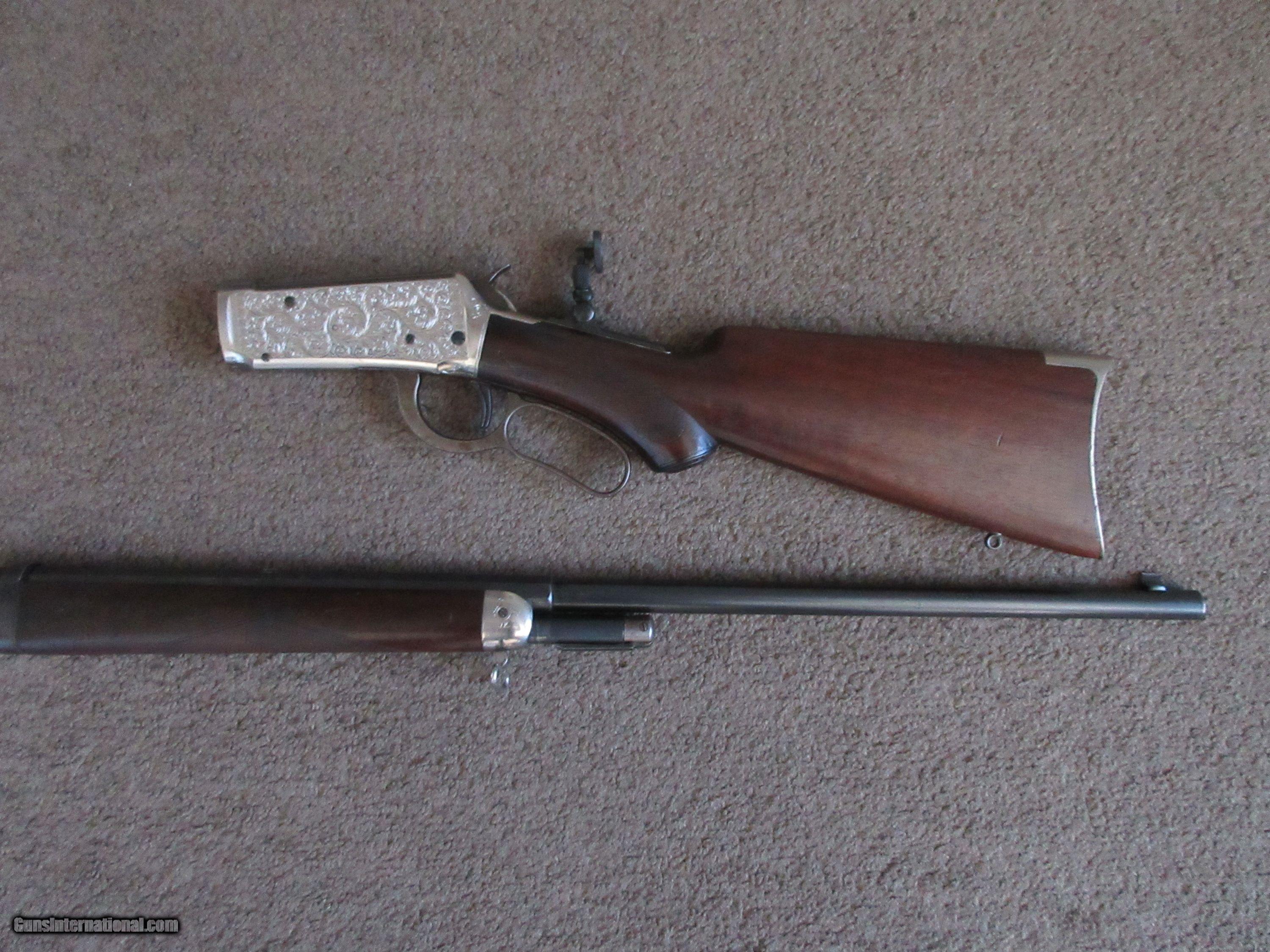 Description: 1894 factory engraved, nickel trim, takedown, half-octagon half-round, pistol grip,double set triggers, gun is in 85-90%+, perfect shiny bore, absolutely tight SOLD Curio/Relic: Yes Manufacturer: winchester Model: 1894 |