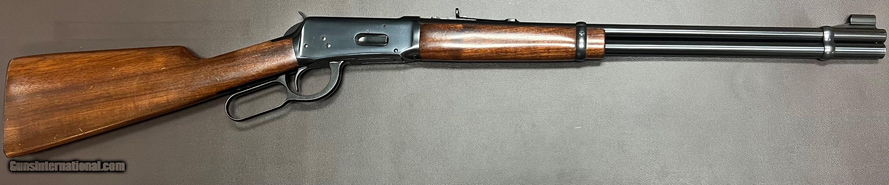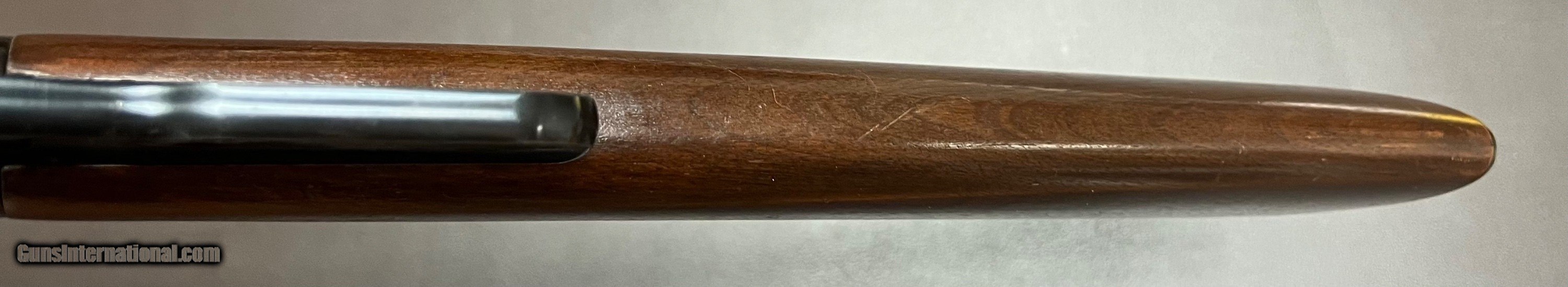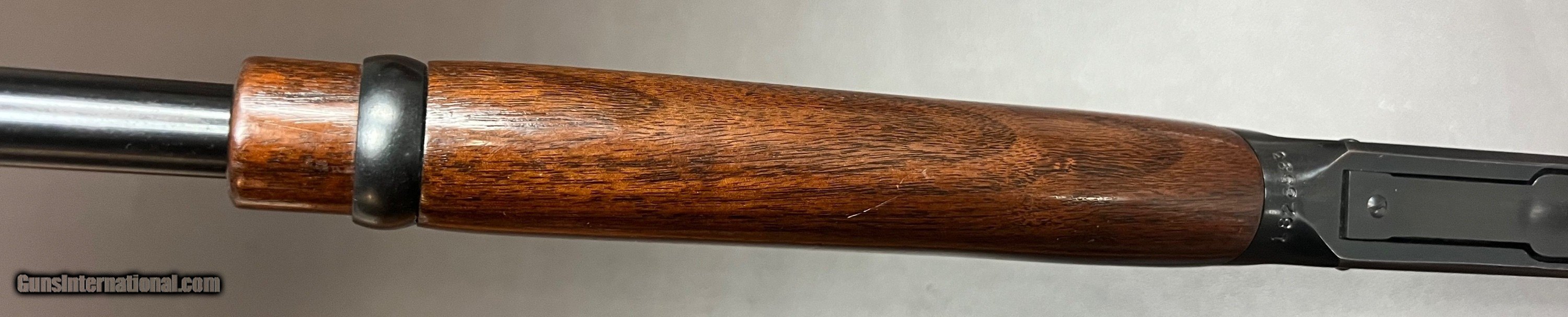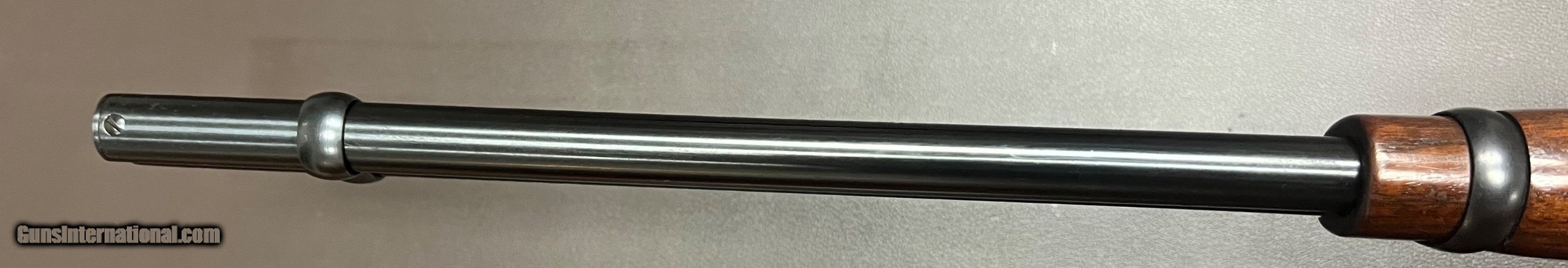Description: Winchester 1894 30-30 WCF carbine 20" barrel with adjustable rear and hooded ramp front sights Bore is excellent/as newLockup condition Full length magazine Action is crisp and functions as it should Crisp trigger pull Figured straight grip stock with slim hunting forend LOP 13 1/8" over original metal buttplate 6lbs 7oz Built in 1951 Excellent original condition early 1950s 1894 carbine. Bluing is excellent with light spotting from storage on left side of action, wood is excellent with few light handling marks. Most of these rifles were used hard and finding them is this condition is difficult. Classic American lightweight lever action carbine that will be a great addition to any Winchester collection or as a fast handling easy to carry hunting rifle. Curio/Relic: Yes Rifle Caliber: .30-30 Winchester Price: $1,950.00 Buy Now Contact Seller |