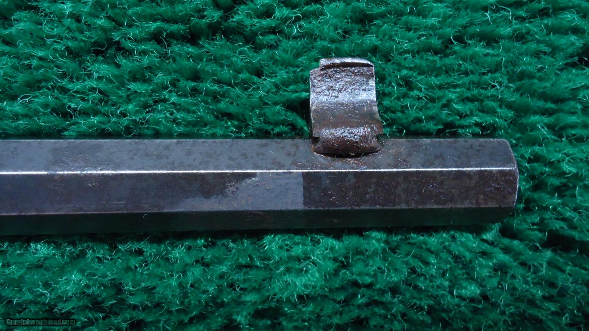 Description: Cal 30 WCF. 26" rapid taper octagon bbl. Takedown frame. Half mag. Walnut forearm with straight grip stock and steel shotgun buttplate. Winchester express 3 leaf rear sight with combination tang sight. Dull fading blue blending with areas of rust and pitting. Stocks have worn appearance with numerous handling marks. Very good bore with a smooth action. Second year production rifle. Leroy Merz Antique Firearms specializes in antique and vintage Winchesters and other fine American firearms. Since 1965 Mr. Merz has taken part in the world of firearms and has been a contributor to many well known reference books. Just recently we mailed the 126th edition of our privately-published catalog. We have hundreds of additional guns in every price range at our home online. Search for Merz Antiques in google. SOLD Antique: Yes |