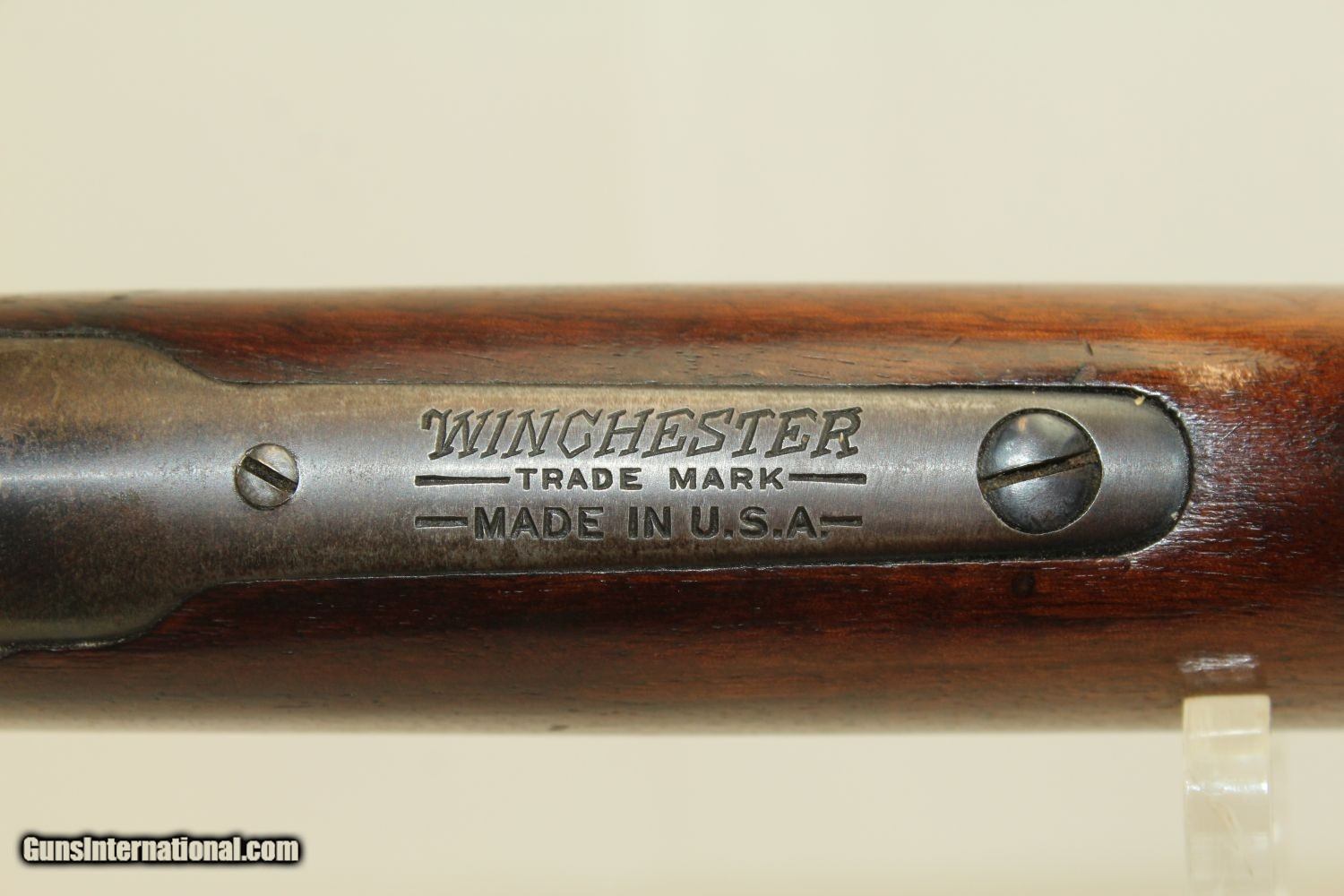 Description: c.1928 WINCHESTER 1894 .32 Win. Special CARBINE Saddle Ring Carbine In .32 Winchester Special! Here we present a Winchester Model 1894 Lever Action Saddle Ring Carbine in .32 Winchester Special, made in 1928 in New Haven, Connecticut. The credit for the design of such a prolific firearm again lies with John Moses Browning, who lent his extensive design talents to a large number of weapon types throughout his career. The Model 1894 was the first Winchester rifle made for use with the new technology of smokeless powder and was developed as a hunting rifle. Over 7.5 million were produced from 1894 until 2006. While various cartridges were supported throughout the run of the gun, the .30-30 Winchester became its staple. In practical use, the Model 1894 became a favorite for general shooters and hunters alike. To this day, it remains a deer hunting favorite, and, in all likelihood, more deer have been taken with the 1894 than any other. The .32 Winchester Special (or .32 WS) is a rimmed cartridge created in October 1901 for use in the Winchester Model 94 lever-action rifle. It is similar in name but unrelated to the .32-20 Winchester cartridge (which is also known as .32 WCF). This cartridge is based on the .30-30 Winchester cartridge of 1895, but differs from the .30-30 in bullet diameter. More significantly, Winchester decreased the rate of rifling twist in their Model 94 rifle, from 1:12 when chambered for the .30-30 to 1:16 when chambered for the .32 Winchester Special. Winchester used the slower twist to reduce fouling retention when creating a new cartridge for sportsmen who wanted to reload their own ammunition using black powder and cast bullets. The overall condition is very fine. 90% of the original blue finish remains. The markings are clear. The walnut stock is in fine shape. The bore is bright and sharp. The action is excellent. This is a fantastic example of a Winchester 1894 Saddle Ring Carbine in .32 W.S., still chomping at the bit to get to deer camp! This firearm is classified as a Curio & Relic. Barrel is 20 inches. Caliber: .32 W.S. Overall condition as seen in photos. Very Fast. Very Safe. FREE SHIPPING. Will need to be sent to your local FFL. This firearm is classified as a Curio & Relic. Guaranteed AUTHENTIC & Includes CERTIFICATE OF AUTHENTICITY. ancestryguns $1950 #190061 SOLD Curio/Relic: Yes |