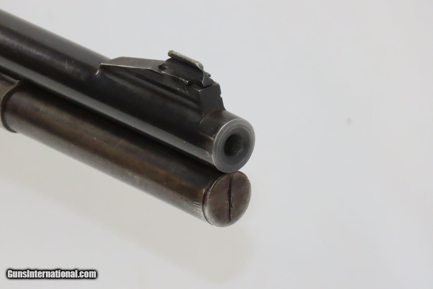 Description: c1909 mfr. WINCHESTER Model 1894 Short Rifle in SCARCE .25-35 WCF C&R Ranch Very Short, Light, Handy; Carbine Length Here we present a C&R Winchester Model 1894 Lever Action Carbine, made in 1909 in New Haven, Connecticut. The credit for the design of such a prolific firearm again lies with John Moses Browning, who lent his extensive design talents to a large number of weapon types throughout his career. The Model 1894 was the first Winchester rifle made for use with the new technology of smokeless powder and was developed as a hunting rifle. Over 7.5 million were produced from 1894 until 2006. While various cartridges were supported throughout the run of the gun, the .30-30 Winchester became its staple. In practical use, the Model 1894 became a favorite for general shooters and hunters alike. To this day, it remains a deer hunting favorite, and, in all likelihood, more deer have been taken with the 1894 than any other. The .25-35 cartridge was, and still is, a fairly short-range, medium range game cartridge. This Model 1894 Rifle features a 20-inch round barrel chambered in scarce .25-35 Winchester Center Fire and a crescent butt plate. It also has the rear sight dovetail on the barrel plugged with a blank and a tang-mounted rear aperture sight. The overall condition is very good. Bright bore. Strong, crisp action. Original blue preserved. This example sports a solid stock. Legible markings throughout. Lyman rear peep sight. Here is a nice example of a Winchester Carbine in a very hard to find .25-35 WCF caliber! This firearm is classified as a Curio & Relic. Barrel is 20 inches. Caliber: .25-35 WCF Overall condition as seen in photos. Very Fast. Very Safe. FREE SHIPPING. Will need to be sent to your local FFL. This firearm is classified as a Curio & Relic. Guaranteed AUTHENTIC & Includes CERTIFICATE OF AUTHENTICITY. ancestryguns $2215 #210531 SOLD Curio/Relic: Yes |
