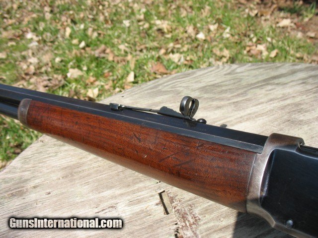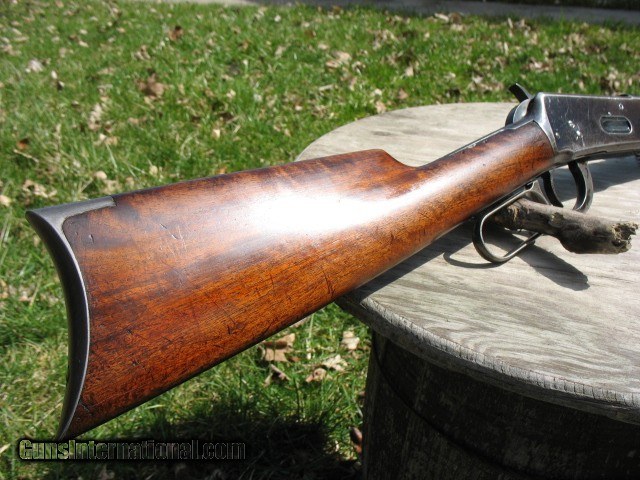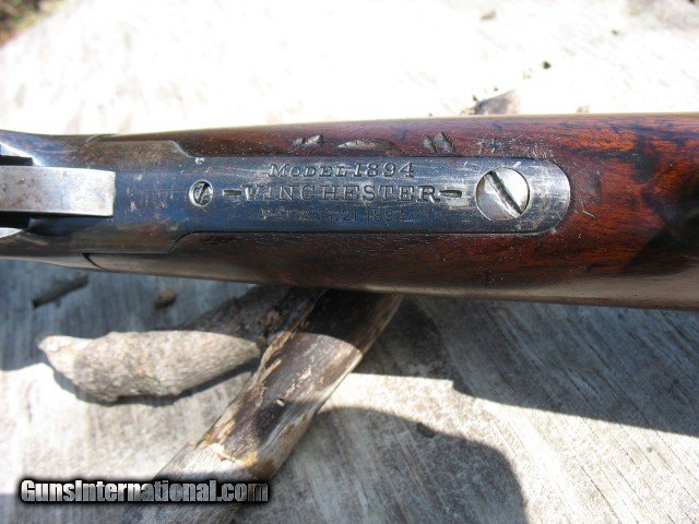 Description: SOLD...Antique 1894 Winchester. NEW DESCRIPTION and PHOTOS.. Here is a very nice 1894 Winchester. S/N 72813 and by Madis was made in 1896. Has the standard 26” octagon barrel. Caliber is the ever so popular 30-30. This gun retains a lot of it's factory blue. I would say the receiver has at least 50% or more blue on the left side and 40% or more on the right side. {see photos}.. It is slightly thinning but still bright. The upper and lower tangs have about 90% bright blue. The bottom swivel lever block has about 75% bright blue. The lever has about 40% vivid case color just starting to fade out a little but still very visible. The hammer has most all the bright case colors. Has the early hart shaped or widows peek hammer knurling.. The barrel has about 80% or more bright blue thinning on the edges and the mag tube has 80% bright blue... New photos today as we have sunshine so now you can see that the blue is very nice on this gun. There is a small spot of light pitting about an inch long on the lower right side of the receiver right above the lever as you can see in the photo of the right side. All the markings are excellent. The bore is mint, bright and shiny as you would expect with a high condition rifle. NO pitting, no rings or bulges..The rear sight is the very sought after Kings full buck horn style with the correct elevator.. A $200 sight by itself. The front sight is a later replacement and a taller sight with a white bead. No markings on the front sight. Hopefully you can see these in the photos or I can send you close ups of them if you want to see them better. Most all of the screw show NO tool markings but a couple have been tuned but nothing burred up and all are very serviceable. The mechanics are excellent as you would expect. It feeds, fires and ejects perfectly and shoots as good as a new gun of course. Both hammer notches are perfect and positive.. The wood is real nice also. The forearm fits very tight and proud to the metal. Still retains about 70% original varnish. Never sanded on or messed with. It show a small and very minor tight grain split on the left side right behind the end cap about an inch long that you can hardly see... It is solid and hardly visible. Nothing bad at all but just honest use. The but stock fits tight. There is a very small chip at the upper left side at the receiver and upper tang junction as you can see. A few old dings and gouges on the right side off of the upper tang.{see photos} and a small crack at the toe on both sides from being dropped on the butt plate I assume. {see photo}... You can see the one on the left side but the one on the right side is hardly even noticeable but I write honest descriptions and mention every thing I see.. They are still tight and solid..... This is a well above average 94 Winchester with a lot of finish and a mint bore for the money. No doubt the best 94 I have ever offered for sale.. Collector grade for sure. If it does not sell in a reasonable amount of time, I am keep'in it for my collection... Call 765-728-8049 with any questions or more photos of a certain area you might want to see. I want happy customers.... I try my best to write very accurate and honest descriptions and get photos of the good and the bad... $50 insured shipping. Don't miss this one !!!!!! SOLD Antique: Yes |