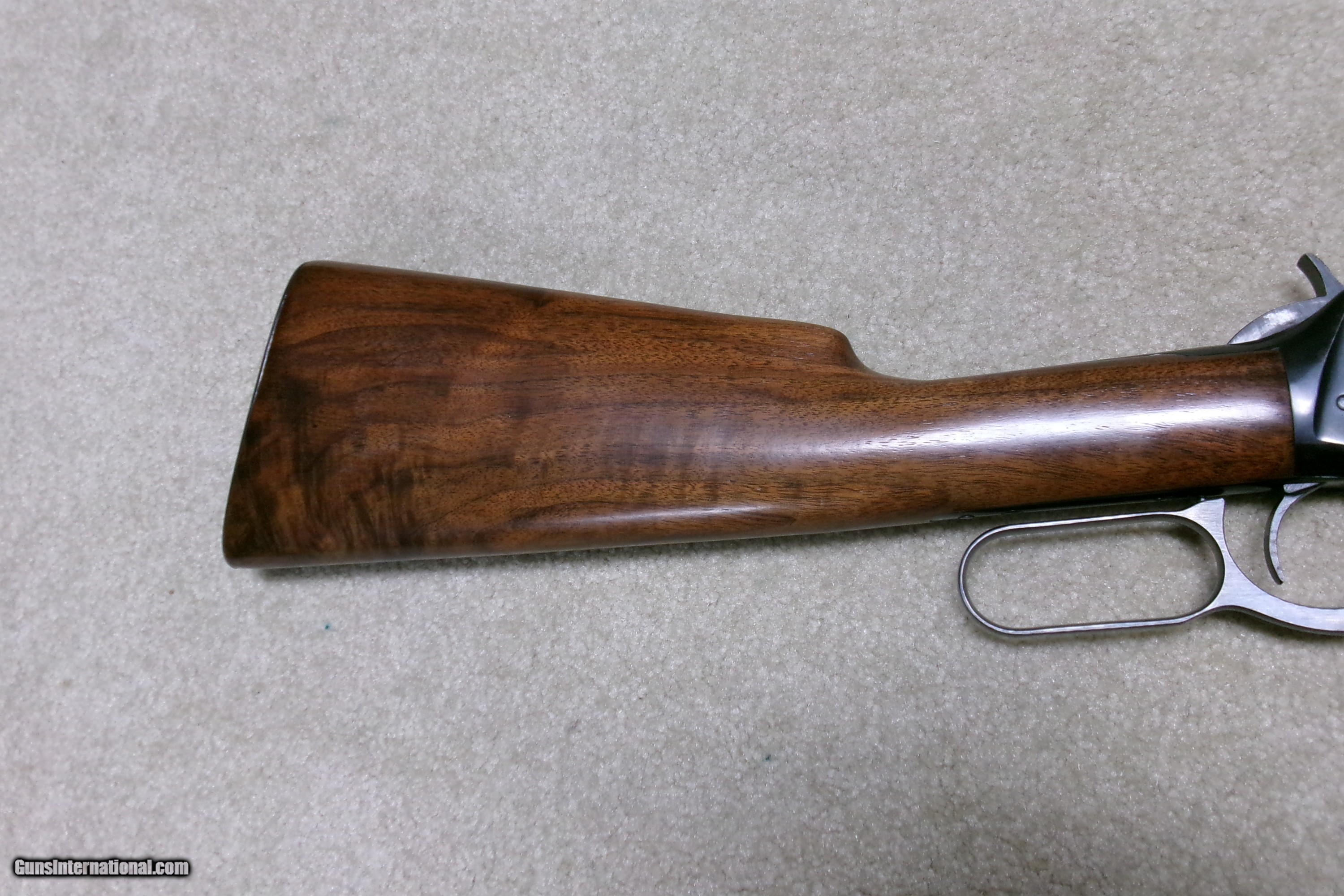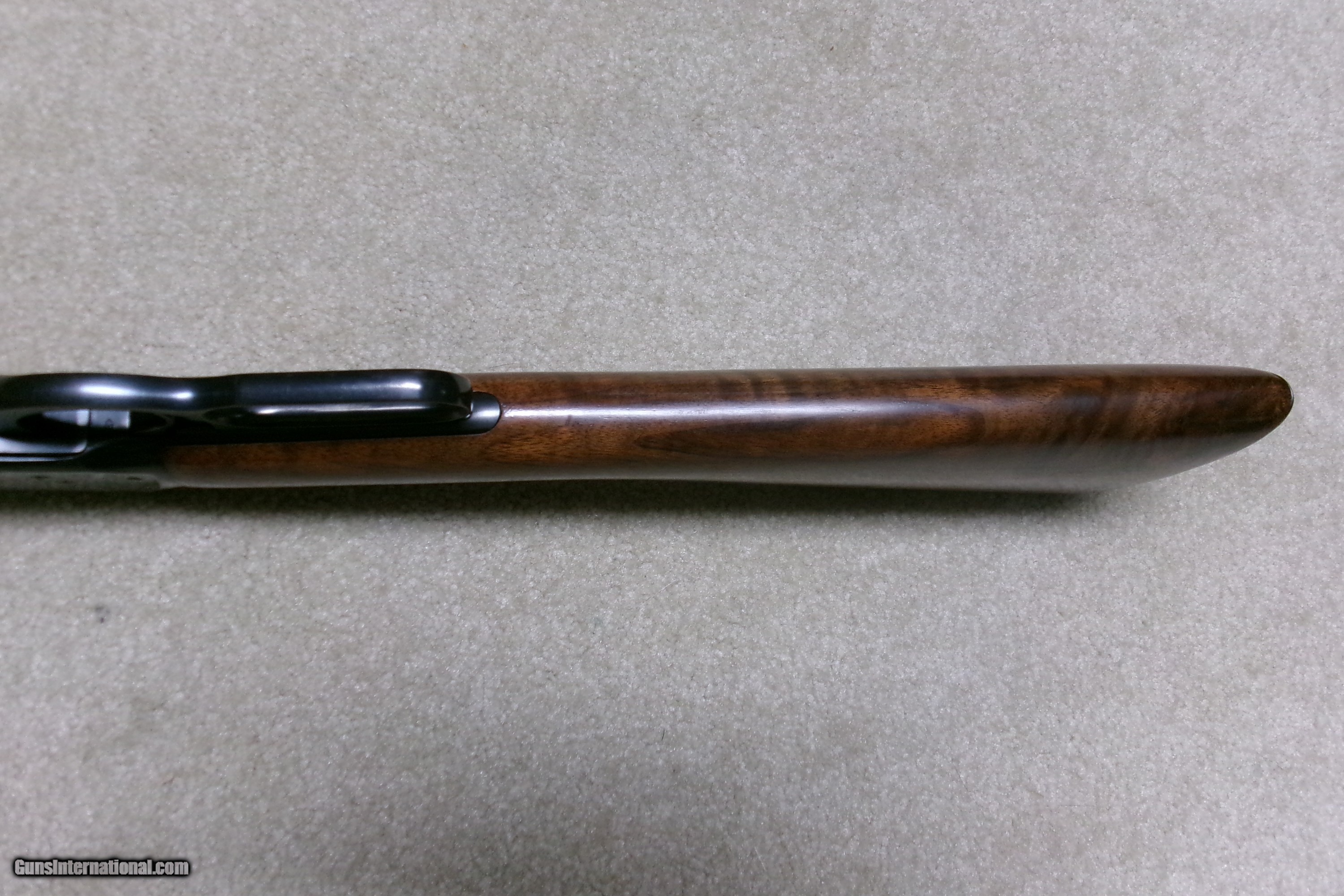 Description: HIGH CONDITION MODEL 94 FLAT BAND CARBINE IN SCARCE .25-35 CALIBER, WITH FANCY WALNUT STOCK, #1472XXX, MADE 1947. This is an early Post-War carbine in superb condition inside and out. The walnut in the butt stock is of a much higher grade than standard with a good deal of dense fancy grain. Stock and forend are about perfect and overall the carbine retains all of the original factory blue with only a few very minor surface handling marks barely into the blue on the receiver sides. Original sights including the front sight hood. Checkered steel butt plate. This is a near new condition flat band variation in a rare caliber. SOLD Curio/Relic: Yes Rifle Caliber: .25-35 Winchester Manufacturer: WINCHESTER Model: MOD. 94 CARBINE Serial Number: 1472XXX Barrel Length: 20 Condition: NEAR NEW |