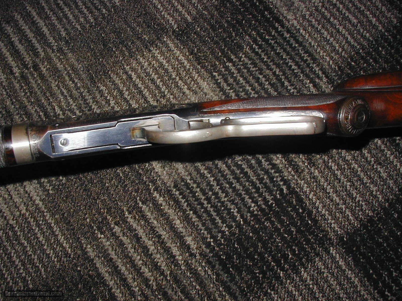 Description: ****SOLD, THANKS *****THIS IS A GORGEOUS MODEL 94 DELUXE TAKEDOWN, MADE IN 1905...RETIANS 95% ORIGINAL BARREL AND TUBE BLUE, ABOUT 90% BRIGHT RECIEVER BLUE WITH SOME WEAR ON TOP EDGES OF FRAME...GOOD CASE COLORS ON SIDES OF LEVER AND HAMMER...FACTORY LETTER INDICATES SHOTGUN BUTT, PLAIN PISTOL GRIP, TAKEDOWN ETC.......HAS SPL. ORDER REAR .32 SPL. SITE AND GLOBE FRONT SITE....THIS 94 IS SPORTING A FACTORY UPGRADE TO FANCY WOOD, CHECKERED WITH CHEEKPAD...IT IS OBVIOUS WINCHESTER UPGRADED FACTORY WOOD WITH ORIGINAL PERIOD, OLD PIANO VARNISH FINSH AND CHECKERING...NUMBER IN WOOD MATCHES TANG NUMBER AS WELL AND XX ALSO....WOOD TO METAL FIT IS FACTORY PERFECT...A VERY ATTRACTIVE GUN WITH A MINT BORE.... SOLD Curio/Relic: Yes |