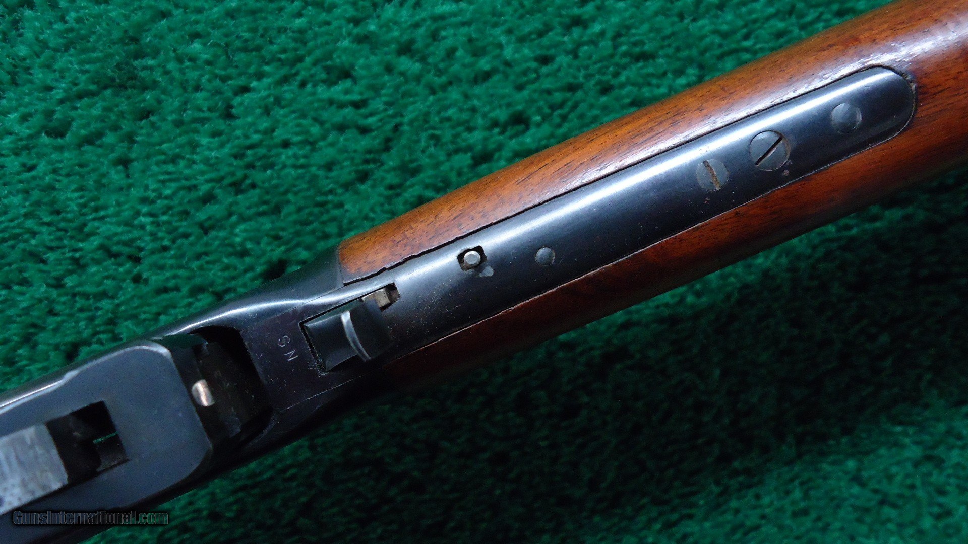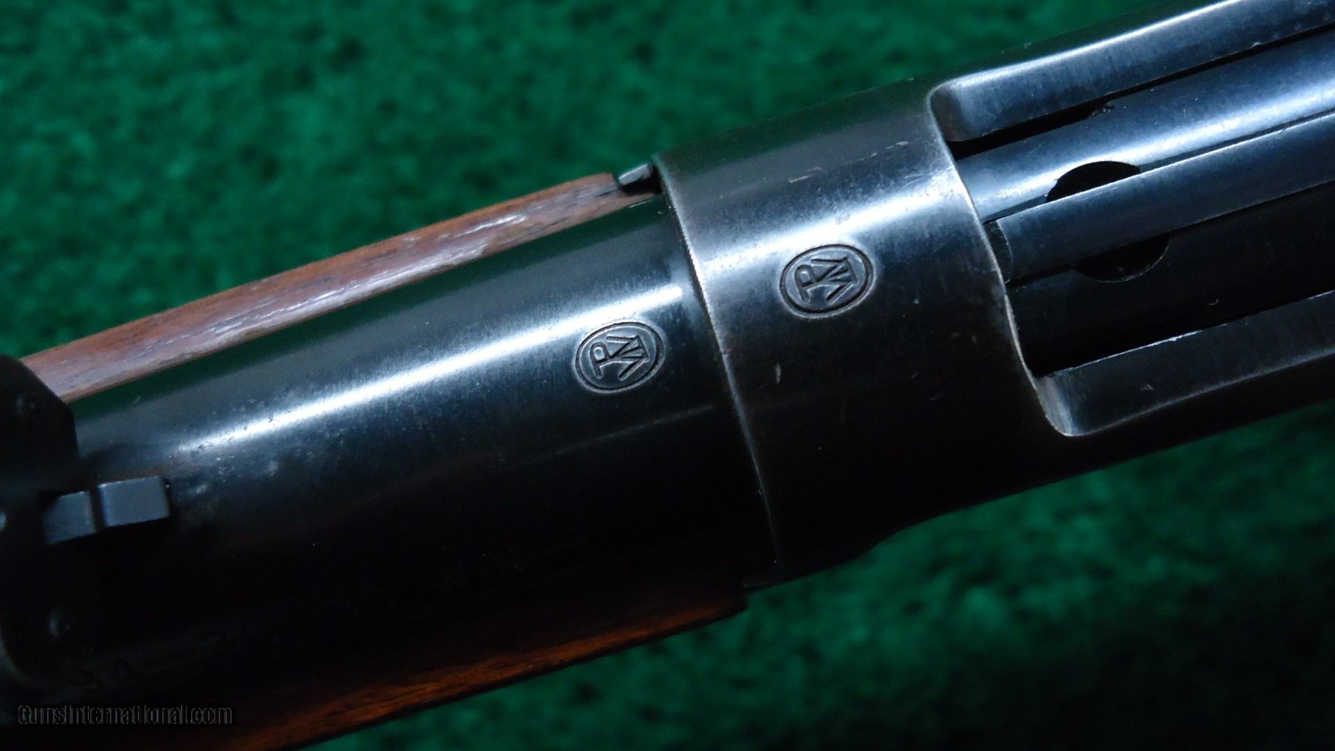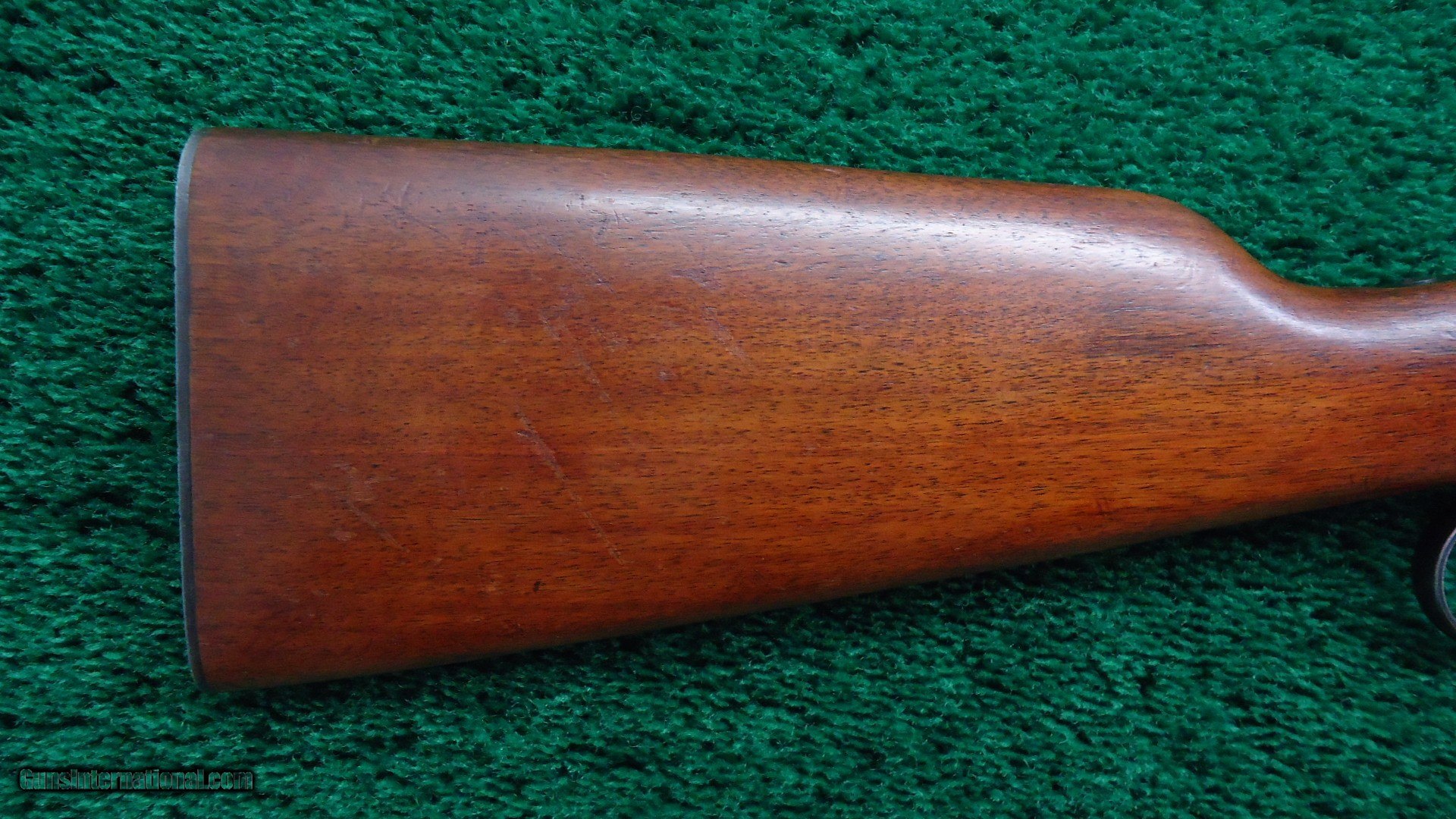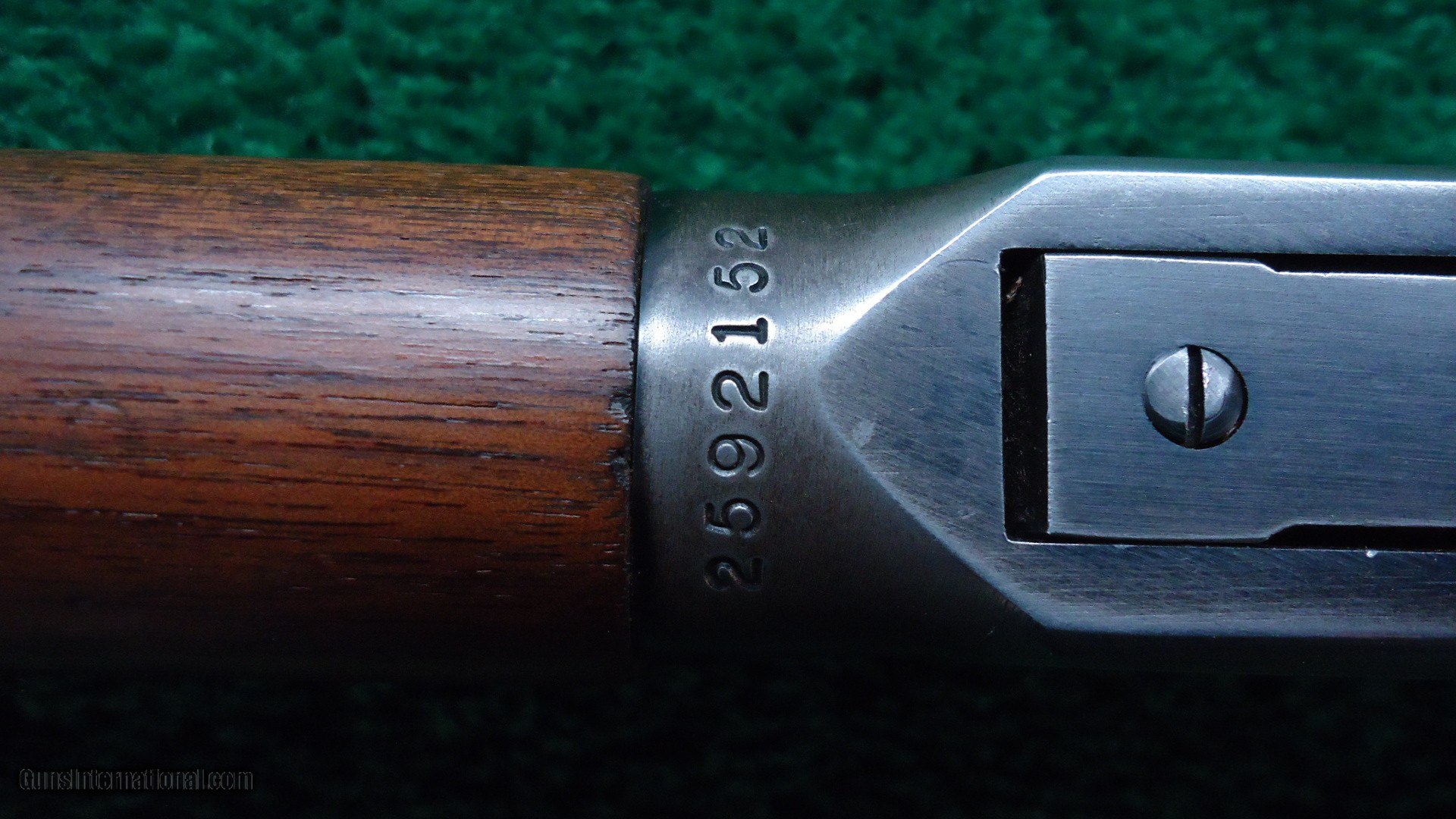 Description: 30 WCF caliber. Standard 20 inch round barrel with full mag tube. Most all original blue remains on this carbine. Very good bore. Smooth action. Ramped front sight missing hood with Sporting rear. Good condition wood with the exception of a repaired sliver on the left side by the upper tang. Not very noticeable, but it is there. Most original finish remains. Light handling mars and a steel butt plate. Handy little carbine. Leroy Merz Antique Firearms specializes in antique and vintage Winchesters and other fine American firearms. Since 1965 Mr. Merz has taken part in the world of firearms and has been a contributor to many well known reference books. We have hundreds of additional guns in every price range at our home online. Search for Merz Antiques in google. SOLD Curio/Relic: Yes |