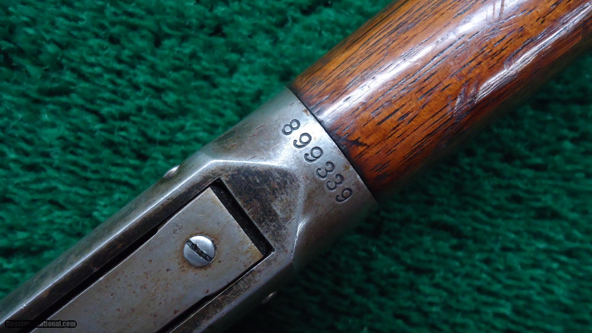Description: Cal 38-55. 26" oct bbl, full length mag tube and crescent butt. Sights include dovetail front sight and sporting rear sight. Bbl retains quite a bit of blue finish, thinning in spots. Mag tube has some blue with carry points worn to grey. Receiver is blue/brown color worn to silver at the high points. Wood is overall good with several dings and dents and the varnish worn off in areas. Good bore with strong rifling. Nice action. Leroy Merz Antique Firearms specializes in antique and vintage Winchesters and other fine American firearms. Since 1965 Mr. Merz has taken part in the world of firearms and has been a contributor to many well known reference books. Just recently we mailed the 127th edition of our privately-published catalog. We have hundreds of additional guns in every price range at our home online. Search for Merz Antiques in google. SOLD Curio/Relic: Yes |