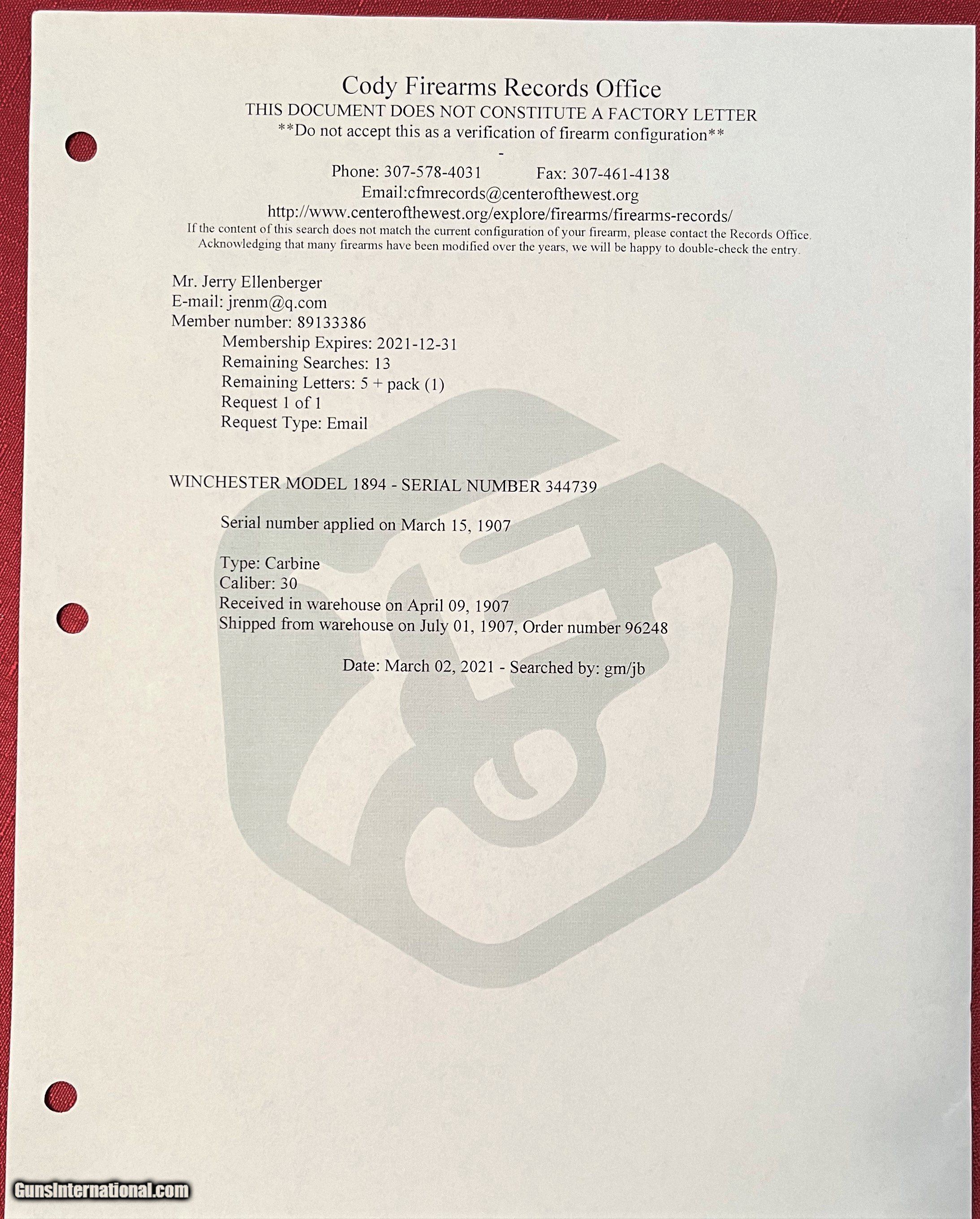 Nice Winchester 1894 Carbine .30WCF dated 1907
