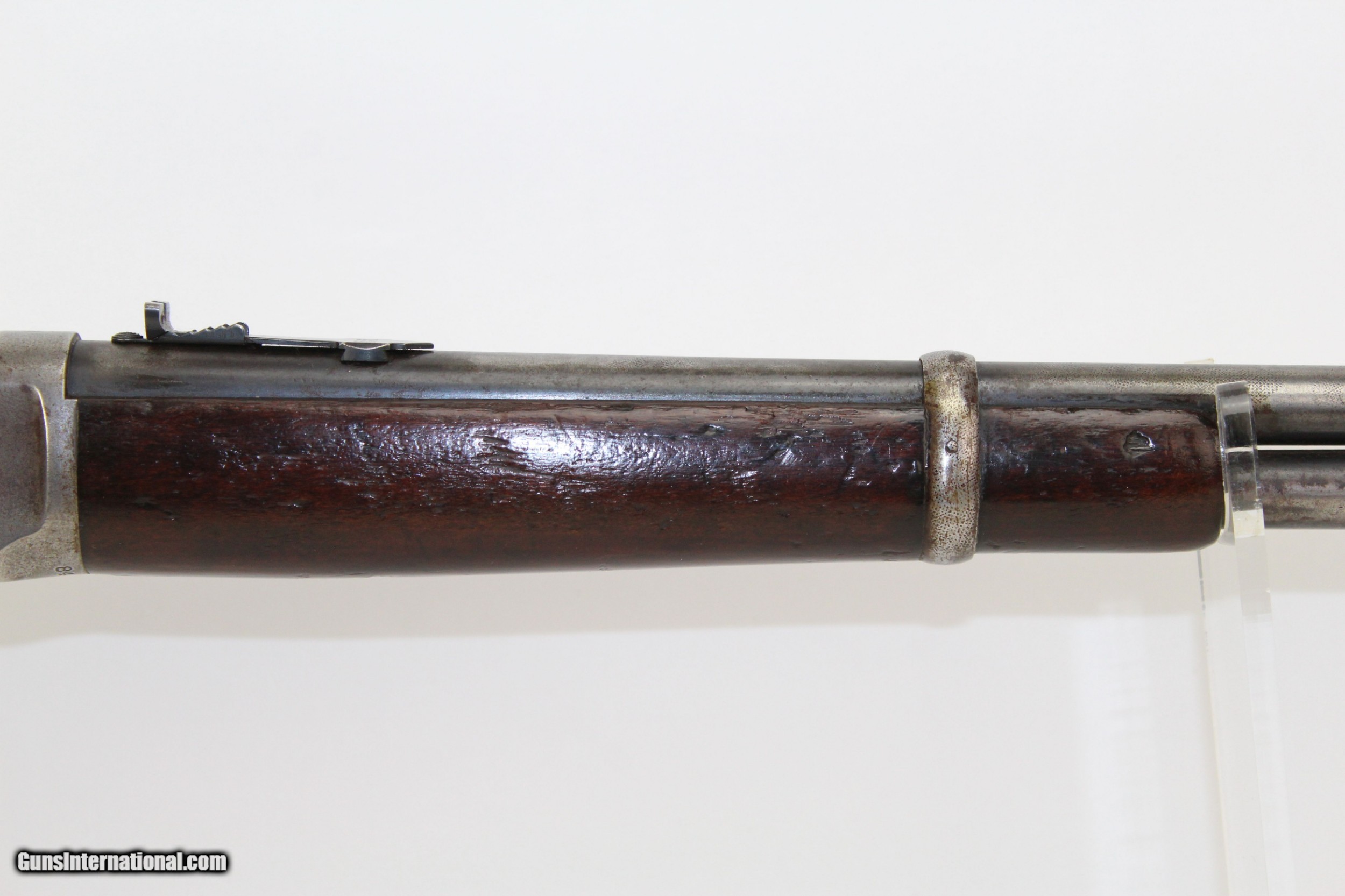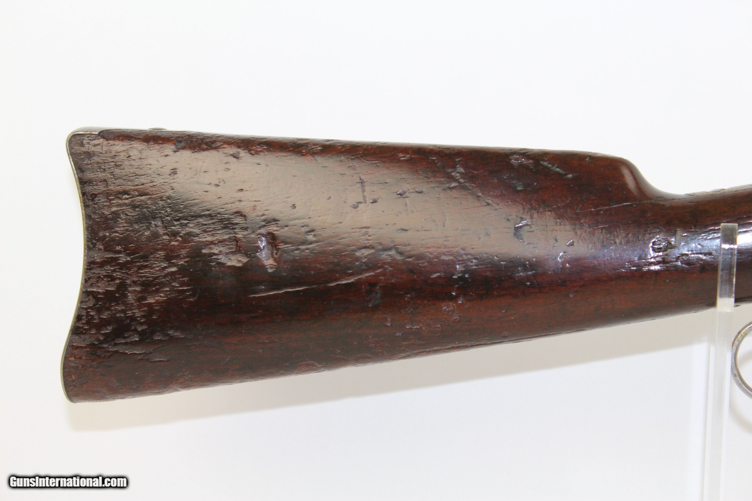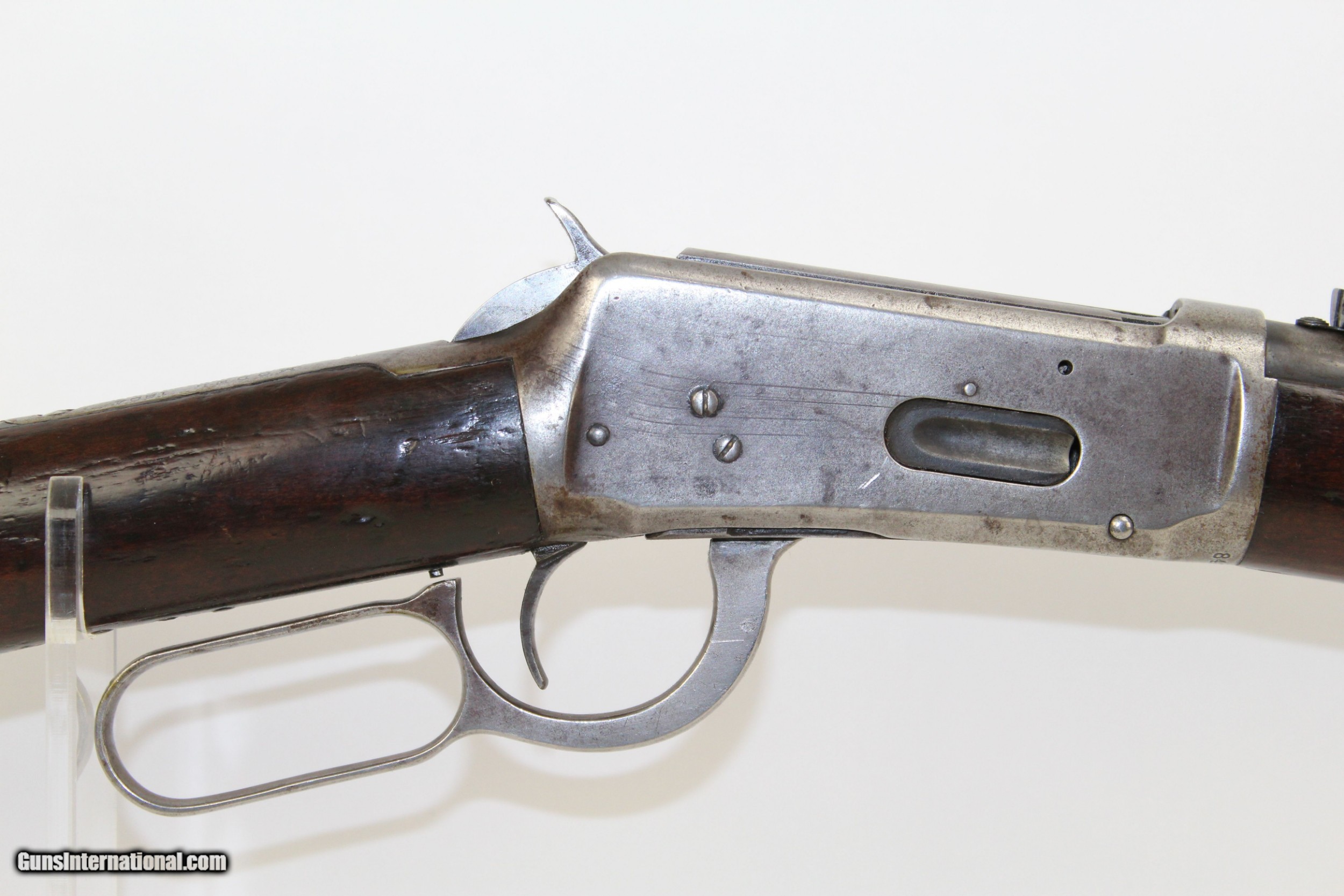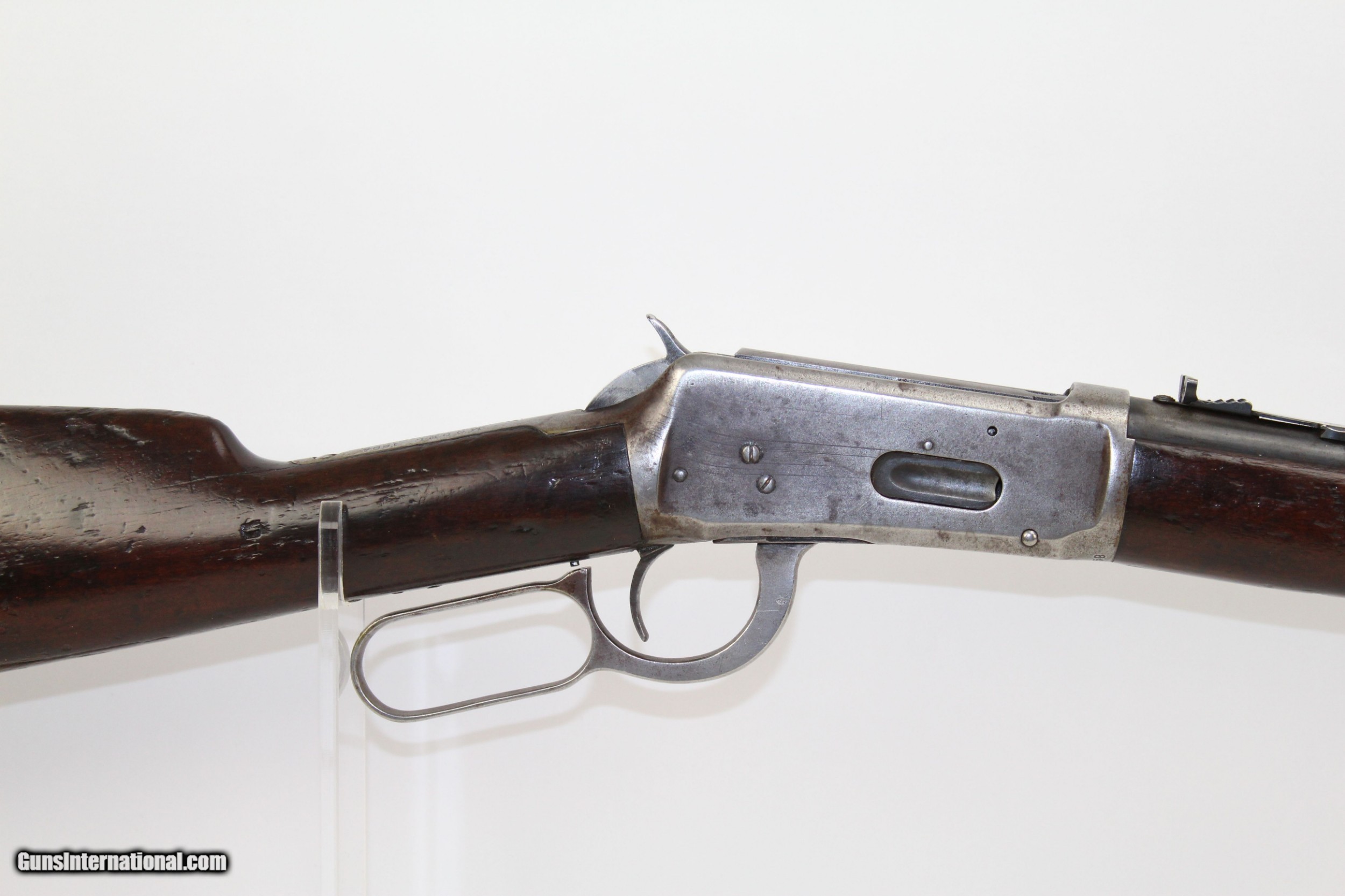 Description: Pre-64 WINCHESTER 1894 .30-30 Saddle Ring Carbine Great American Classic in .30 WCF Made in 1919! Here we present a Winchester Model 1894 Saddle Ring Carbine in .30-30, made in 1919 in New Haven, Connecticut. The credit for the design of such a prolific firearm again lies with John Moses Browning, who lent his extensive design talents to a large number of weapon types throughout his career. The Model 1894 was the first Winchester rifle made for use with the new technology of smokeless powder and was developed as a hunting rifle. Over 7.5 million were produced from 1894 until 2006. While various cartridges were supported throughout the run of the gun, the .30-30 Winchester became its staple. In practical use, the Model 1894 became a favorite for general shooters and hunters alike. To this day, it remains a deer hunting favorite, and, in all likelihood, more deer have been taken with the 1894 than any other. This Model 1894 Carbine features a saddle ring on the left side and the shorter, handier 20-inch barrel. The left side of the barrel is marked MANUFACTURED BY THE WINCHESTER REPEATING ARMS CO. NEW HAVEN CONN. U.S.A. PATENTED AUGUST 21 1894”. Breech end is marked “.30 WCF”. The receiver tang is marked “MODEL 1894/–WINCHESTER—”. Rear sight is a Marble’s. The overall condition is good. The metal surfaces bear strong traces of the original blue finish with the rest having worn off and an even gray patina pervading. The markings are clear and legible. The walnut stock looks like this rifle rode shotgun on many outings and remains solid. The bore is in great shape, clean with strong rifling. The action is excellent, strong and crisp. Here is a fantastic 100 year old example of one of America’s most beloved rifles. This firearm is classified as a Curio & Relic. Barrel is 20 inches. Caliber: .30-30 WCF Overall condition as seen in photos. Very Fast. Very Safe. FREE SHIPPING. Will need to be sent to your local FFL or C&R licensee. This firearm is classified as a Curio & Relic. Guaranteed AUTHENTIC & Includes CERTIFICATE OF AUTHENTICITY. ancestryguns $1100 #7412 SOLD Curio/Relic: Yes |