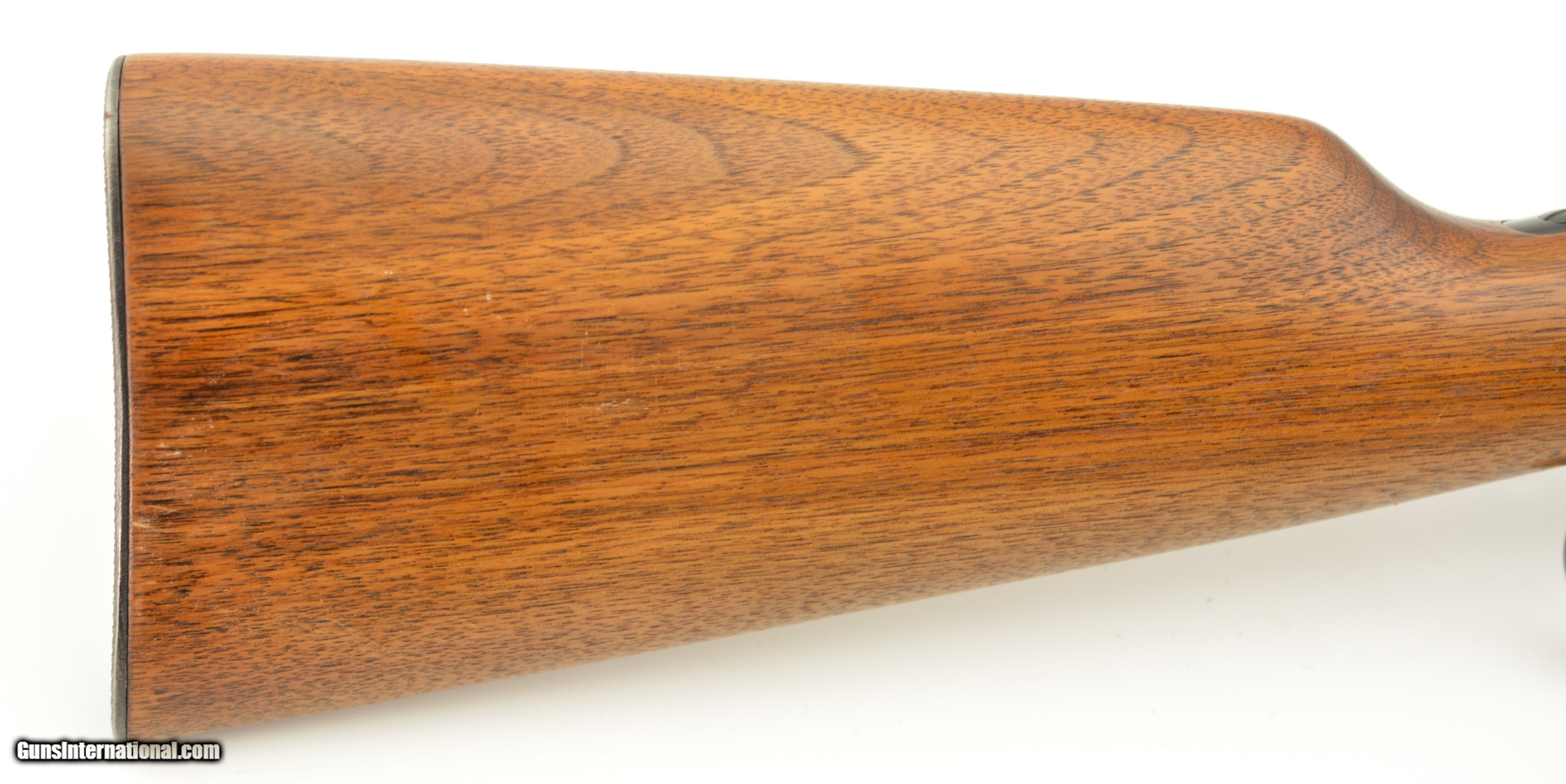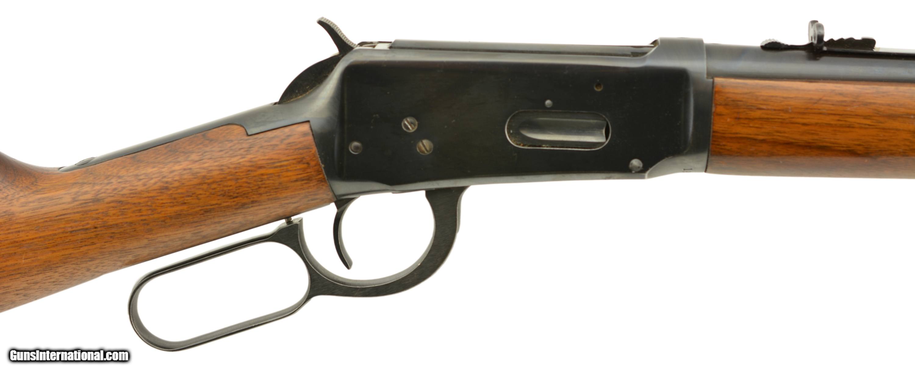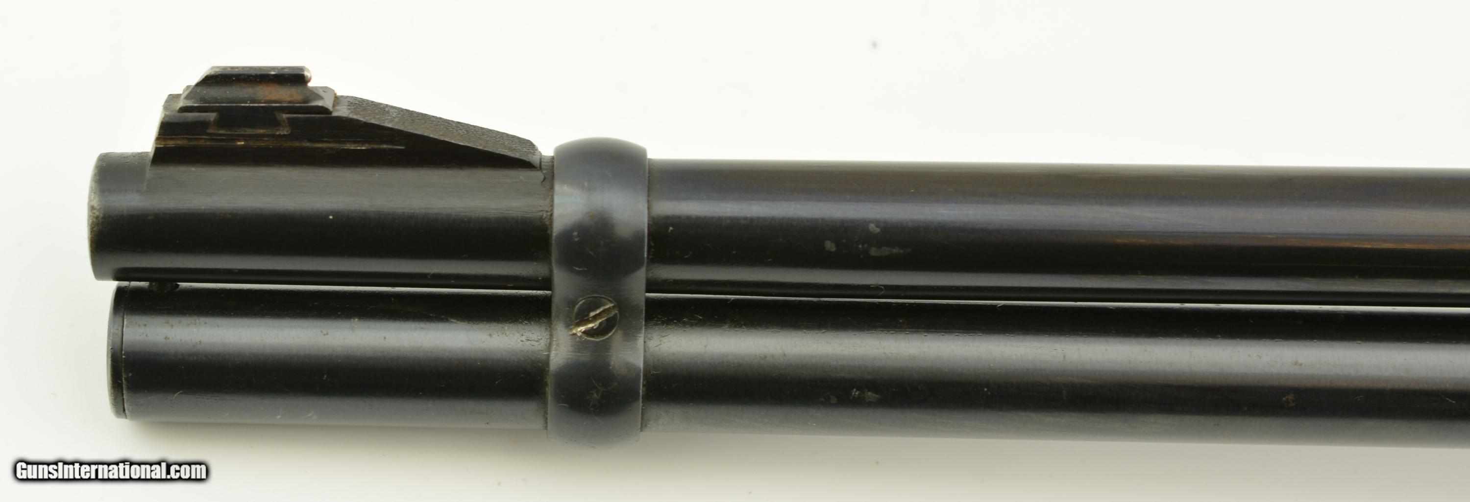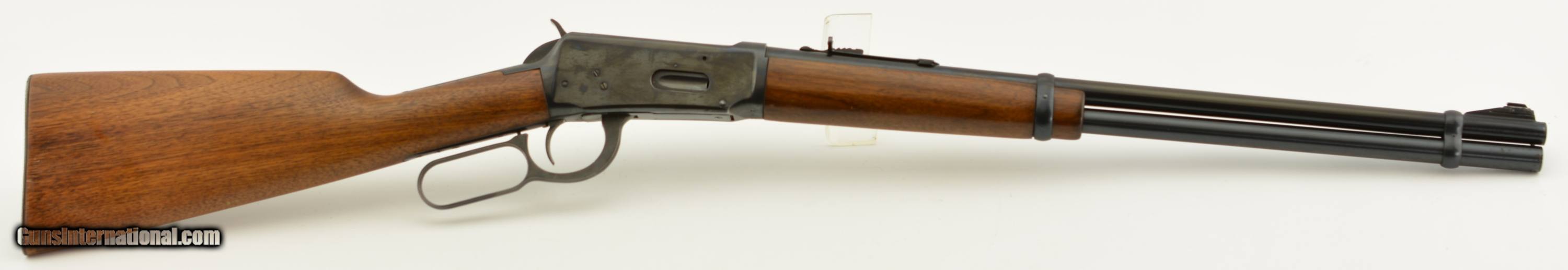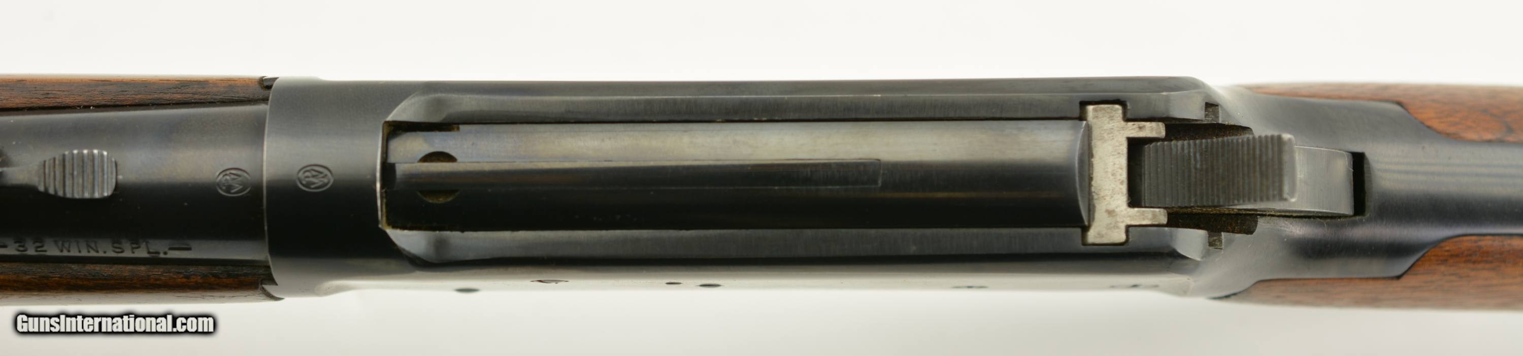 Description: Serial #1907392, .32 Win. Spl., 20" barrel with a very good bore that has freckling within the grooves. This is a 1952-made carbine that retains 70-75% of the original blue, with the majority of the loss occurring on the left receiver flat where the finish looks to have been intentionally removed prior to some work that was never performed. The walnut stock and forend are in fine condition with only minor handling marks and scratches scattered about the slightly flaked original varnish, and the checkered steel buttplate is in fine shape. The front sight hood is no longer present, and the carbine rates very good plus condition overall. FFL or C&R SOLD Curio/Relic: Yes |