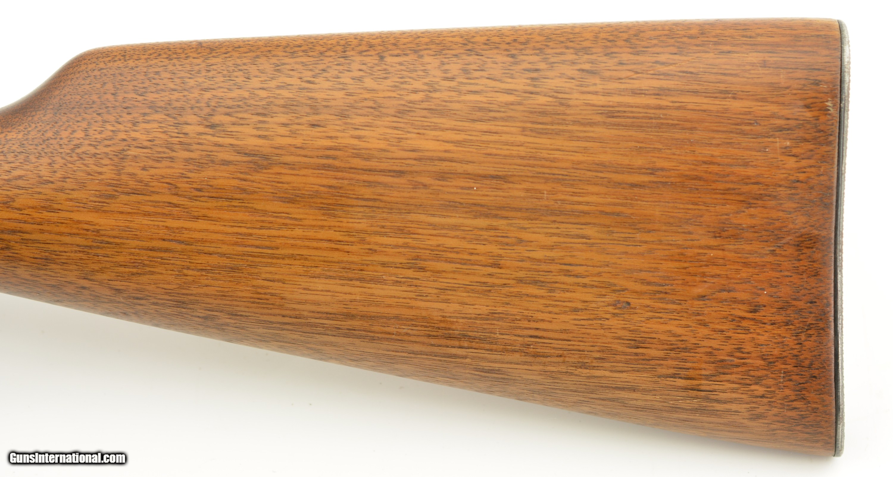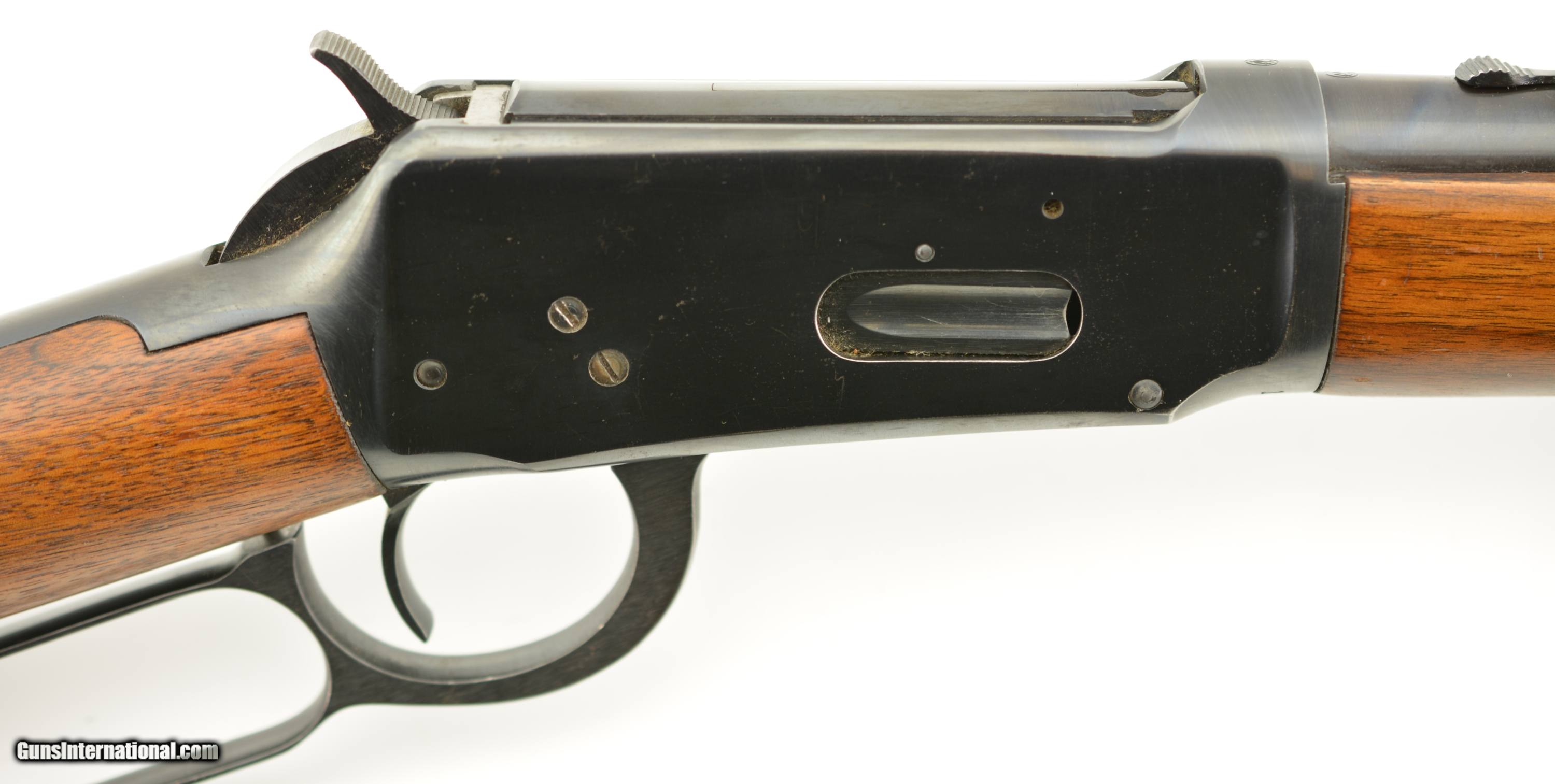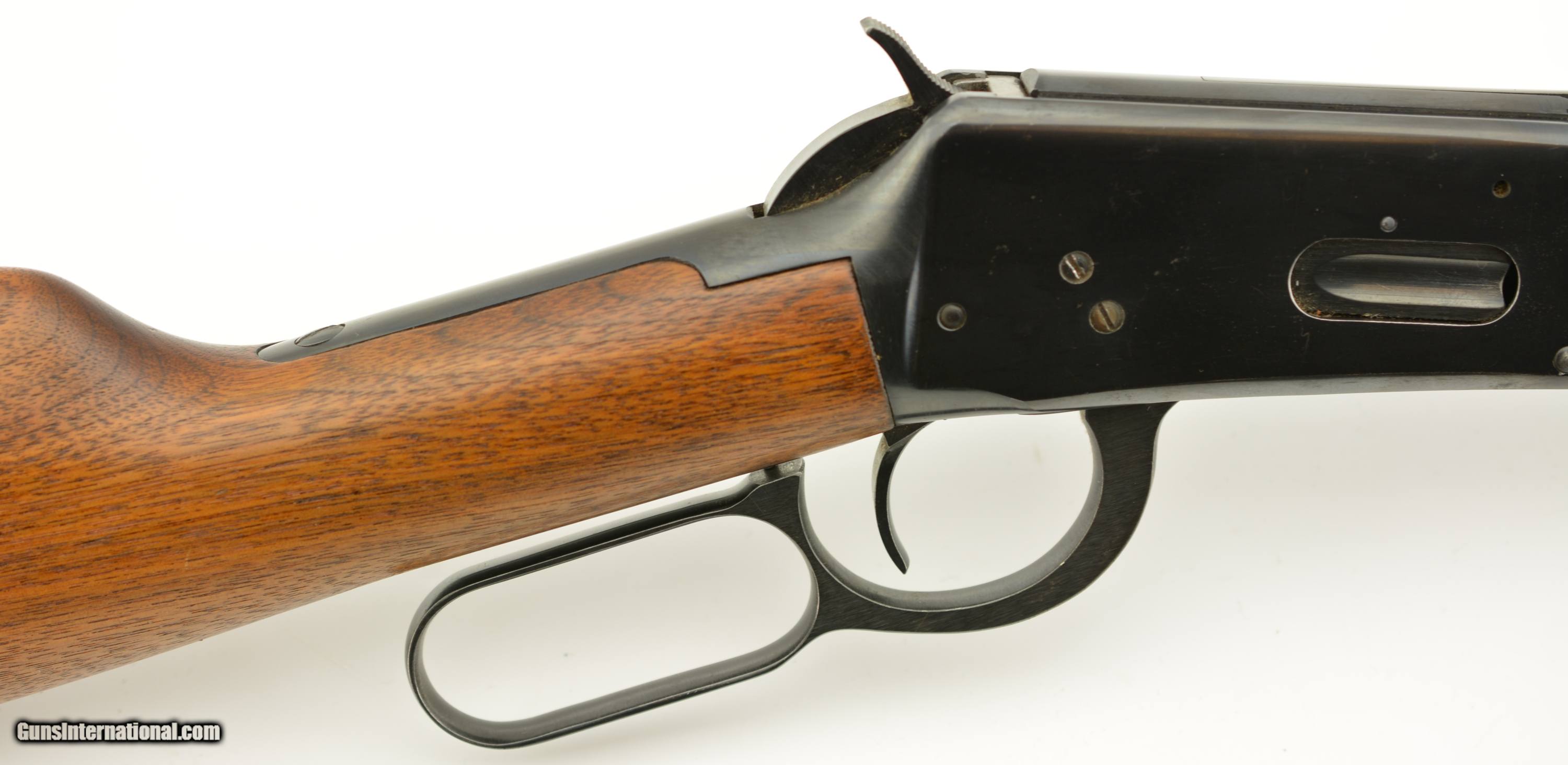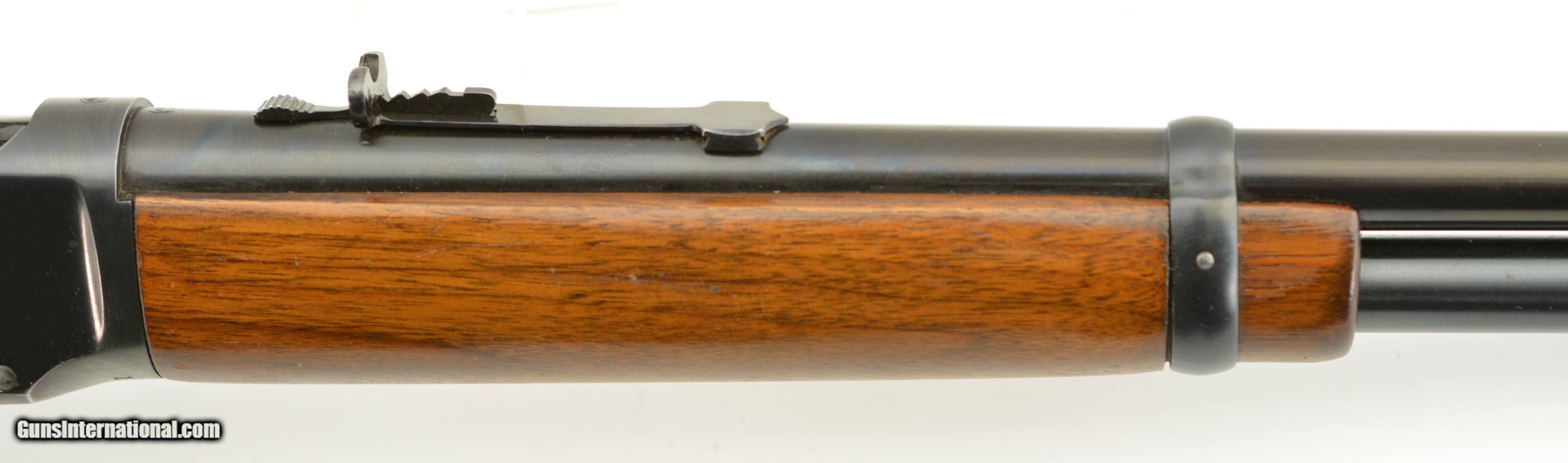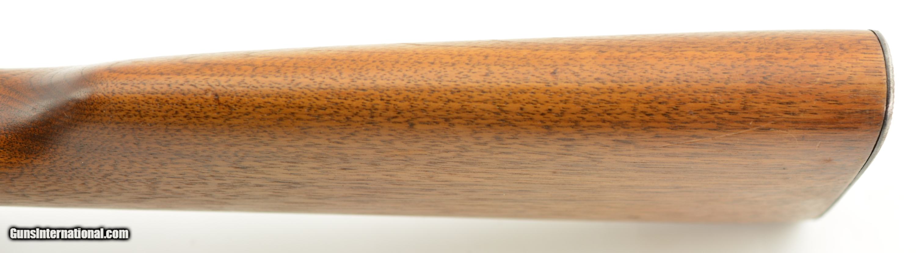 Description: Serial #1907392, .32 Win. Spl., 20" barrel with a very good bore that has freckling within the grooves. This is a 1952-made carbine that retains 70-75% of the original blue, with the majority of the loss occurring on the left receiver flat where the finish looks to have been intentionally removed prior to some work that was never performed. The walnut stock and forend are in fine condition with only minor handling marks and scratches scattered about the slightly flaked original varnish, and the checkered steel buttplate is in fine shape. The front sight hood is no longer present, and the carbine rates very good plus condition overall. FFL or C&R SOLD Curio/Relic: Yes |
